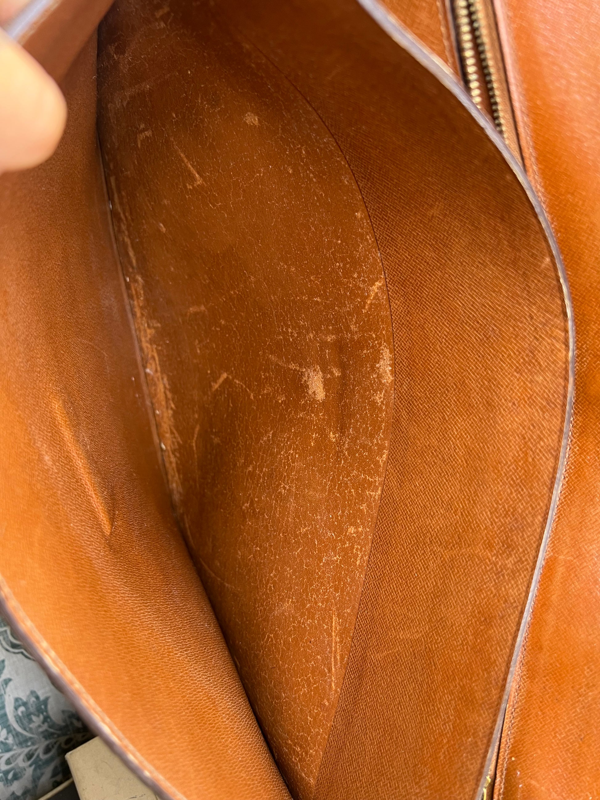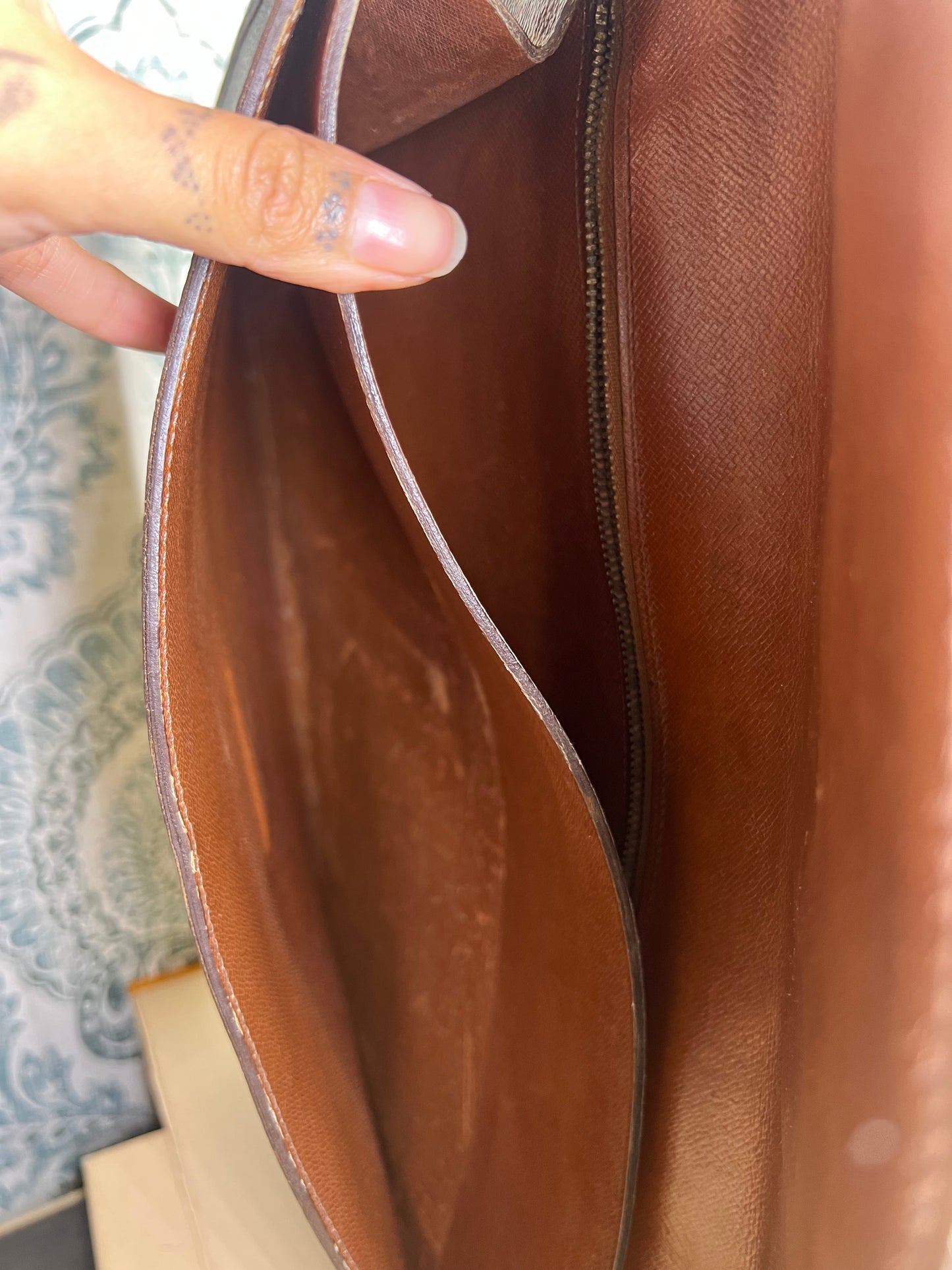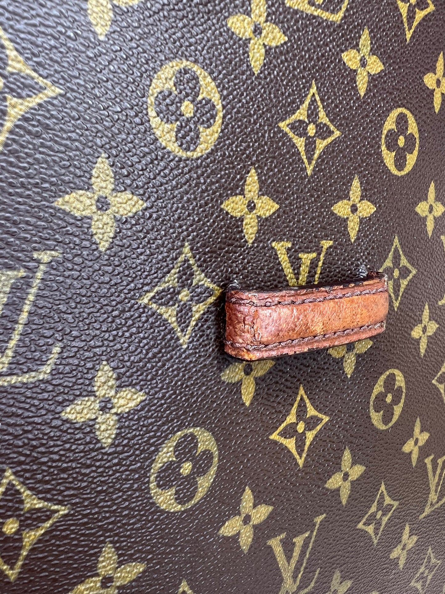๐ธ Canvas has minor hidden cracks on top side folds of the case. No other canvas wear and it is intact and in nice shape. Monogram is bright and clear with only minor fading in some parts of the case.