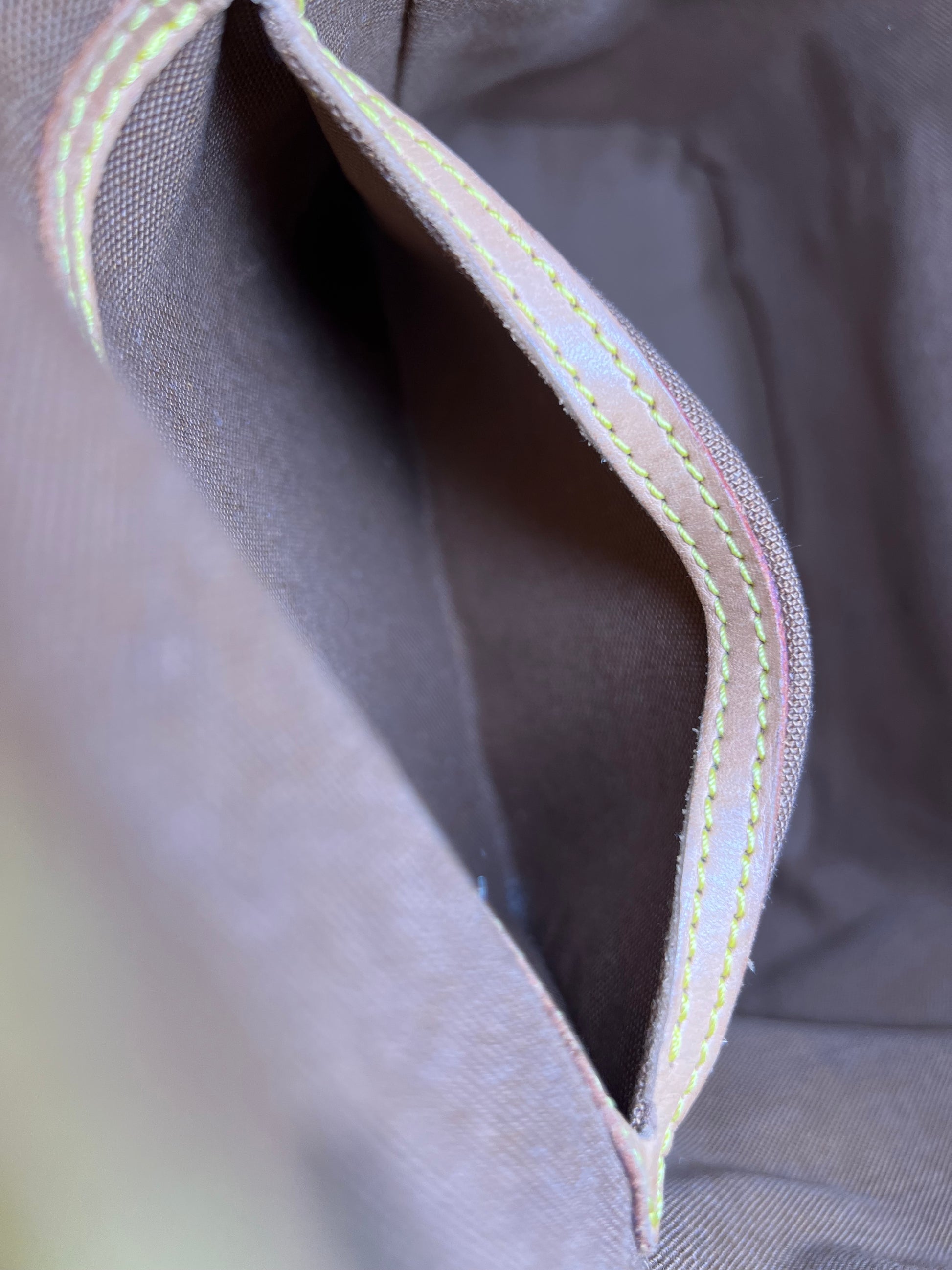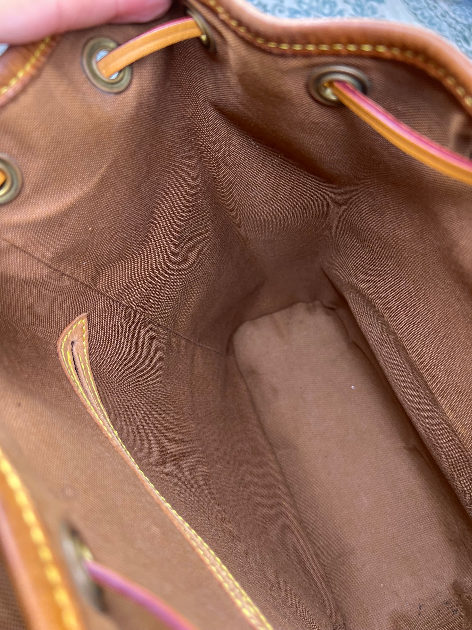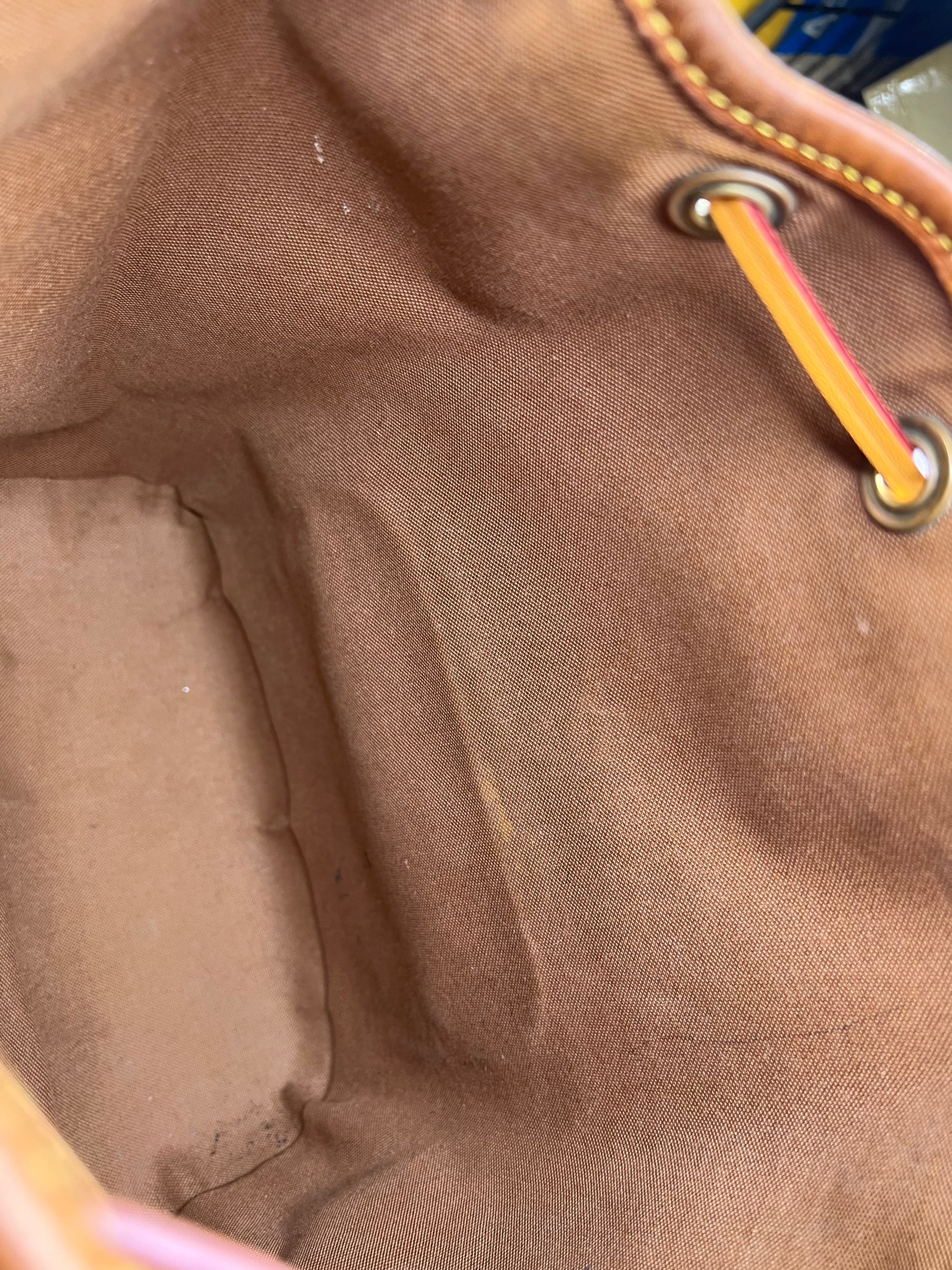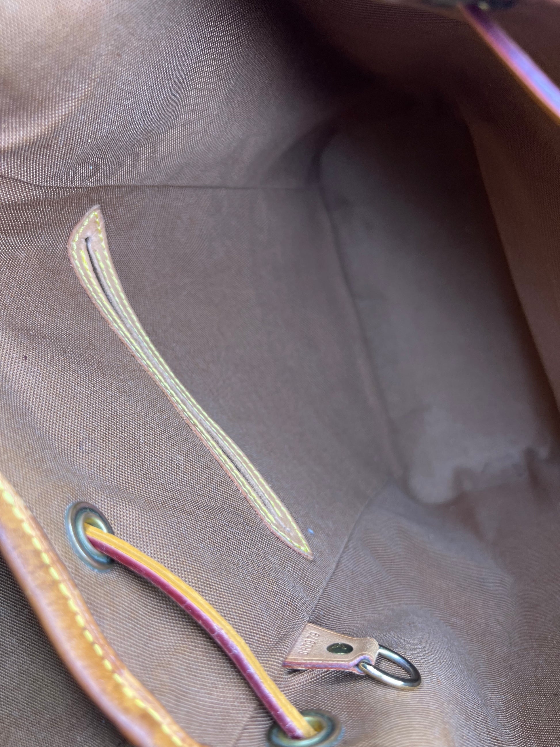 πΈ Vachetta does have staining and wear. Scuffs, marks, and minor surface cracks present on base, but it is in sturdy shape. Chaps are strong. Straps do have wrinkles, but are sturdy. Some areas of trim are cracked, but itβs intact overall. Draw string is non brand, but in good shape. Buckle piece has surface cracks, but intact overall