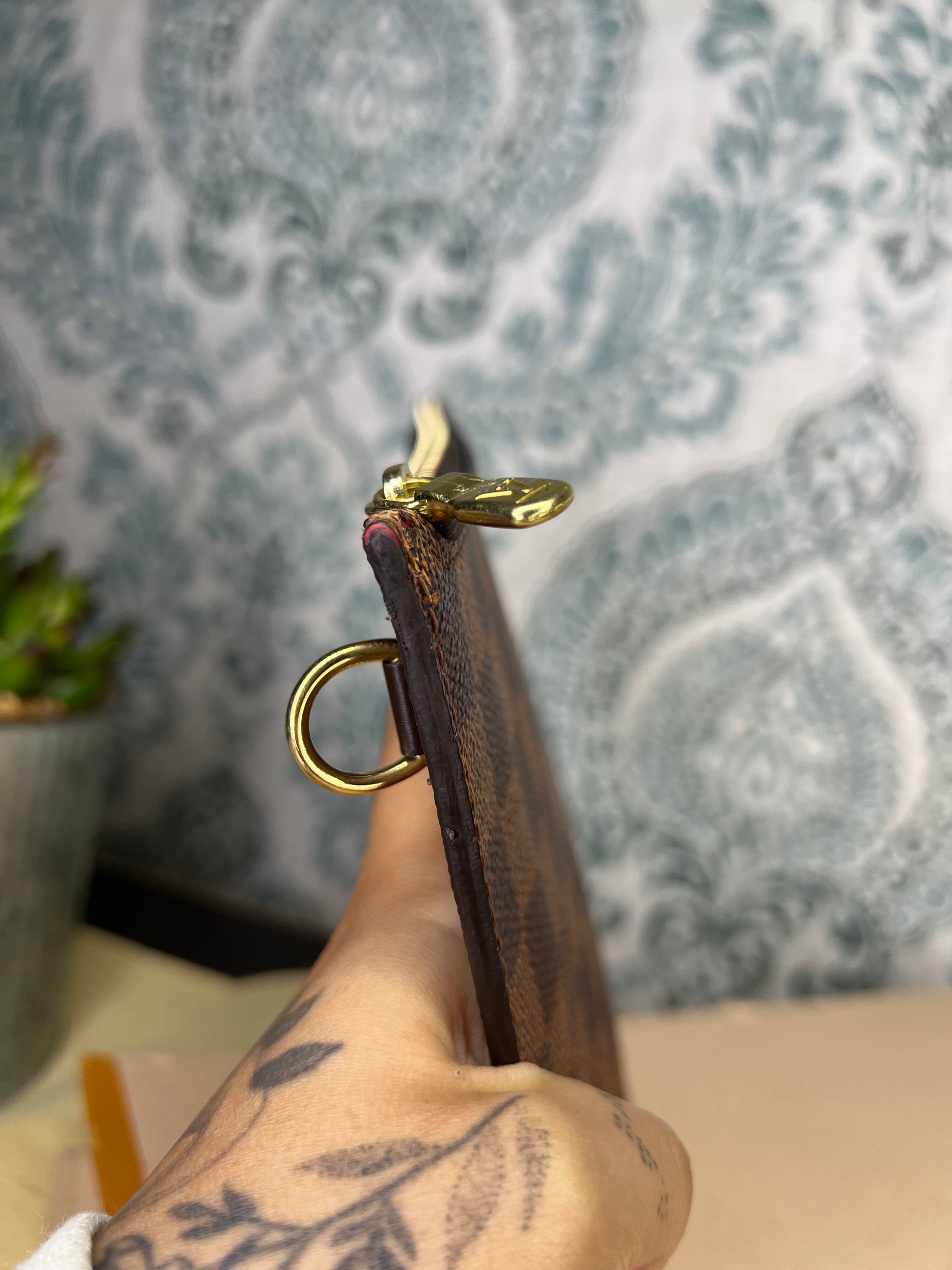 šø No canvas cracks or tears. Damier bright and clear. There are custom initials on the pouch. A bit of a sheen around the initials. Canvas is in great shape overall
