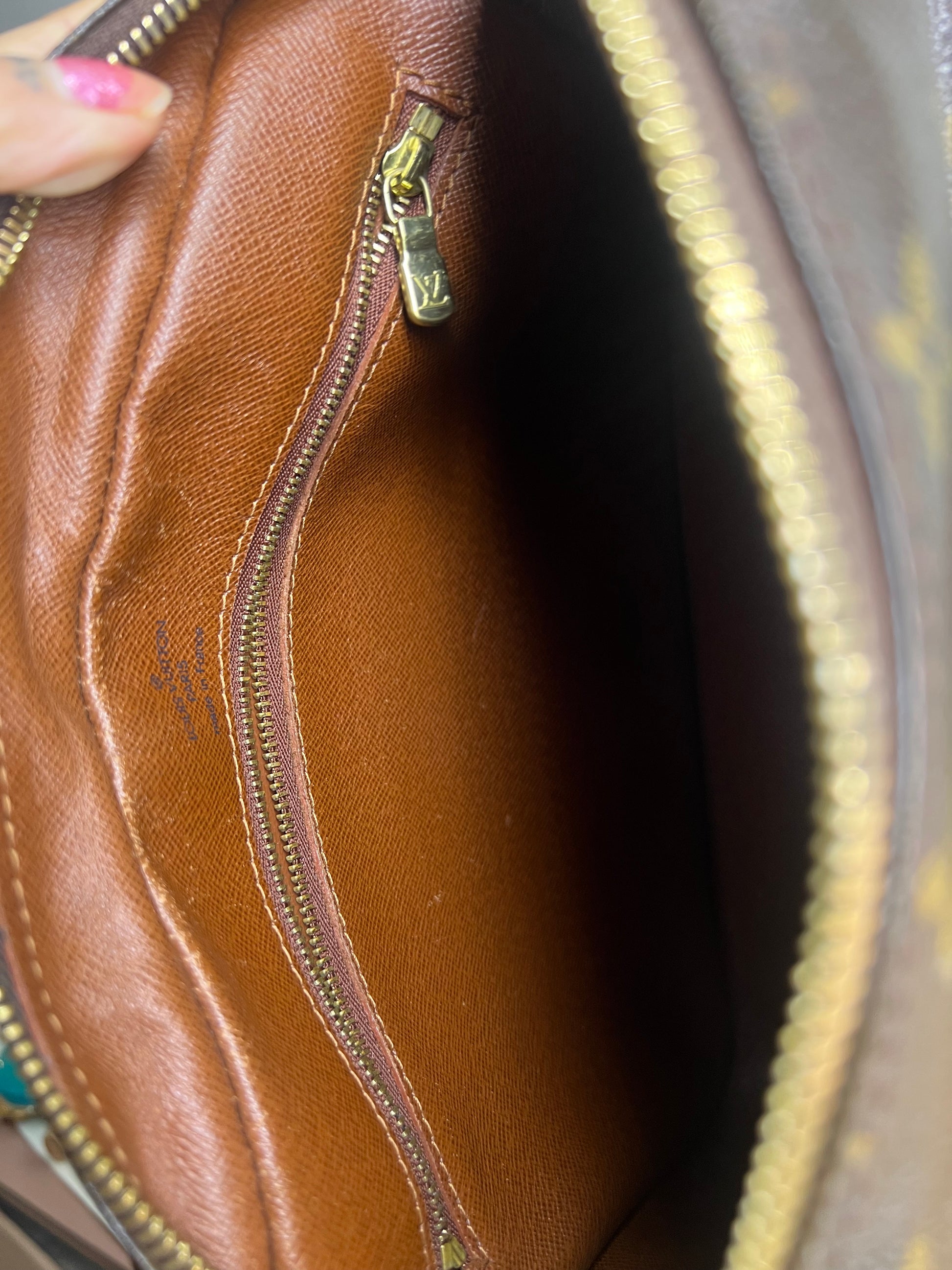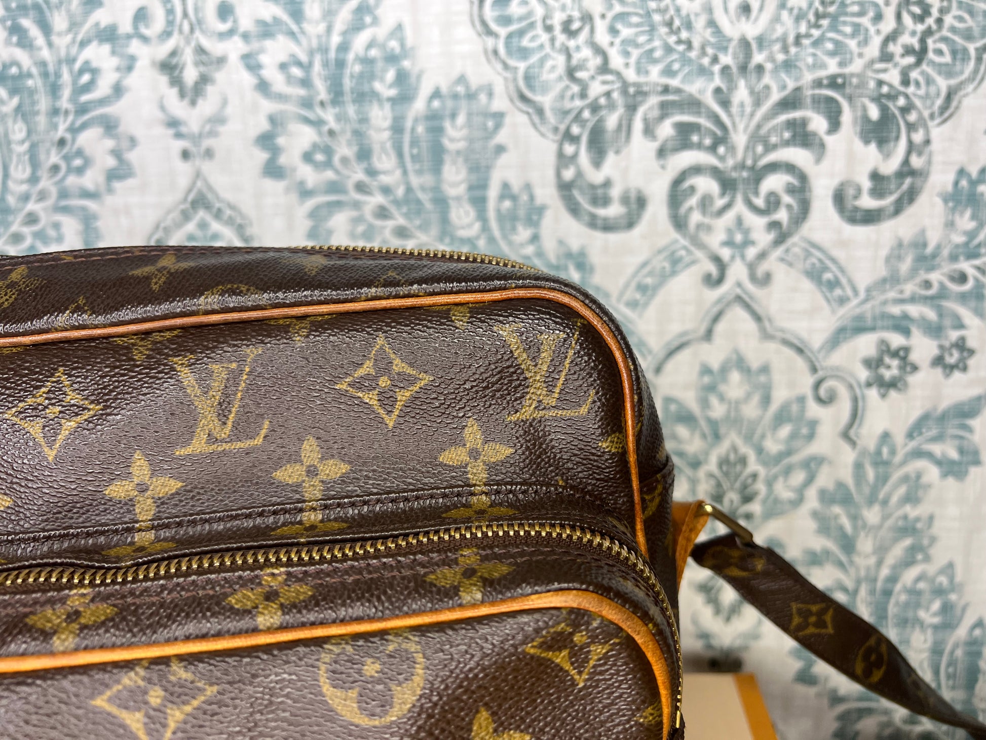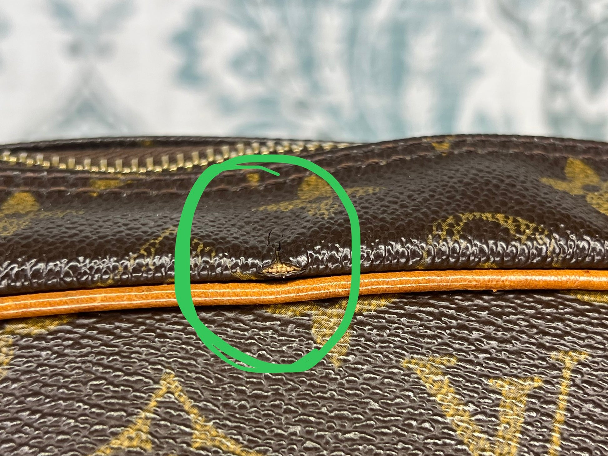 🌸 Monogram does have some speckled fading, but it is overall clear and in good shape. There are a few small cracks at the top of the bag near zipper and on the strap. Bag is sturdy even with this flaws. Minor unnoticeable canvas scuffs