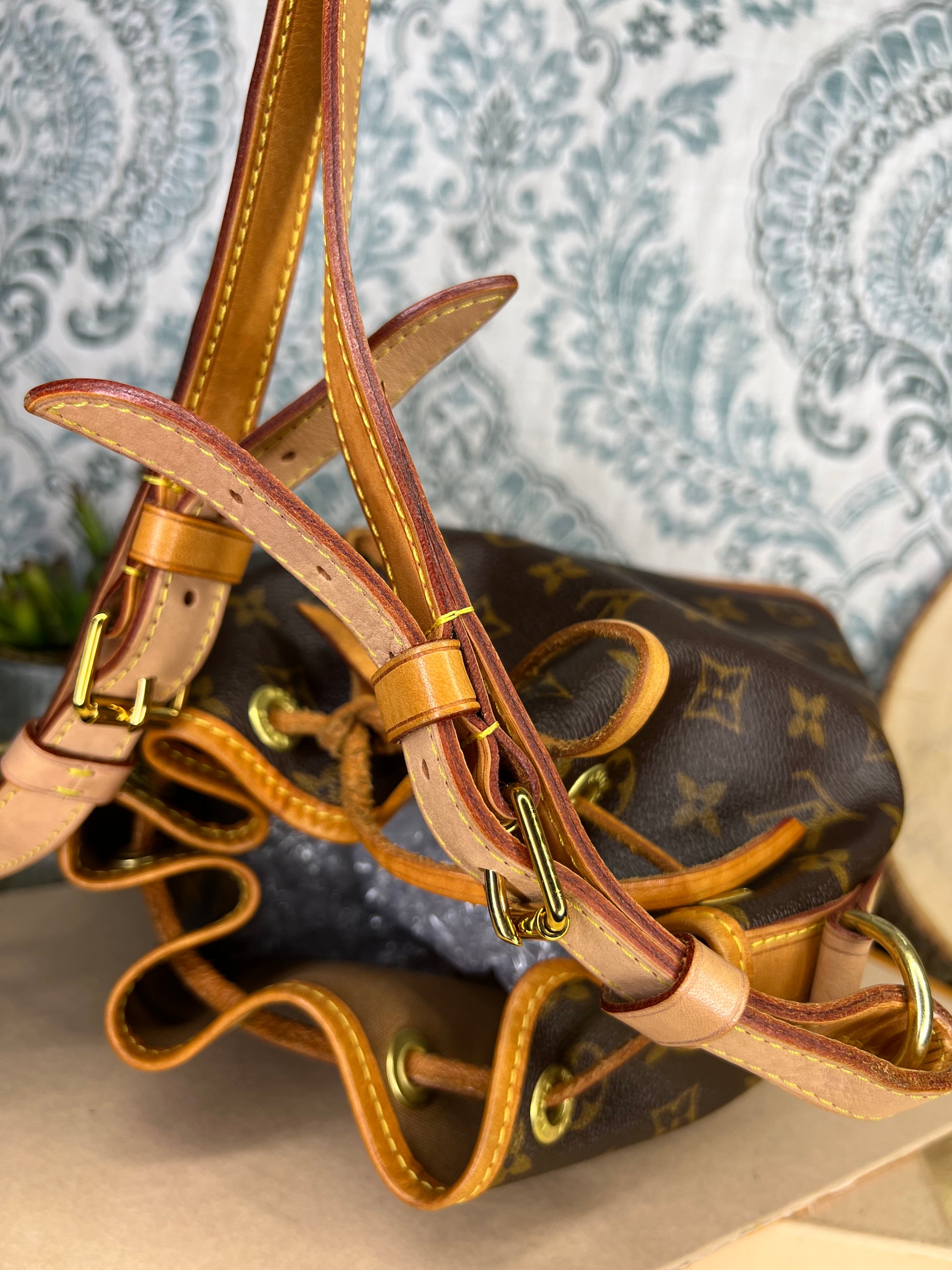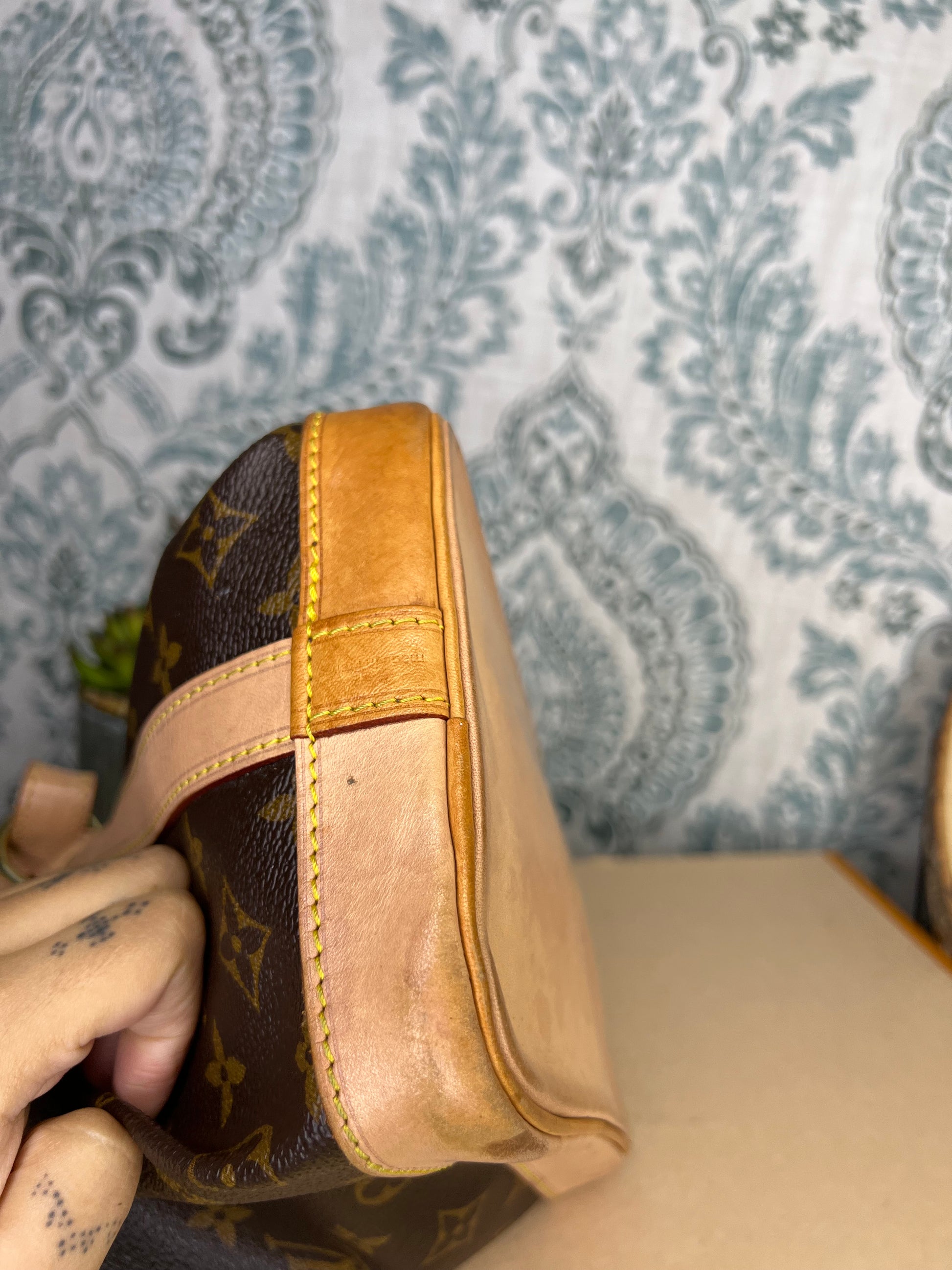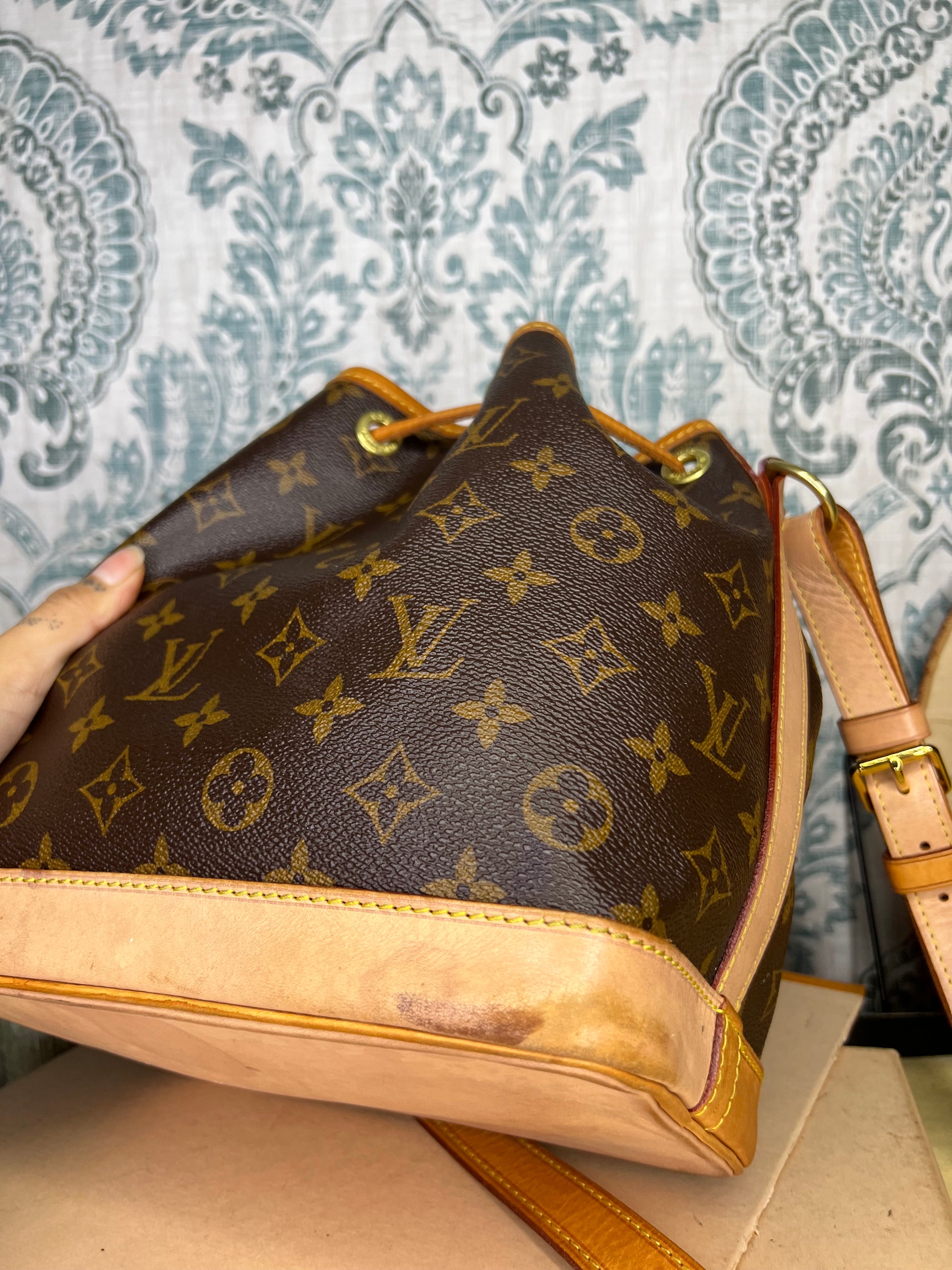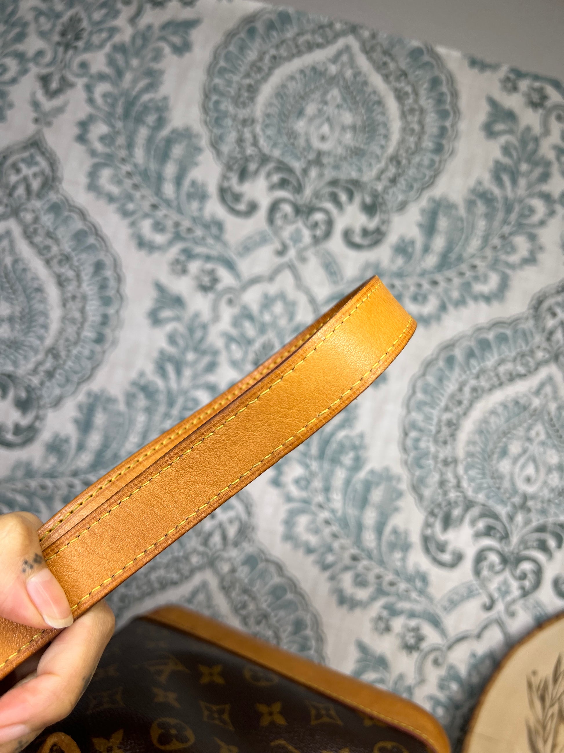 šø Leather does have different shades of patina through out. Some of the leather has a honey patina while other parts have a lighter color. Chaps are strong. Drawstring has wear, but is intact. Side bands look good. Trim is intact. Vachetta does watermarks and scuffs, but is sturdy. Strap is crack free and strong.