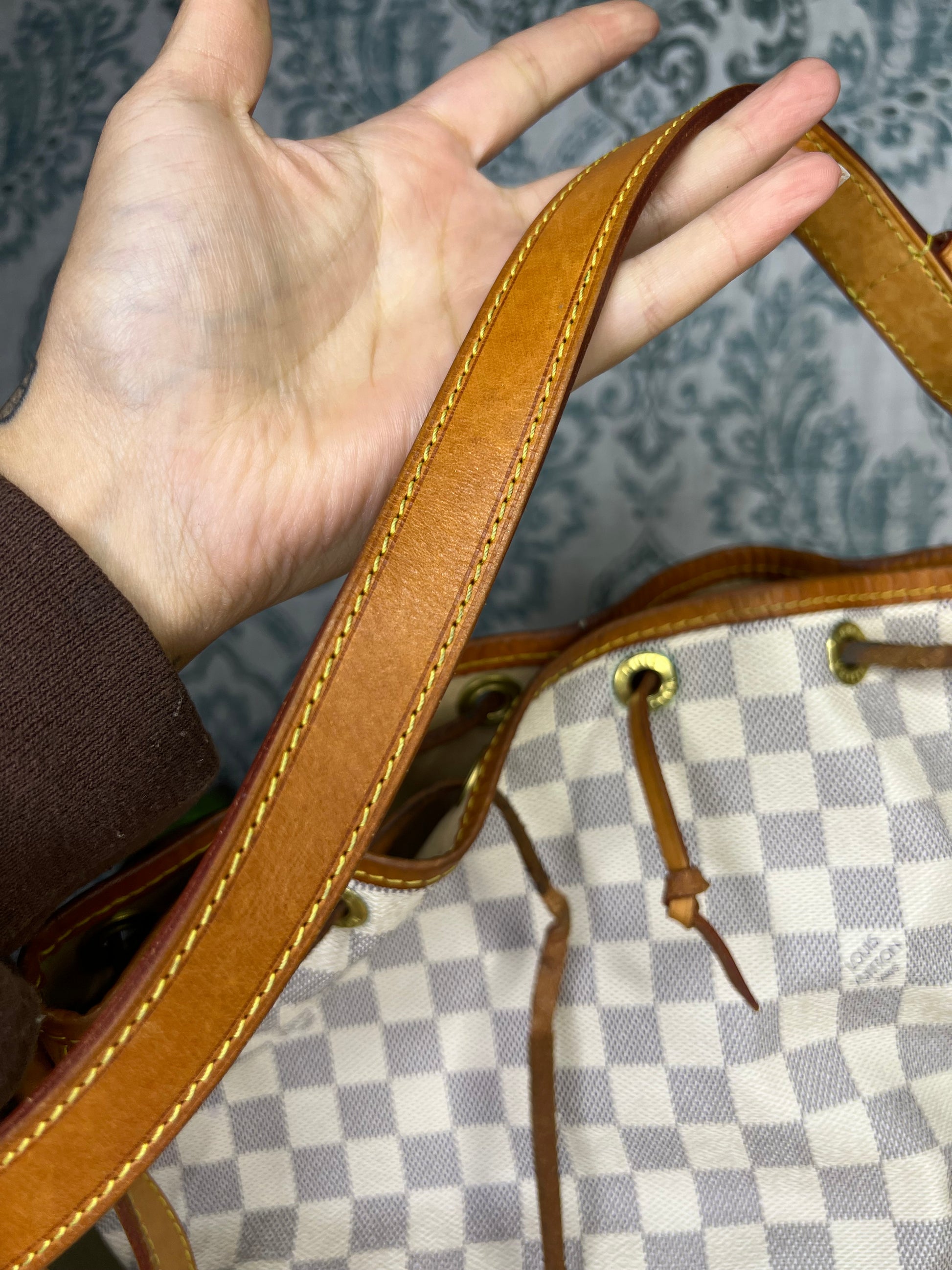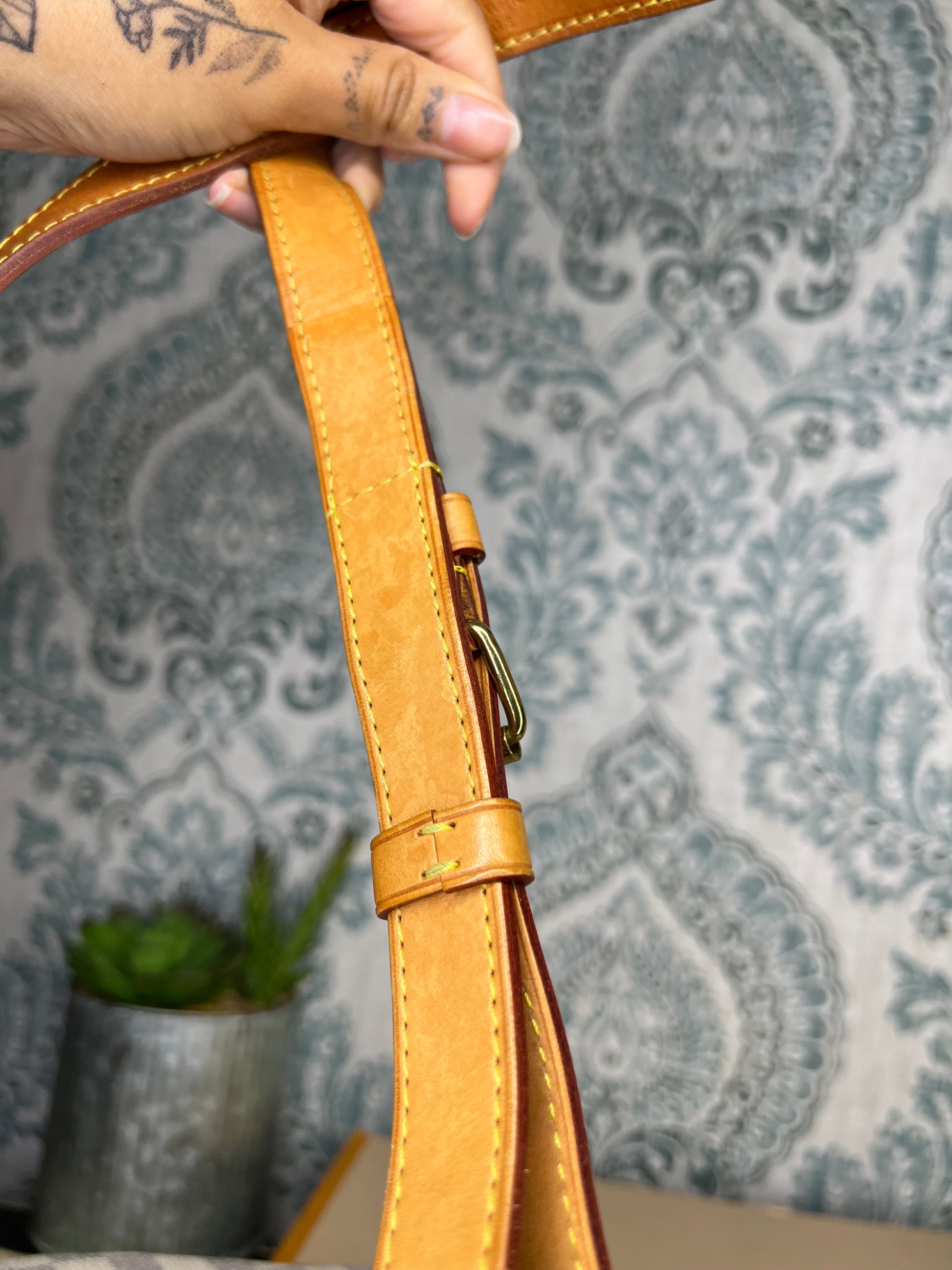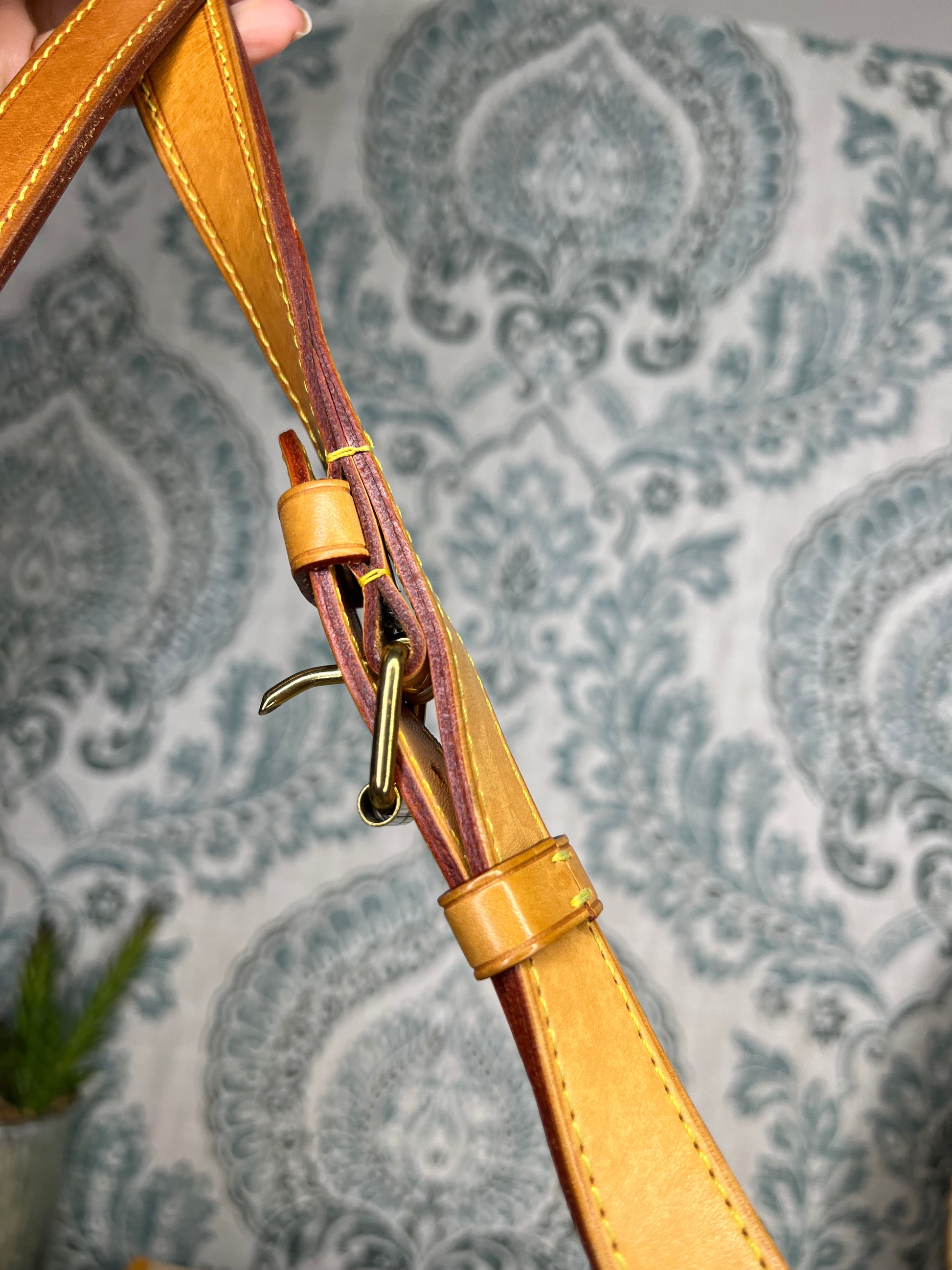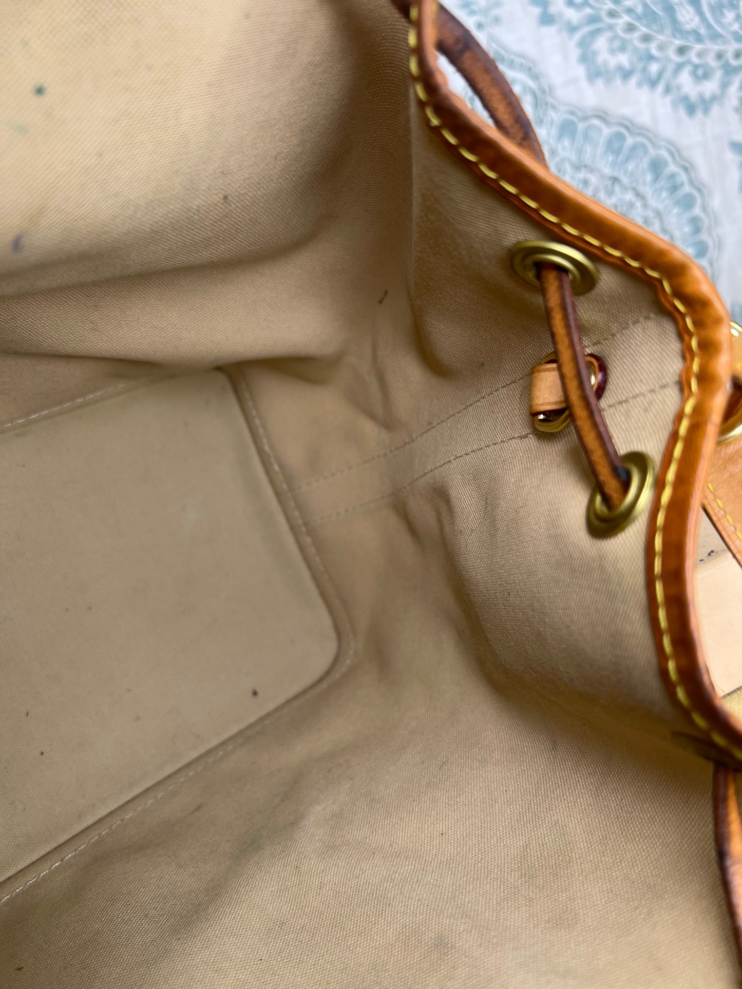 šø Chaps are strong. Drawstring has wear and stains, but is intact. Trim has minor cracks. Side bands look good. Vachetta does watermarks and scuffs, but is sturdy. Strap is crack free and strong.