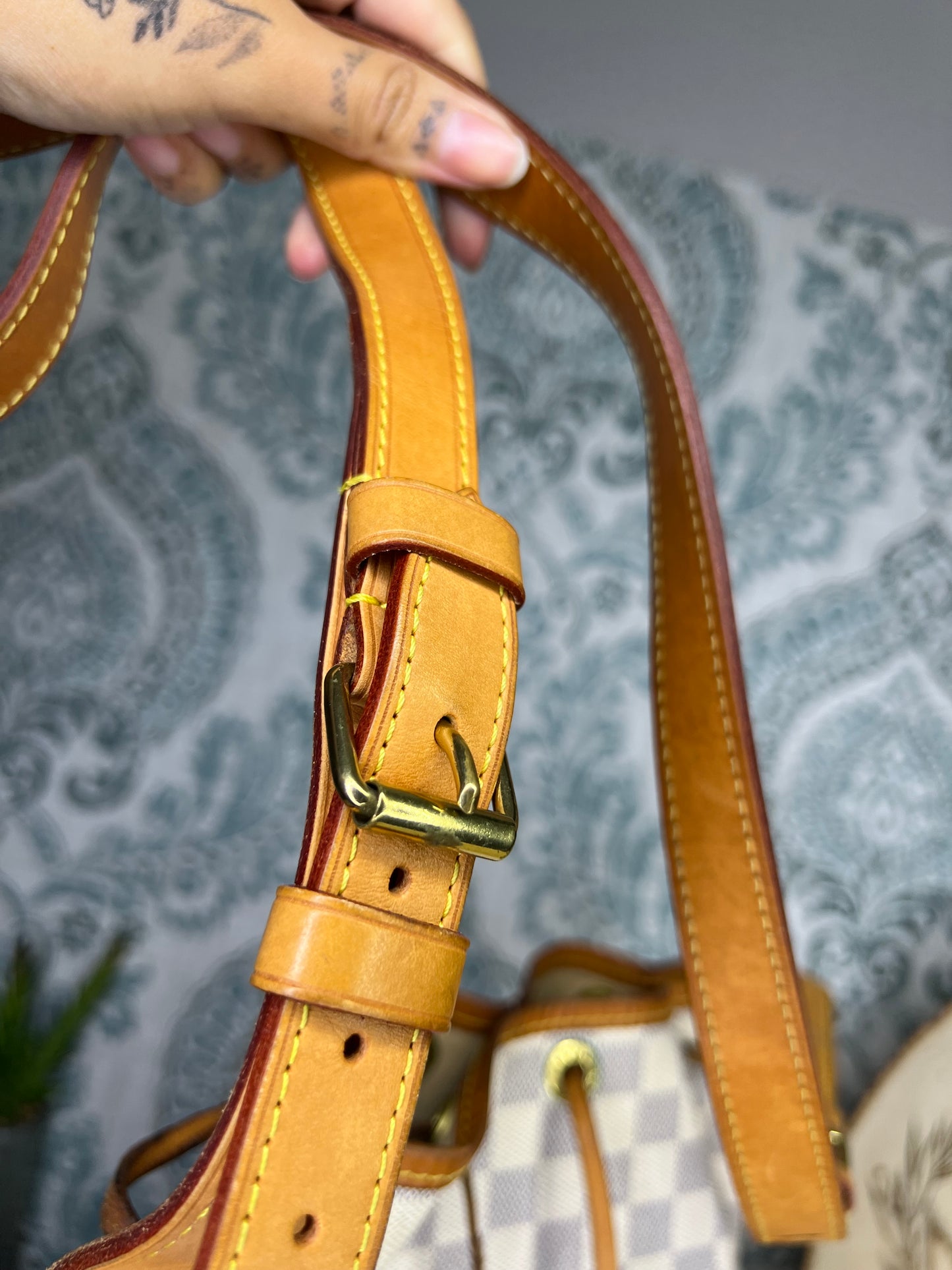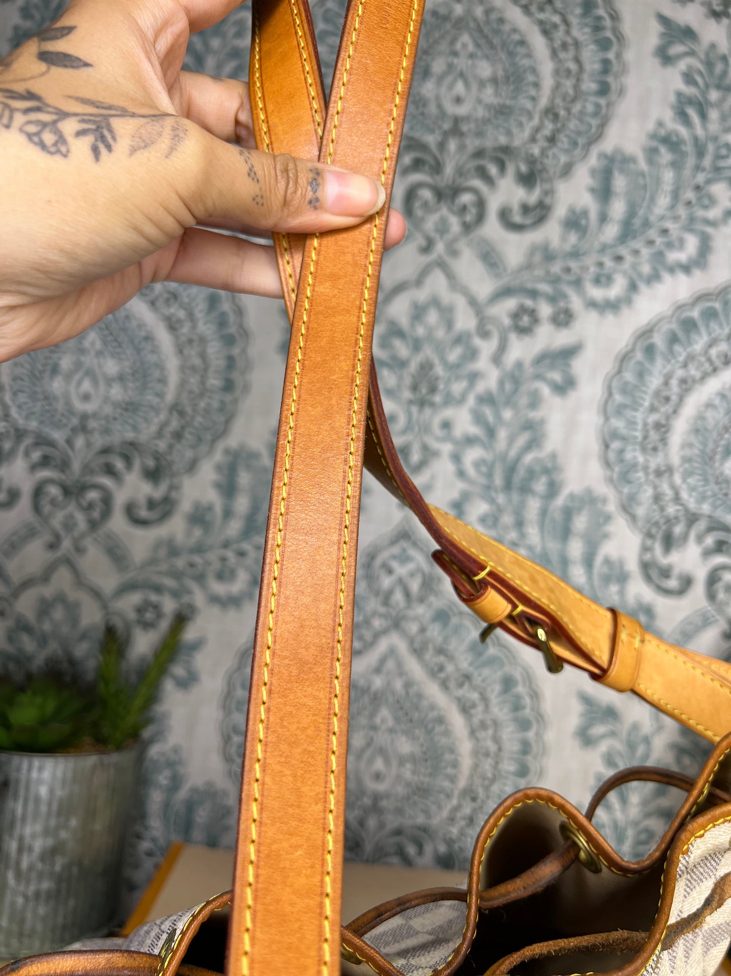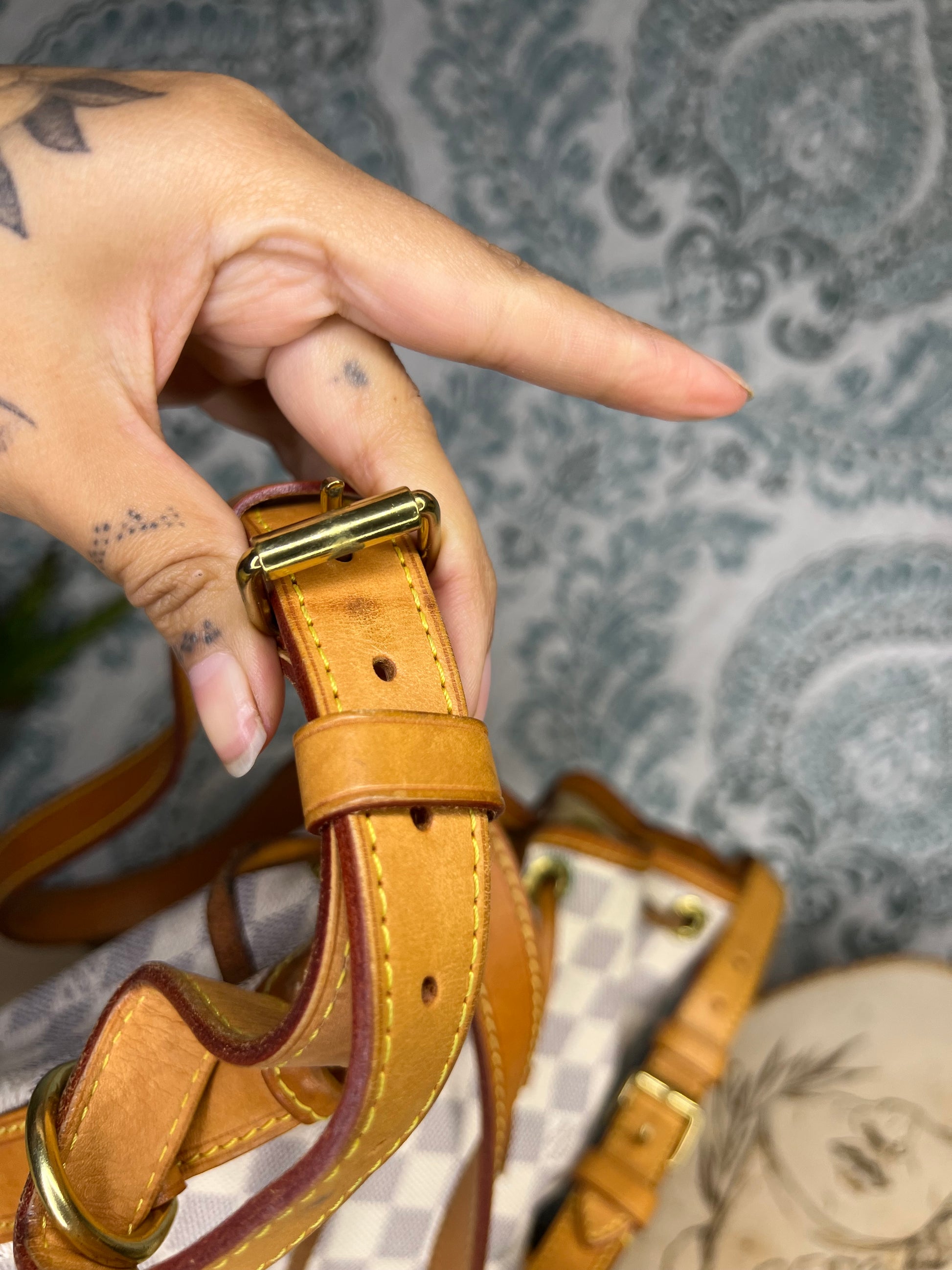 šø Chaps are strong. Drawstring has wear and stains, but is intact. Trim has minor cracks. Side bands look good. Vachetta does watermarks and scuffs, but is sturdy. Strap is crack free and strong.