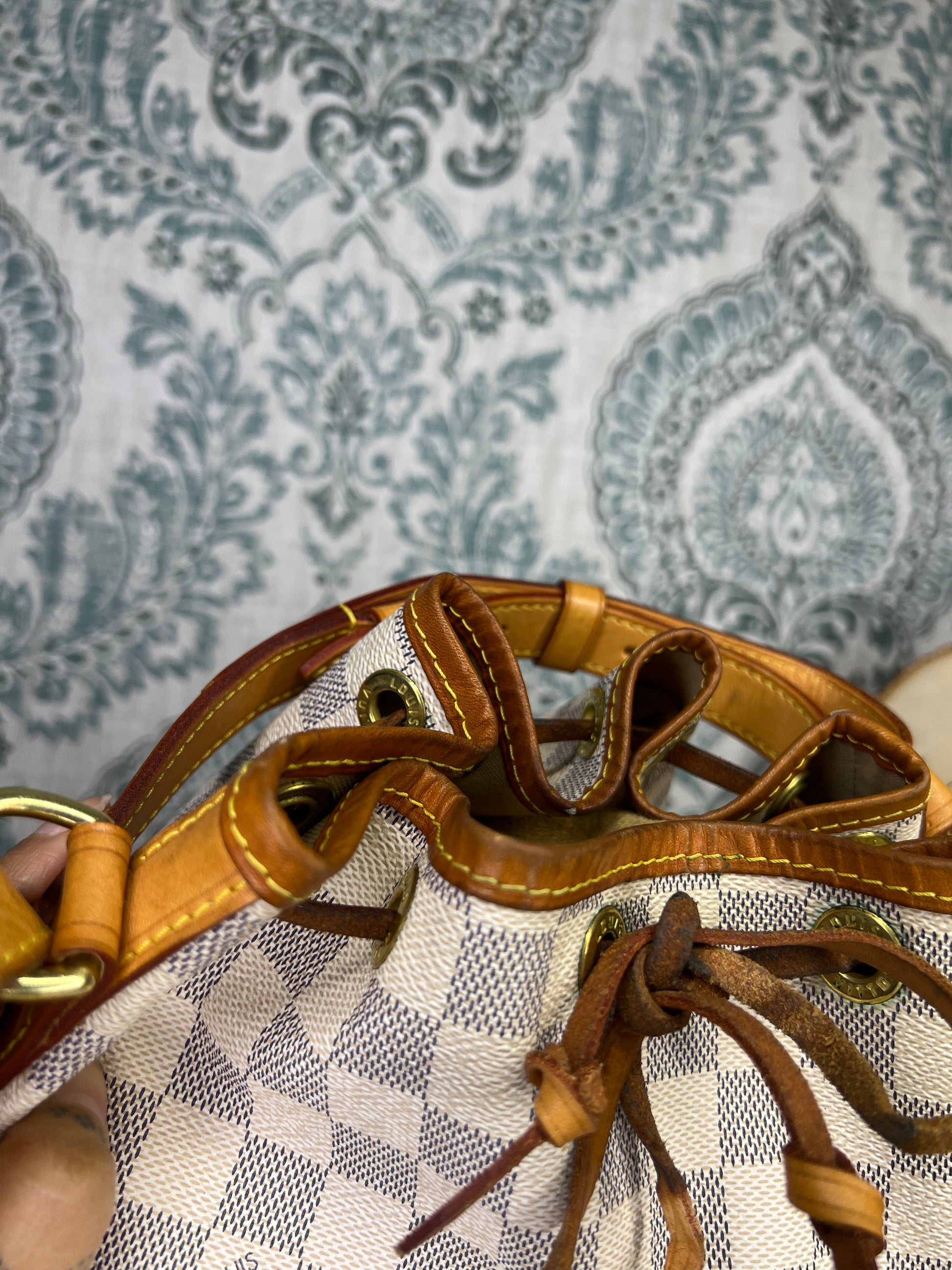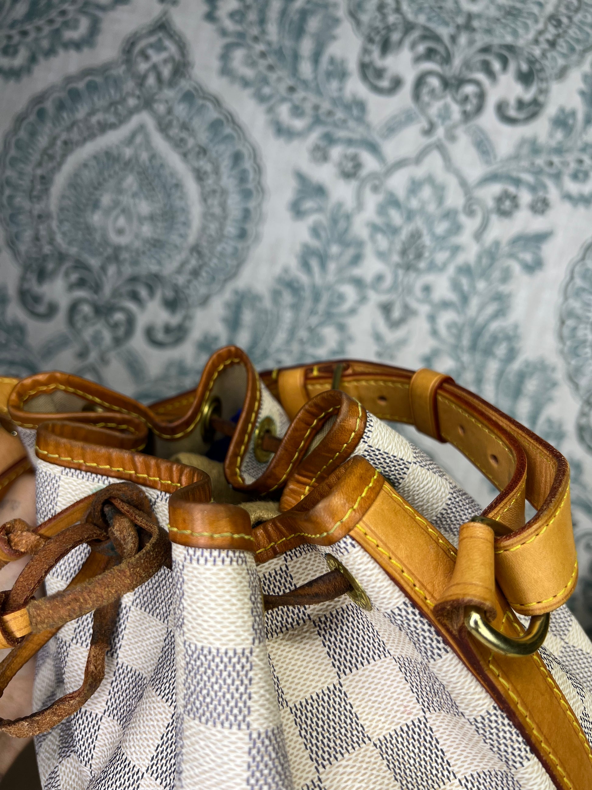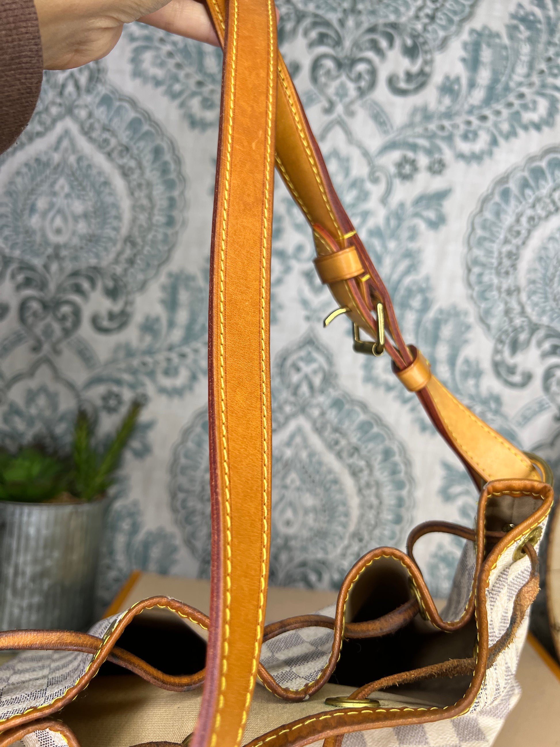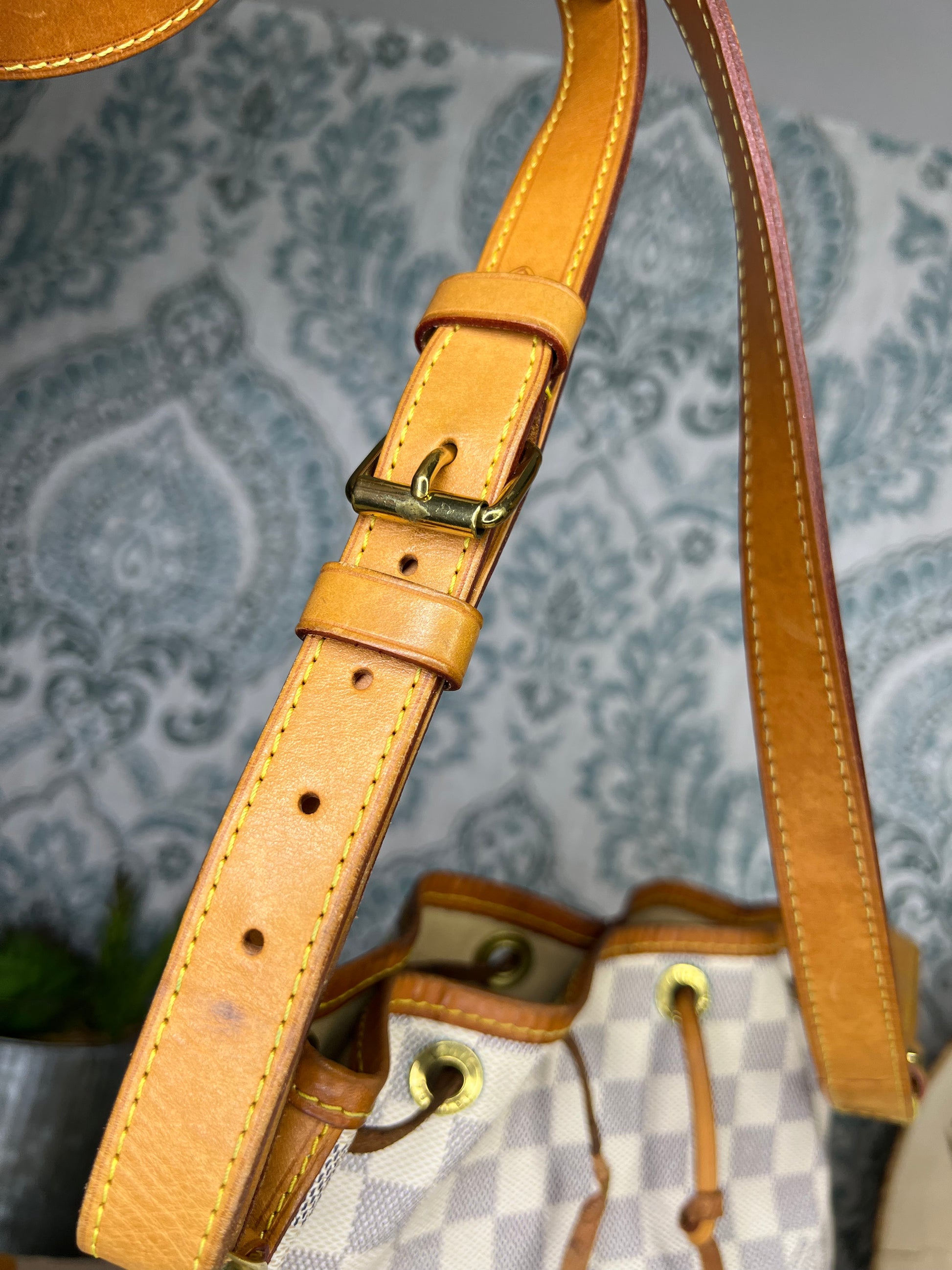 šø Chaps are strong. Drawstring has wear and stains, but is intact. Trim has minor cracks. Side bands look good. Vachetta does watermarks and scuffs, but is sturdy. Strap is crack free and strong.
