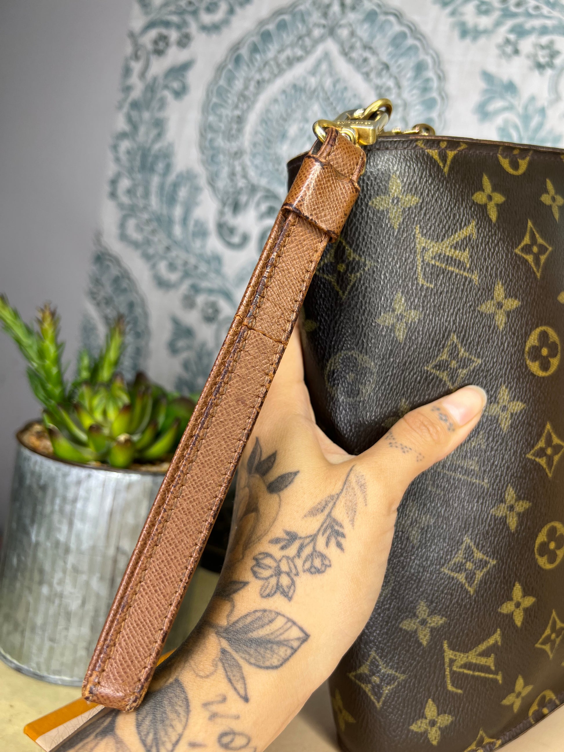šø Canvas has hairline cracks towards top edge of the clutch. Scuffing and scratching present on canvas. Monogram is fading mainly towards to bottom on each side of the clutch