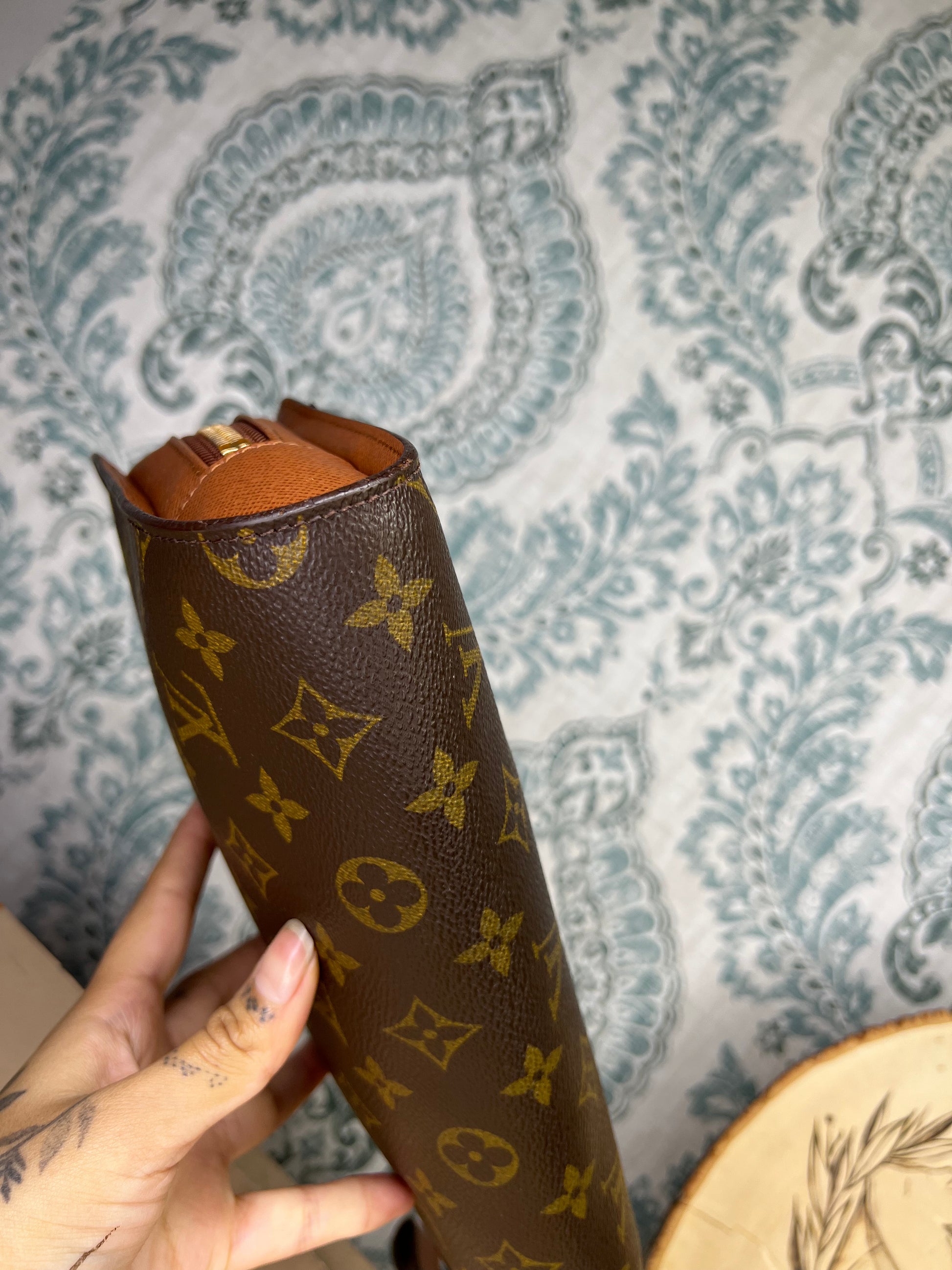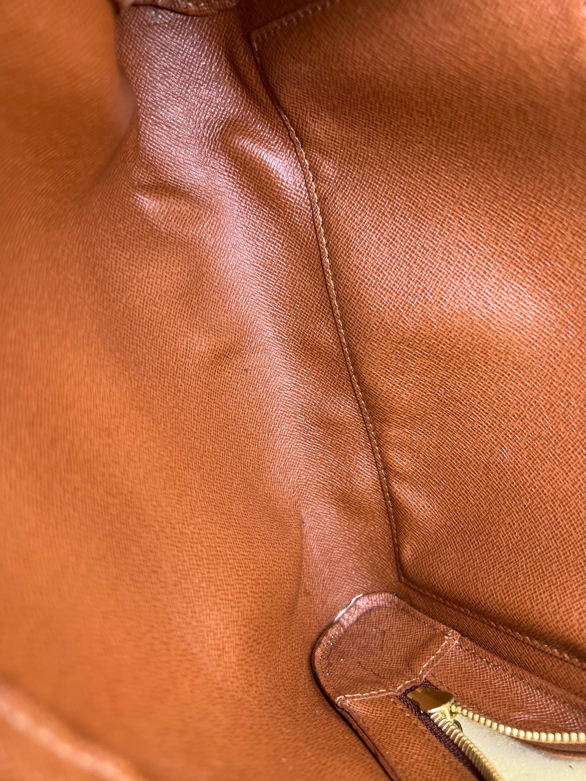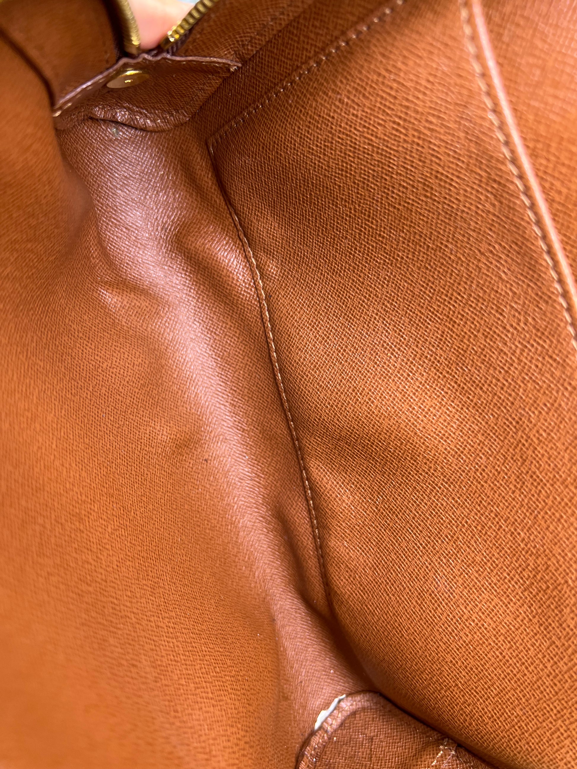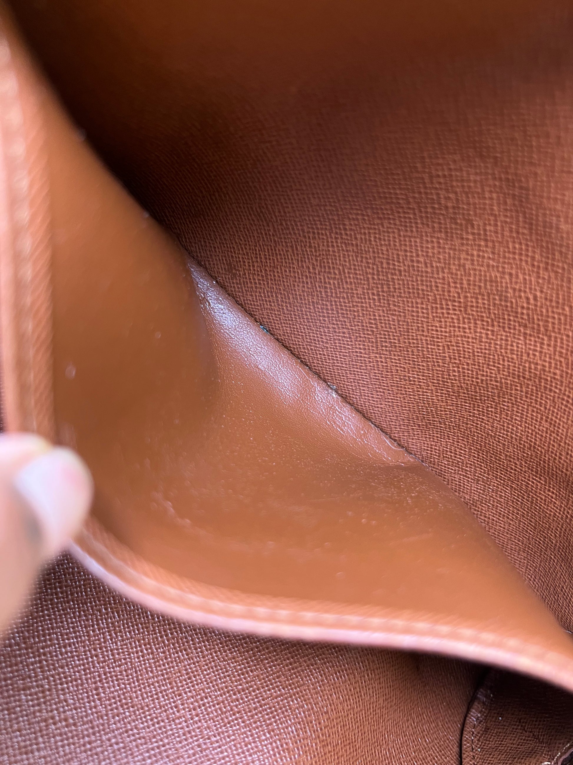 πΈ Exterior pocket lining was removed. White lining is what remains of that pocket. Some residue present, but itβs usable overall. Both interior pockets are clean and usable. Minor scuffing in side pocket, but no major peeling and 100% usable.