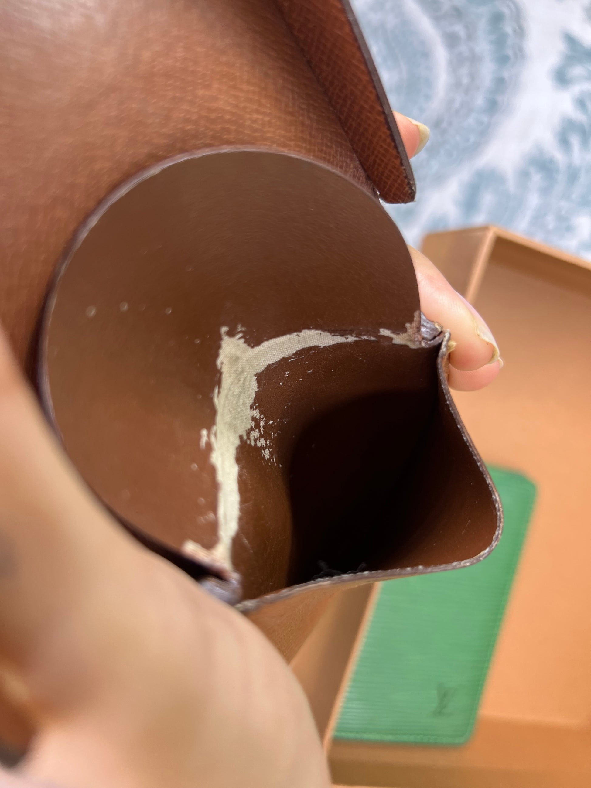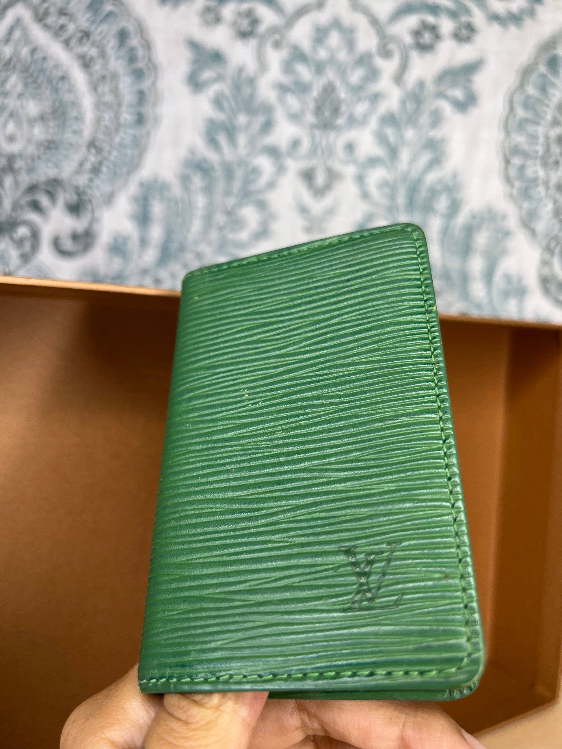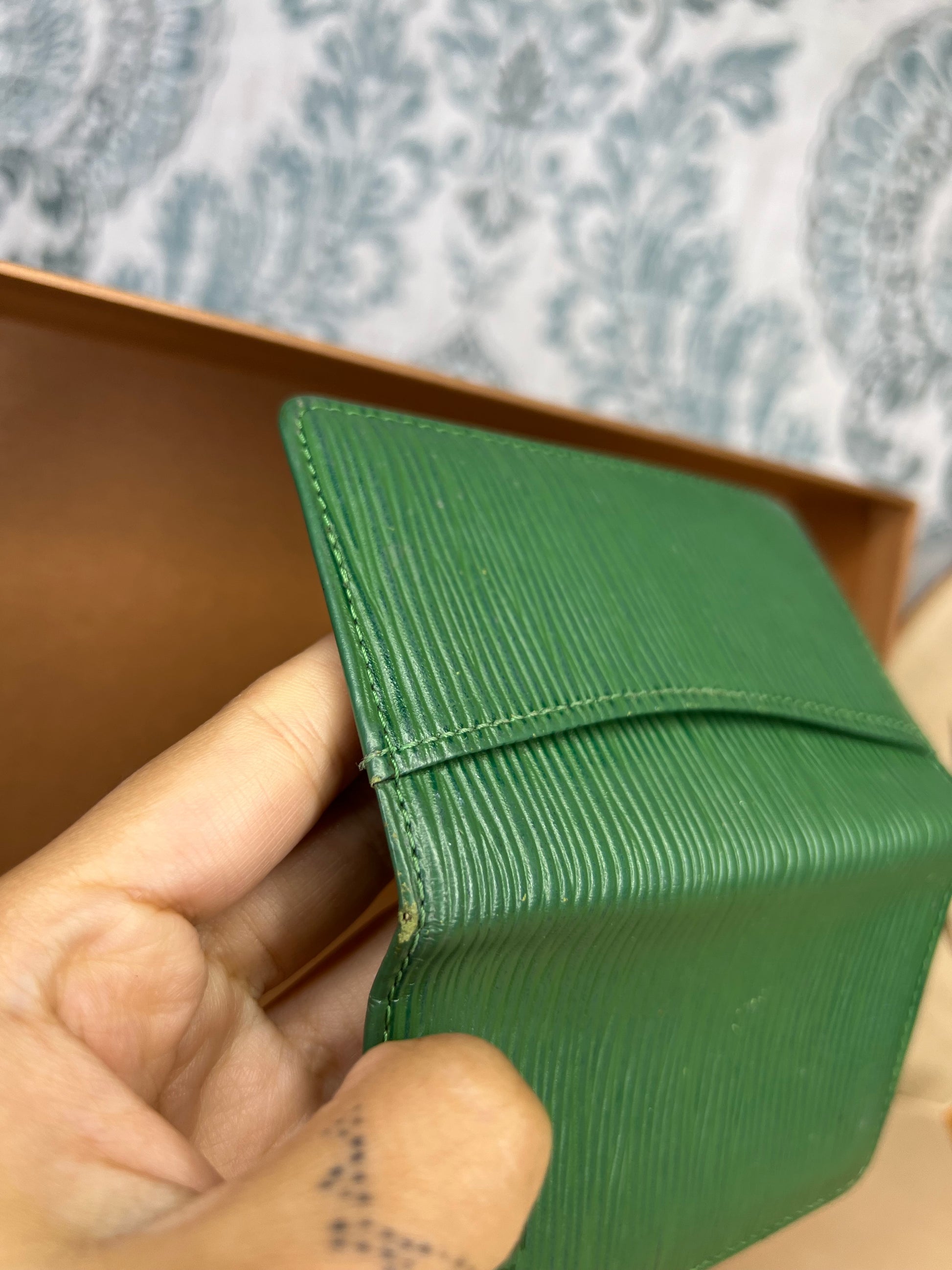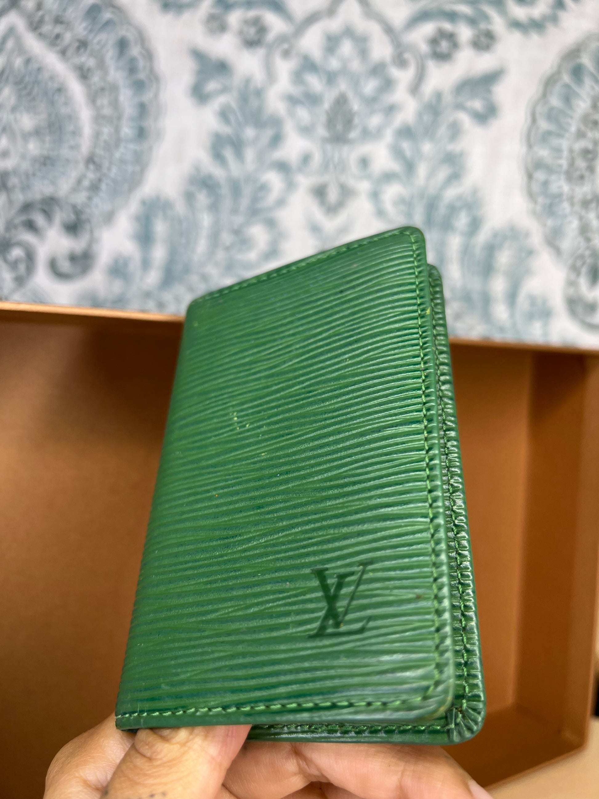 Epi card holder - one torn edge, pockets have peeling but usable, leather scuffs,