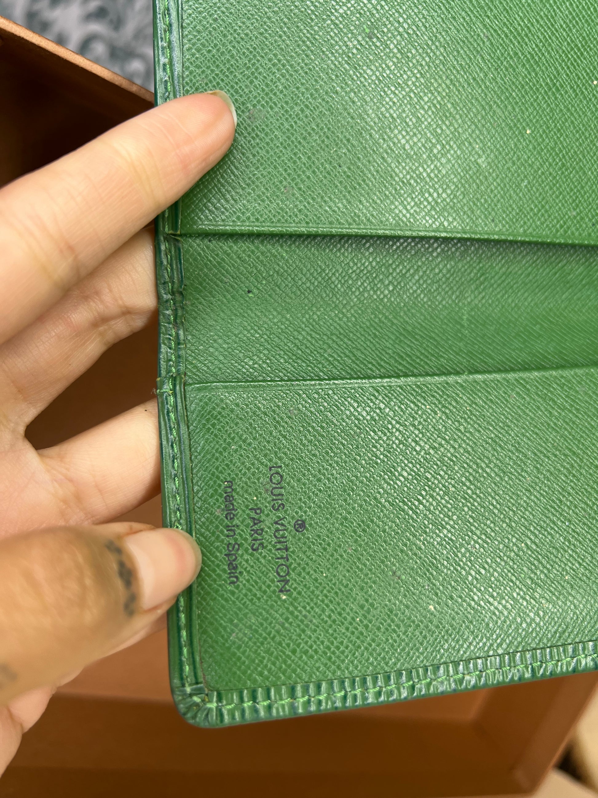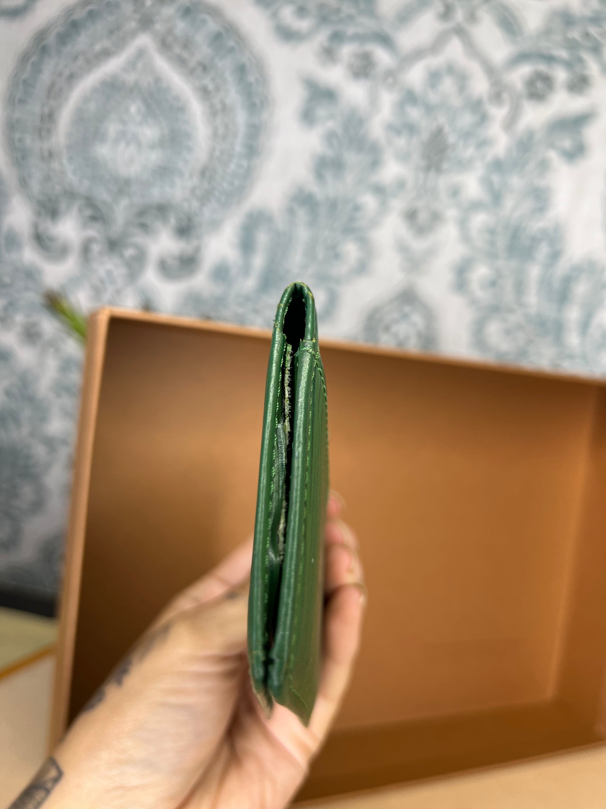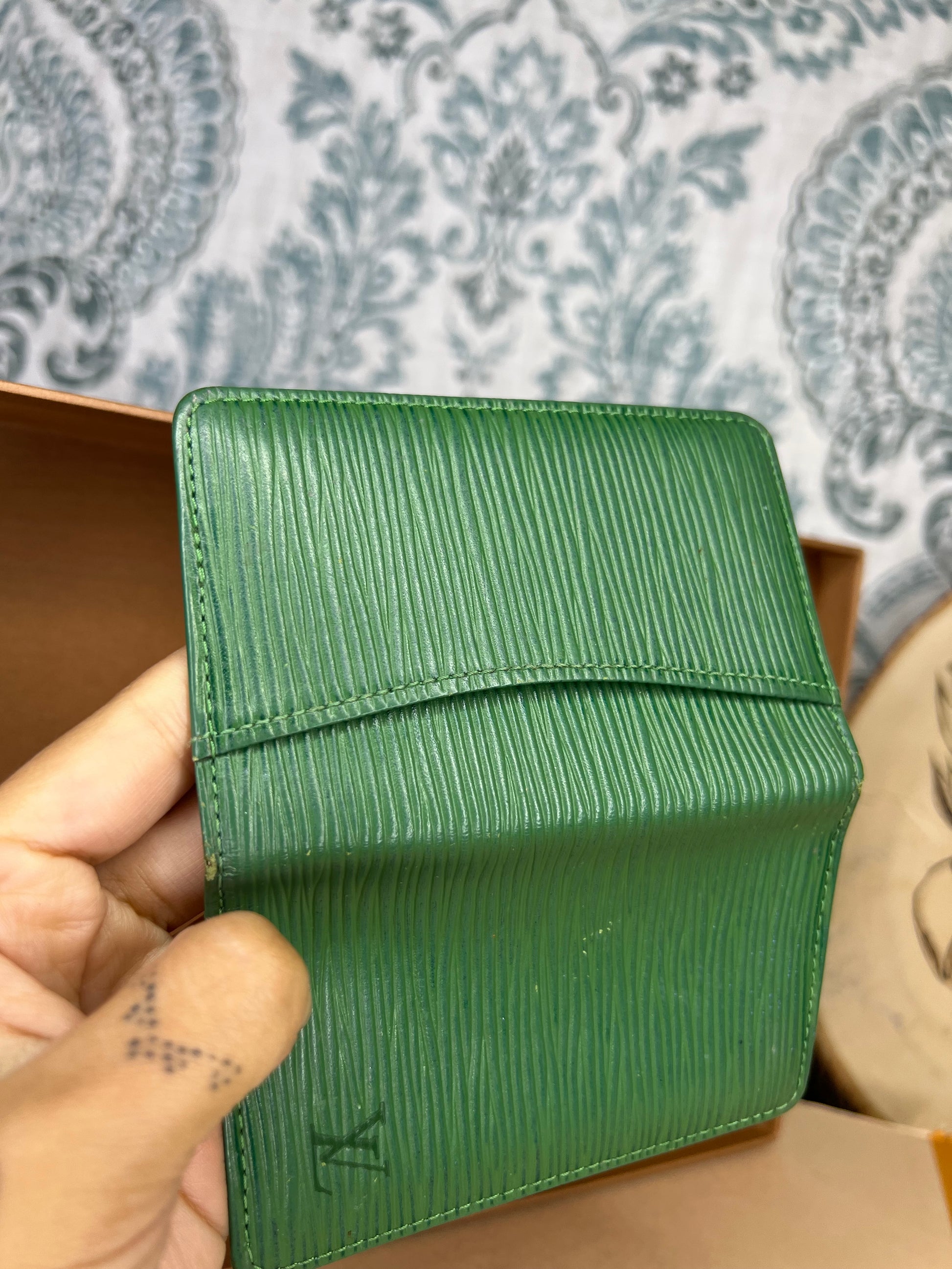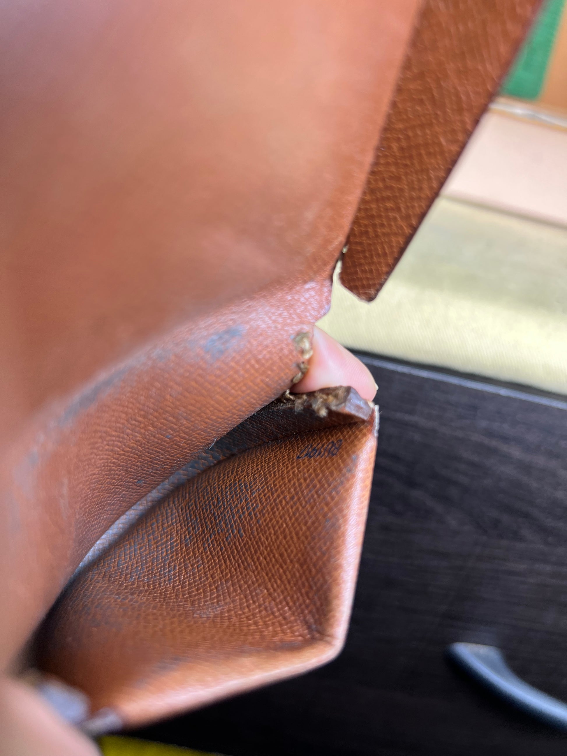 Epi card holder - one torn edge, pockets have peeling but usable, leather scuffs,