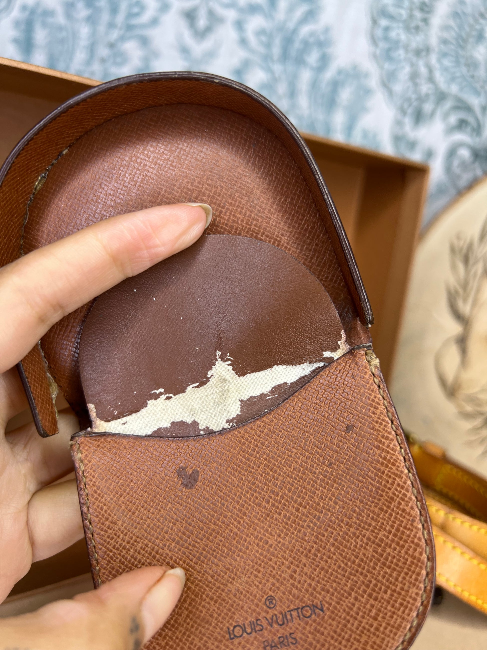 Vachetta strap - completely intact, but missing clasps. Minor surface cracks, no major issues - just needs clasps. Not a crossbody shoulder only