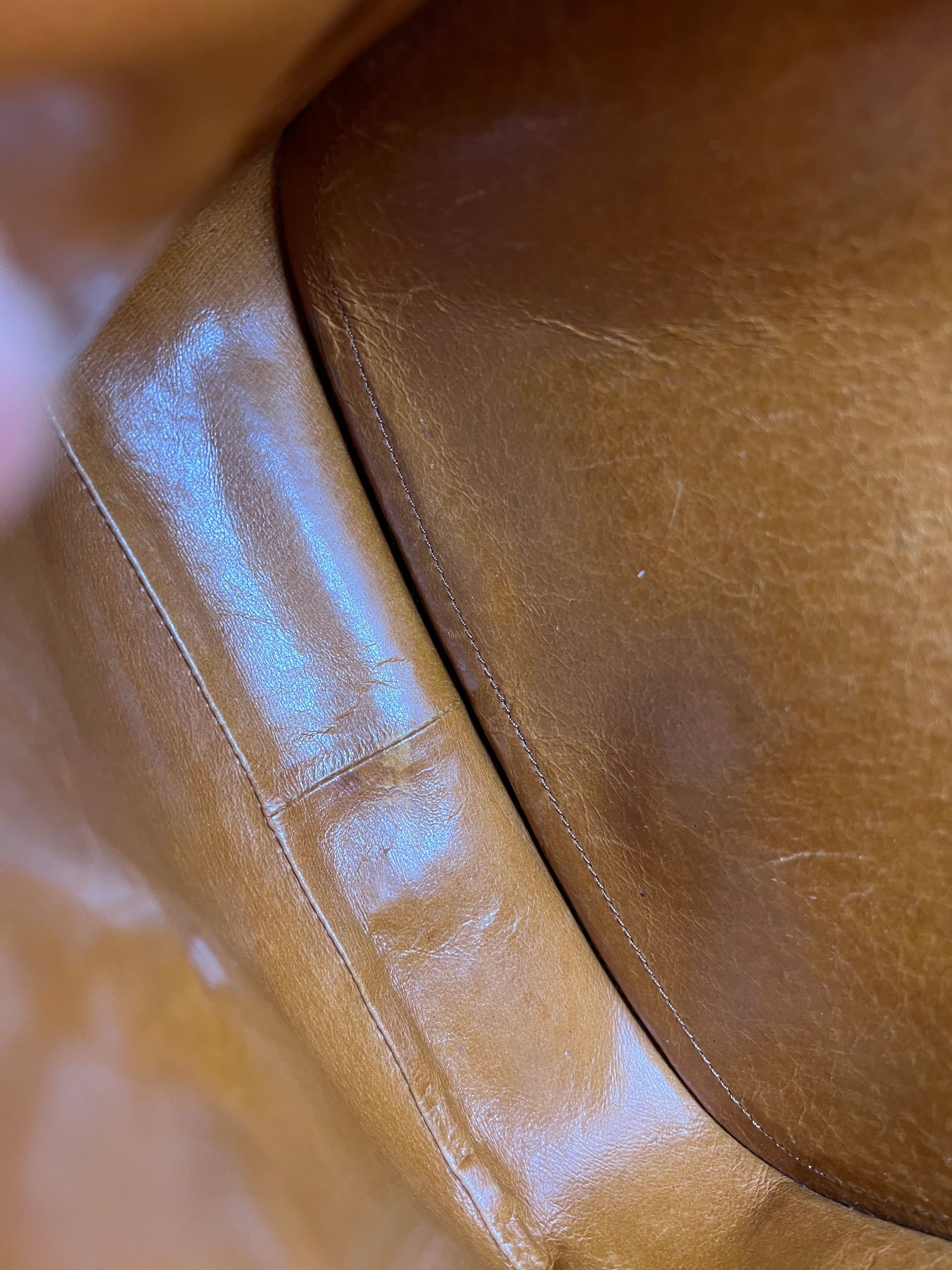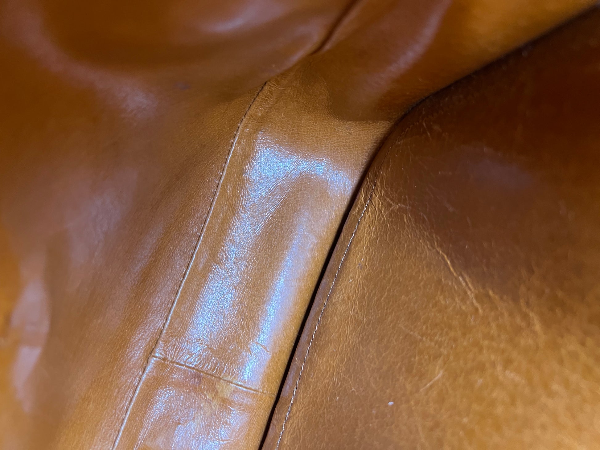 šø Chaps are strong. Strap is thick and strong. Minor surface cracks and wrinkles. Scuffing and darkening present on strap. Staining present on leather, but no large damaged areas
