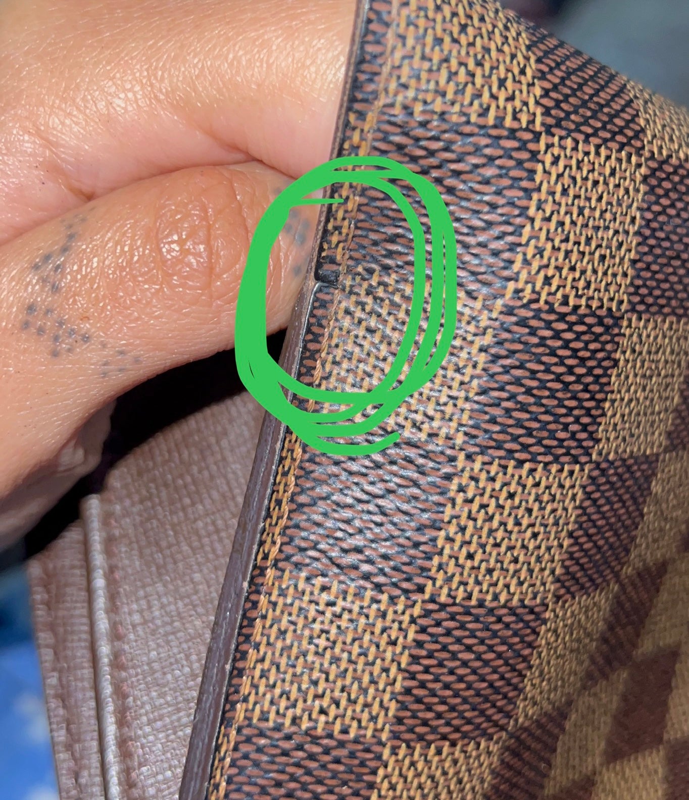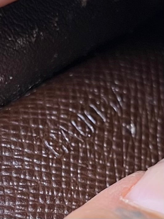 šø Canvas has one minor canvas crack at edge backside of the wallet, shown in photo with green circle. Front flap curls up slightly at corners. Print has minor rubs, but is clear and in good shape overall