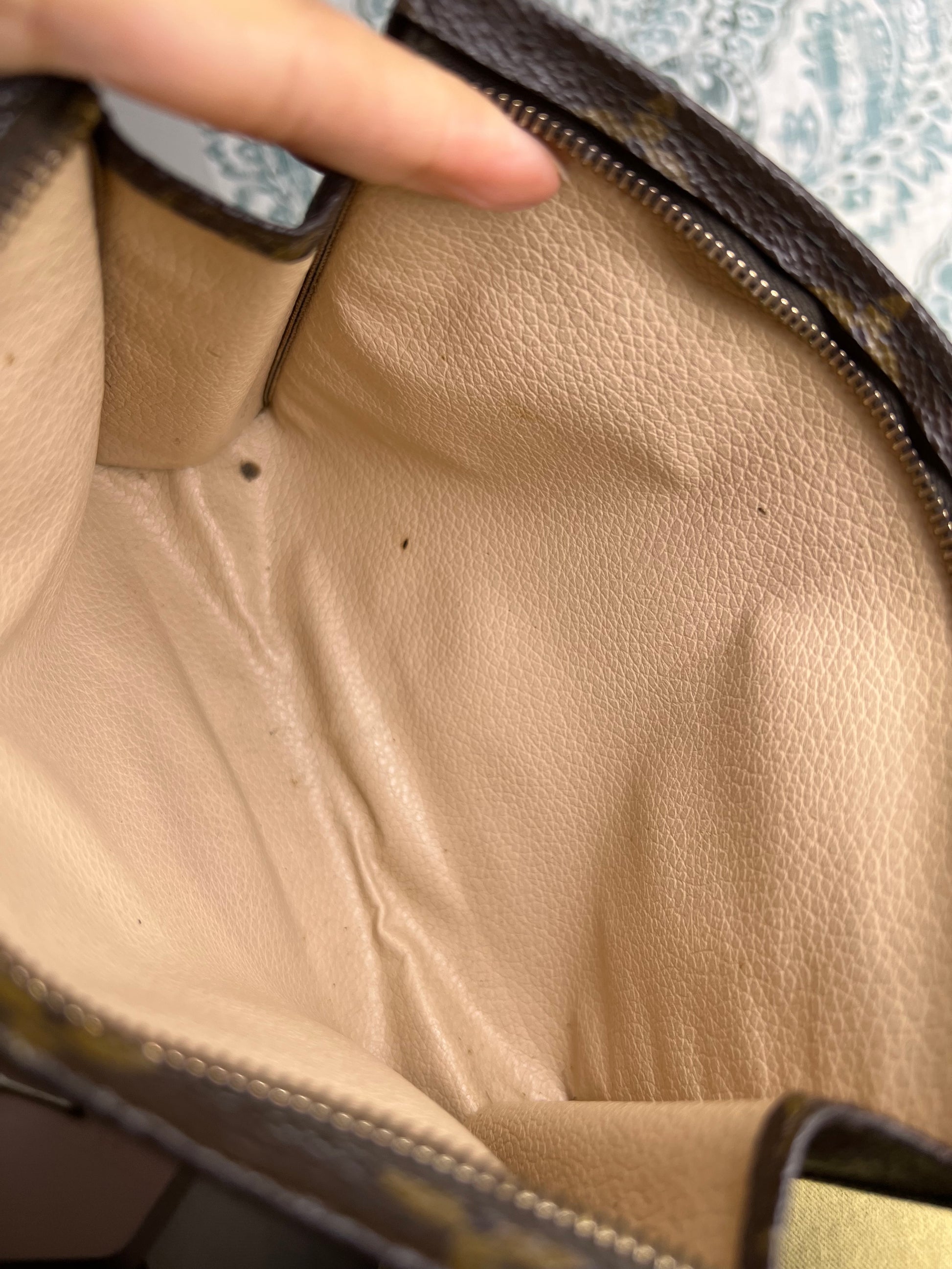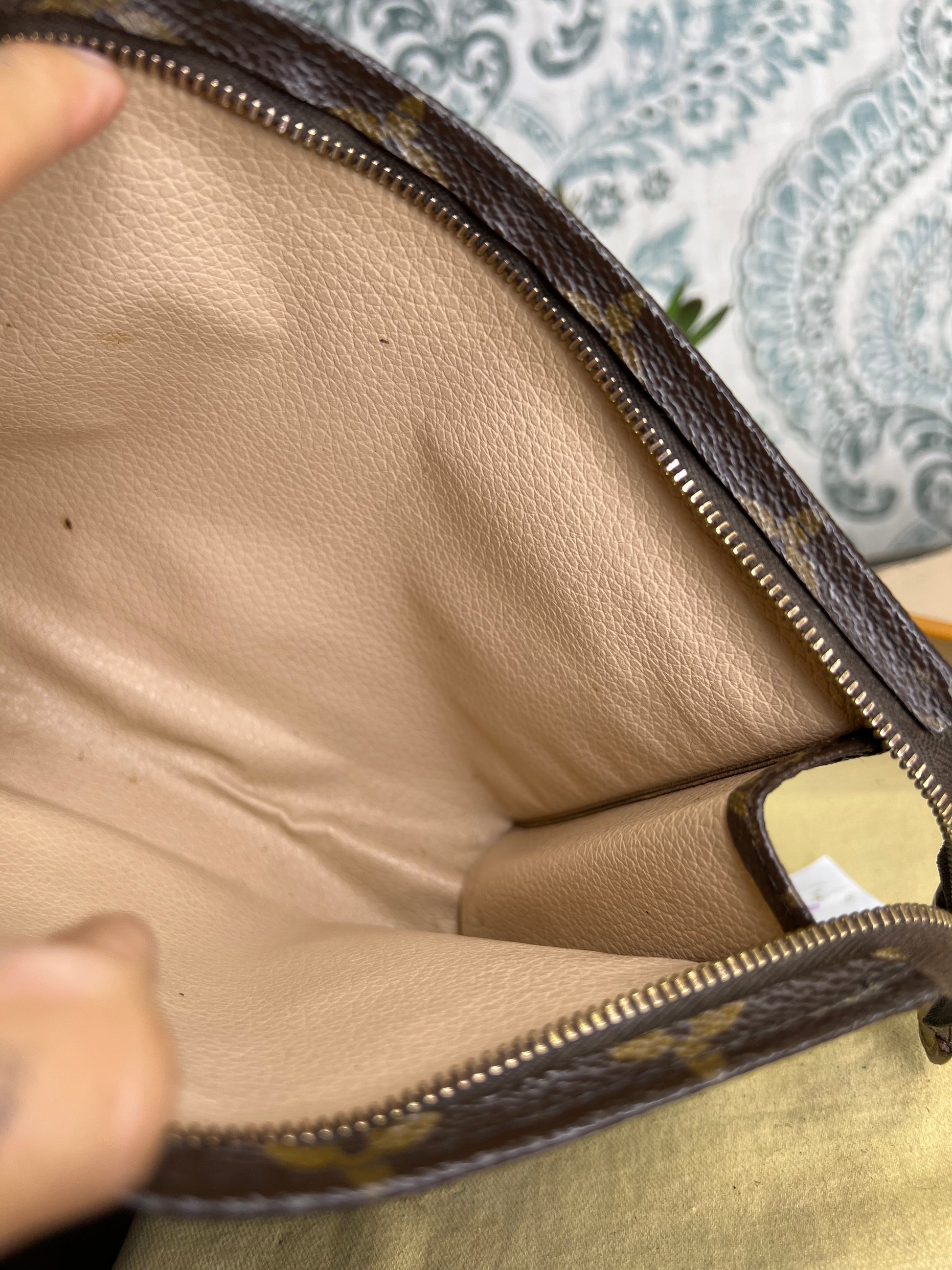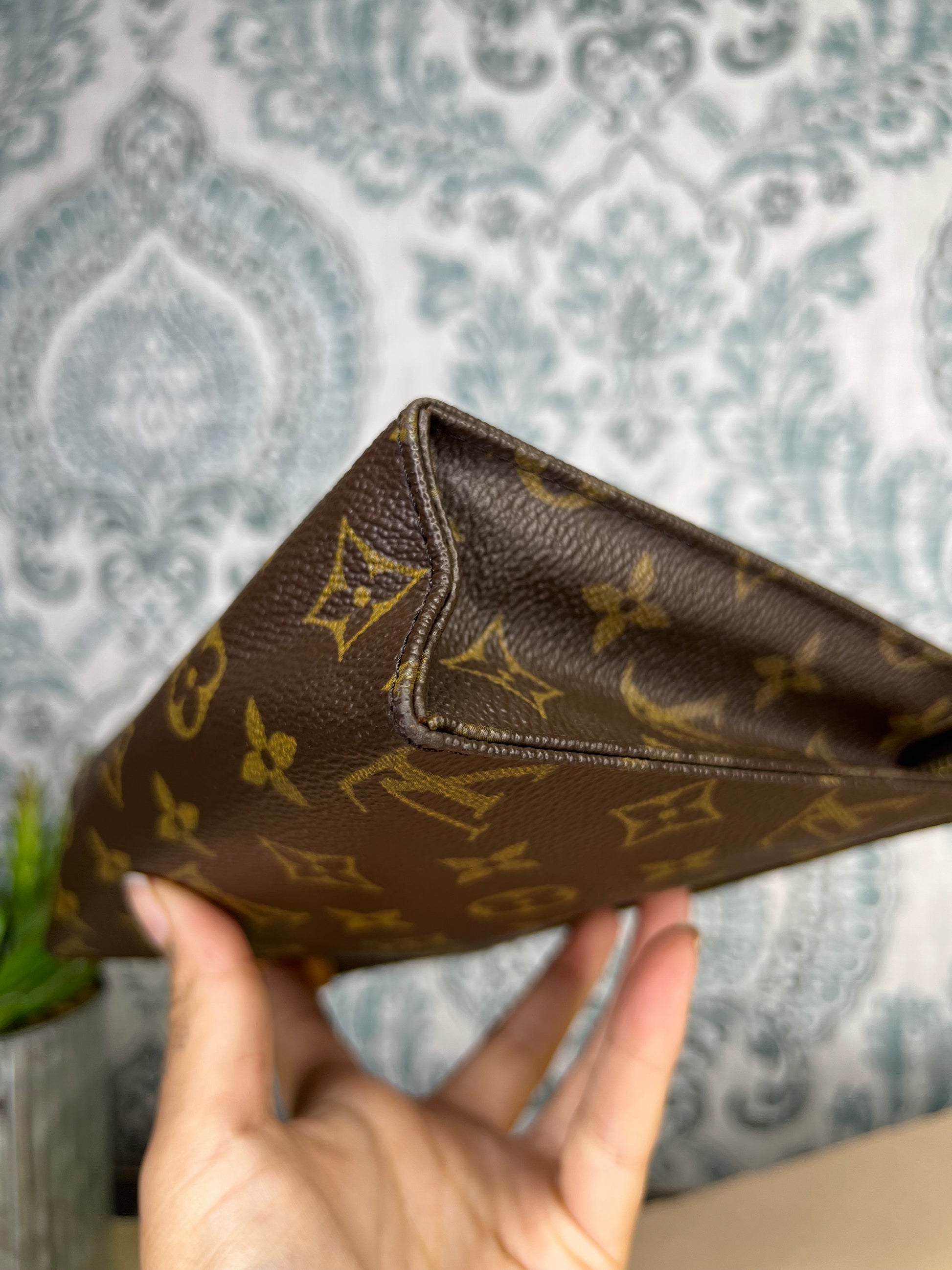 🌸 Canvas has minor hidden cracks at the sides of the pouch. Shown in photos with green circles. Canvas is overall in great shape. Monogram is bright and clear
