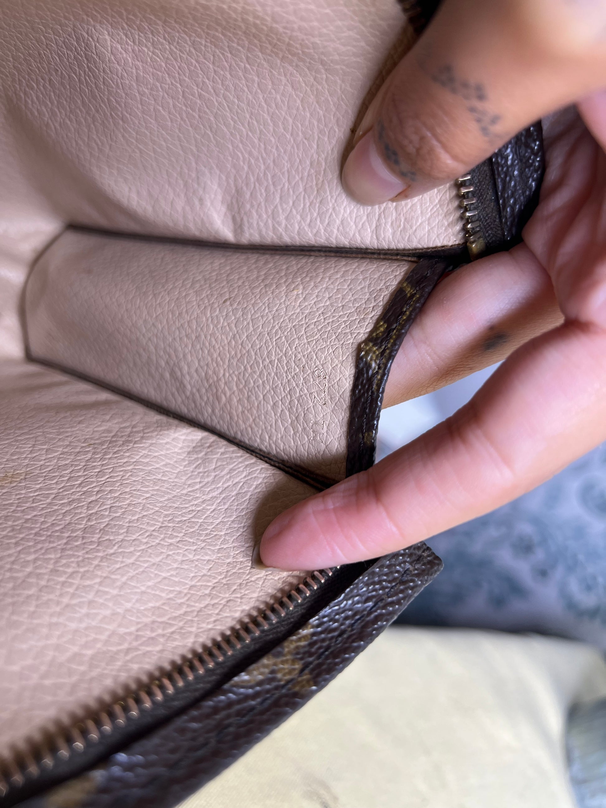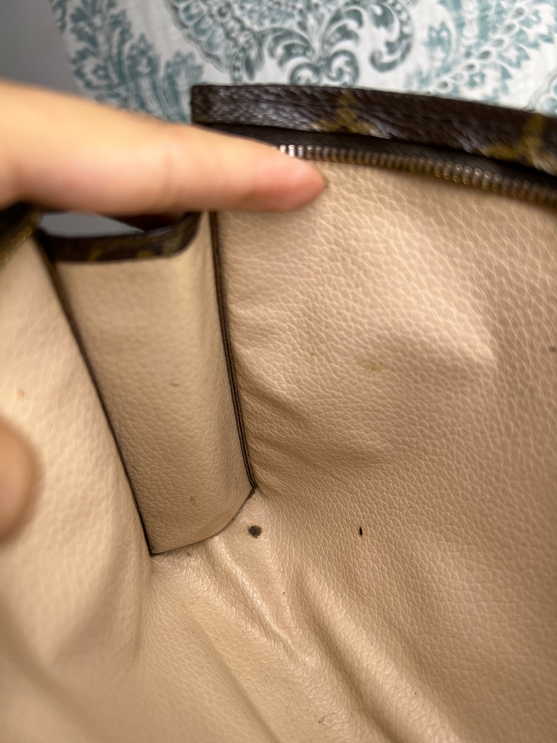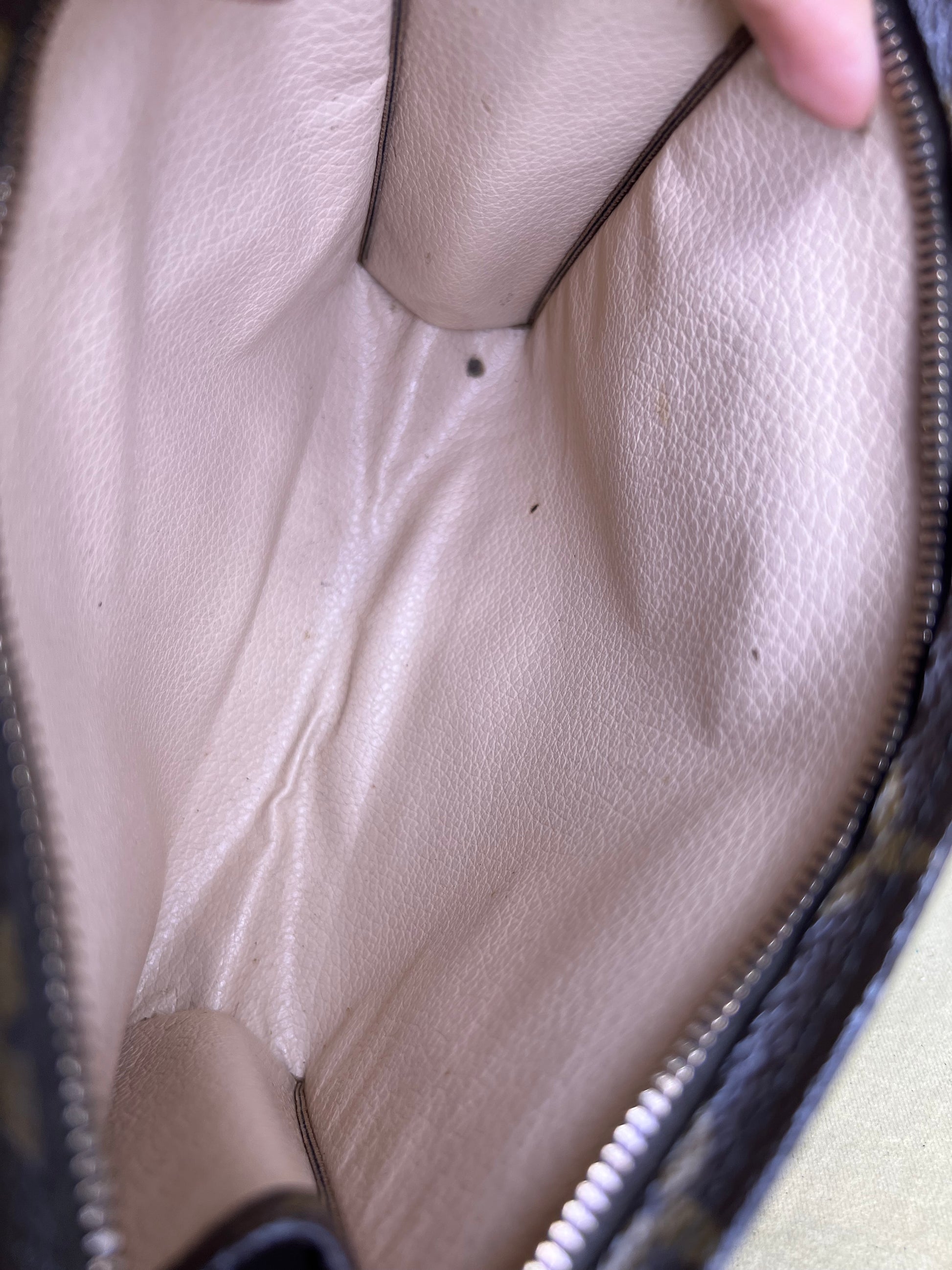 🌸 Canvas has minor hidden cracks at the sides of the pouch. Shown in photos with green circles. Canvas is overall in great shape. Monogram is bright and clear