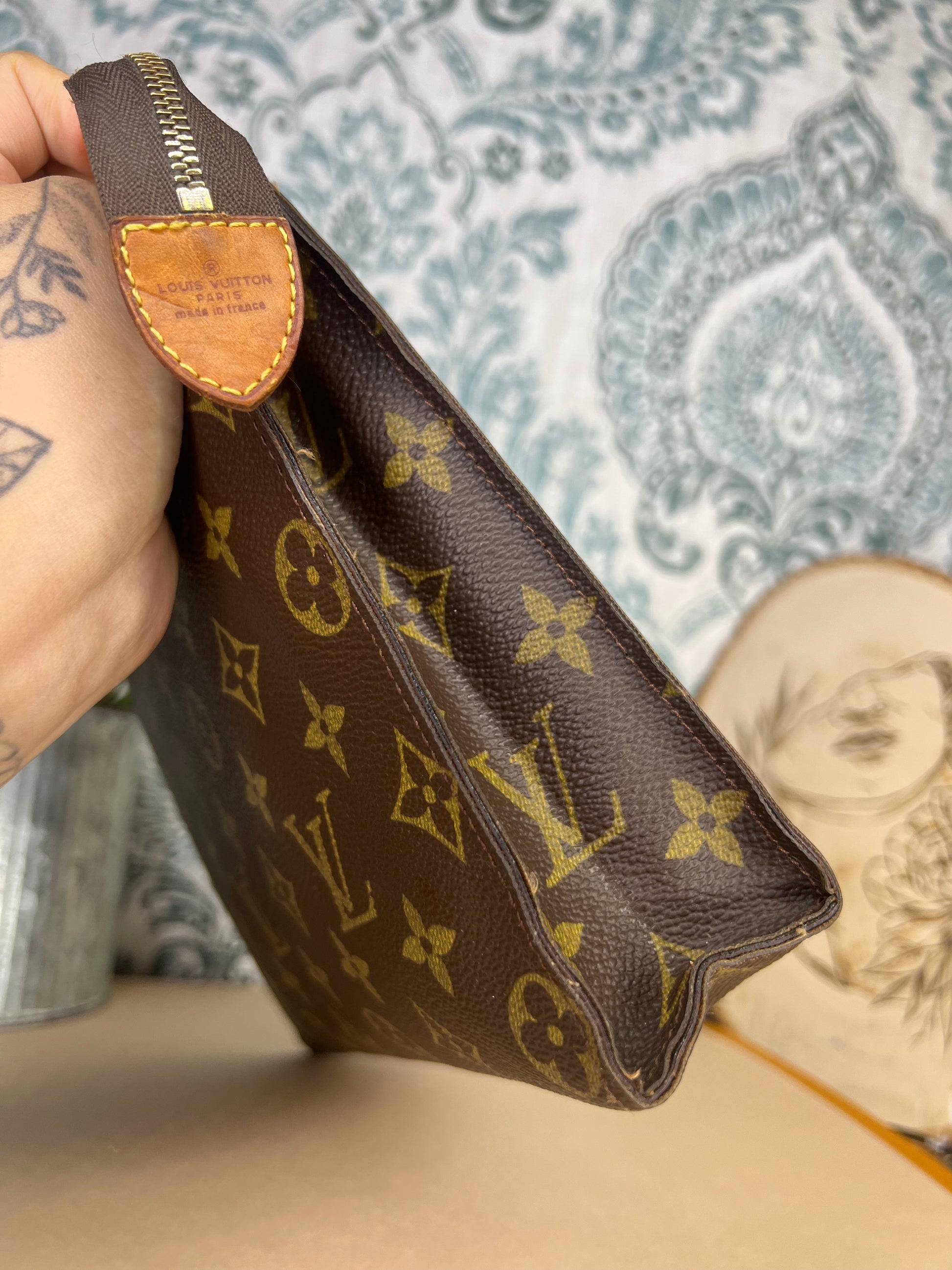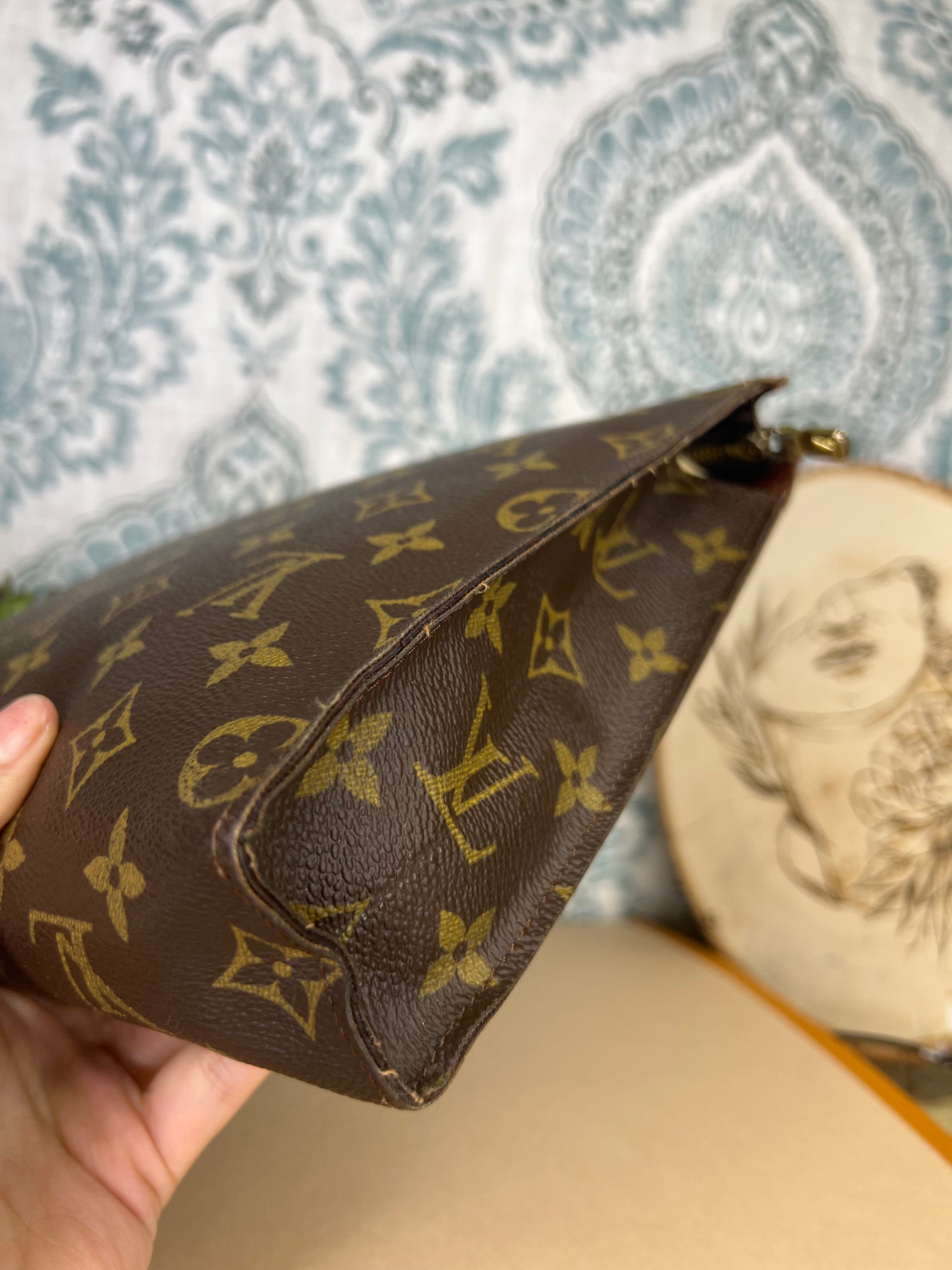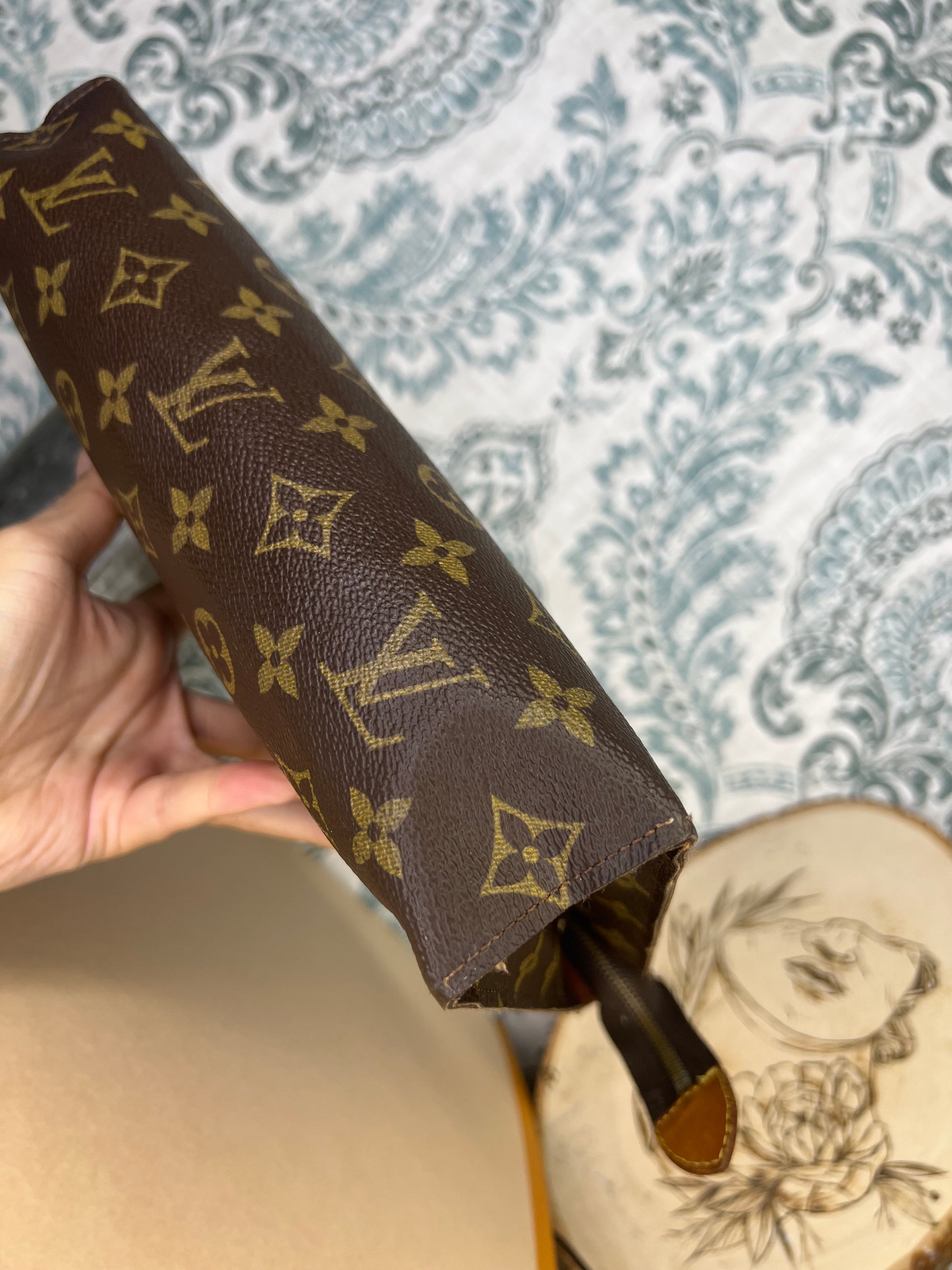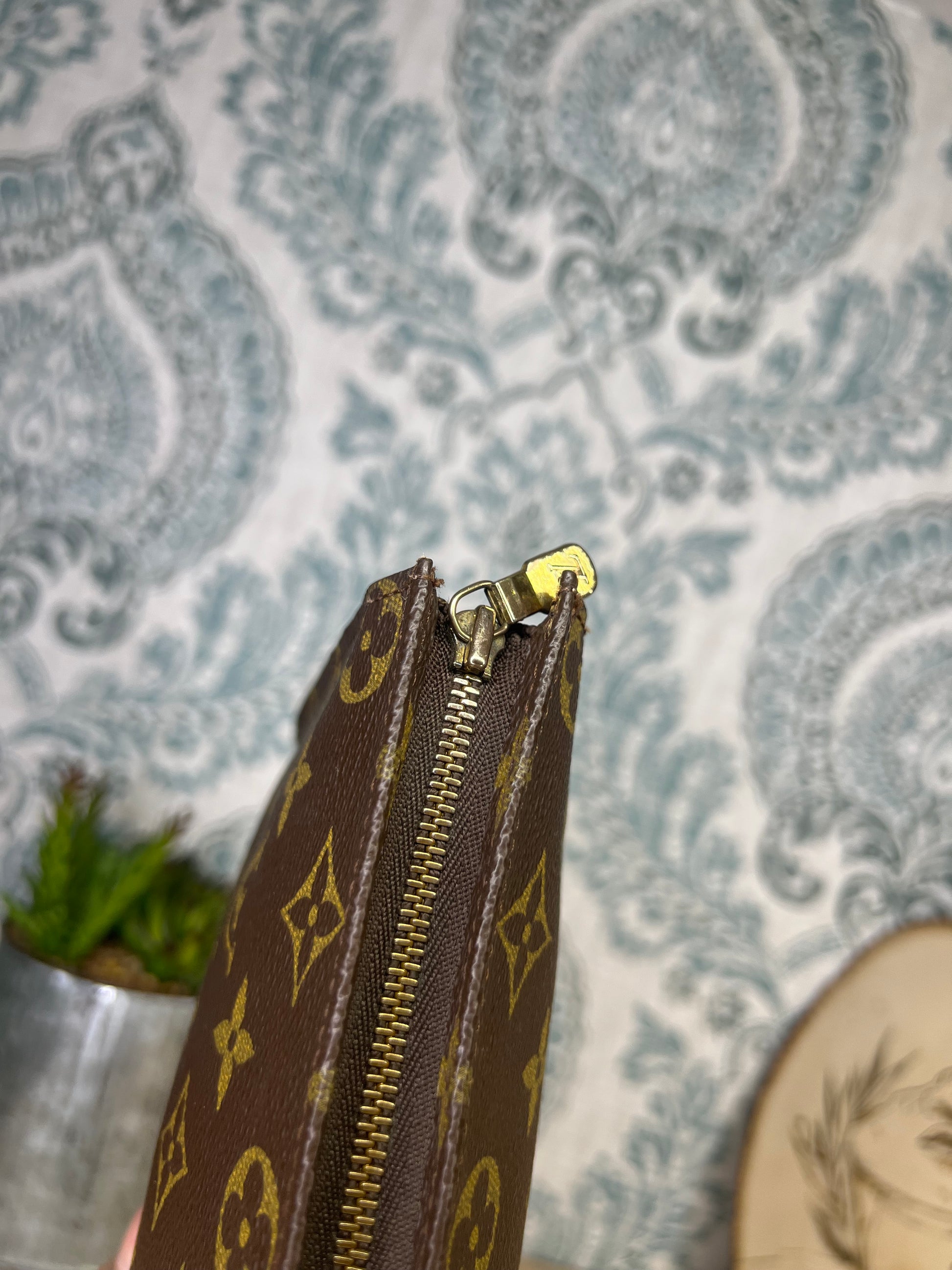 πΈ Canvas has two very small chips on only one side of the pouch. No other canvas wear and itβs in good shape overall. This flaw is shown in the photos with the green circles Monogram is bright and clear through out.