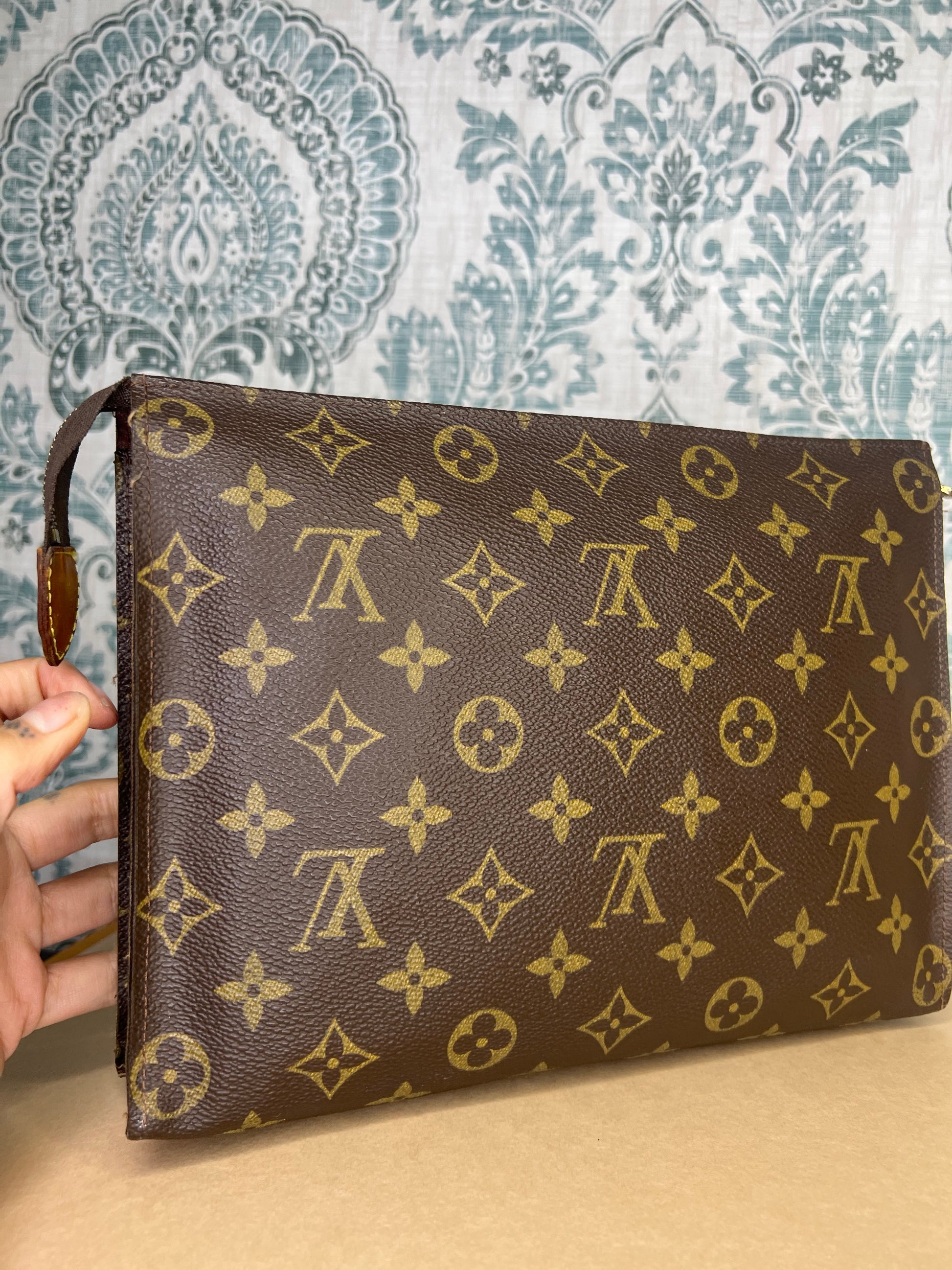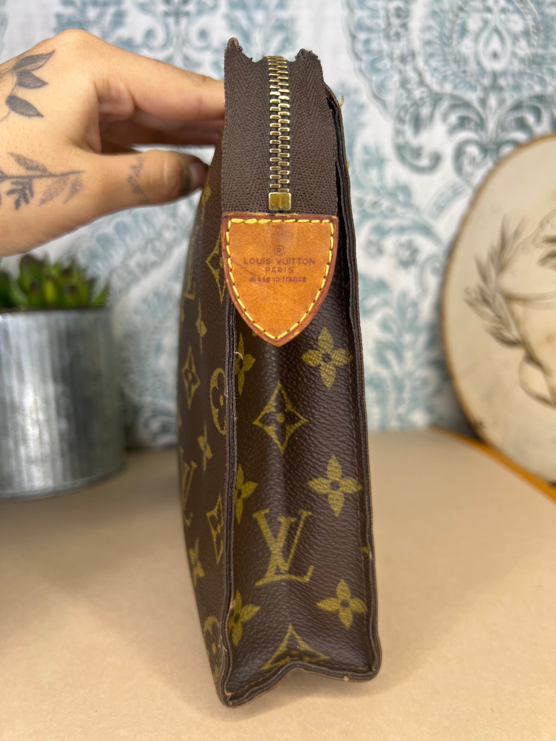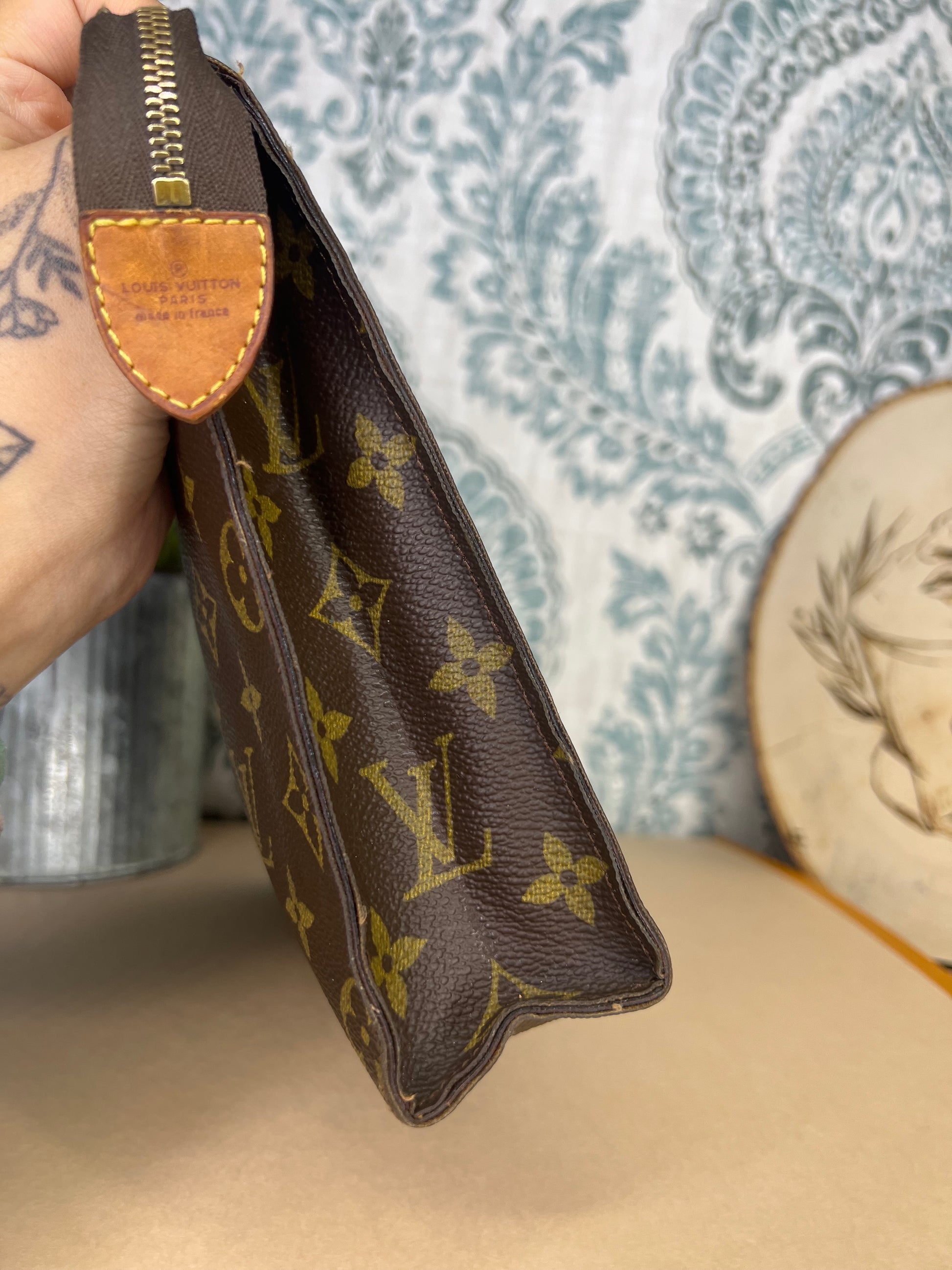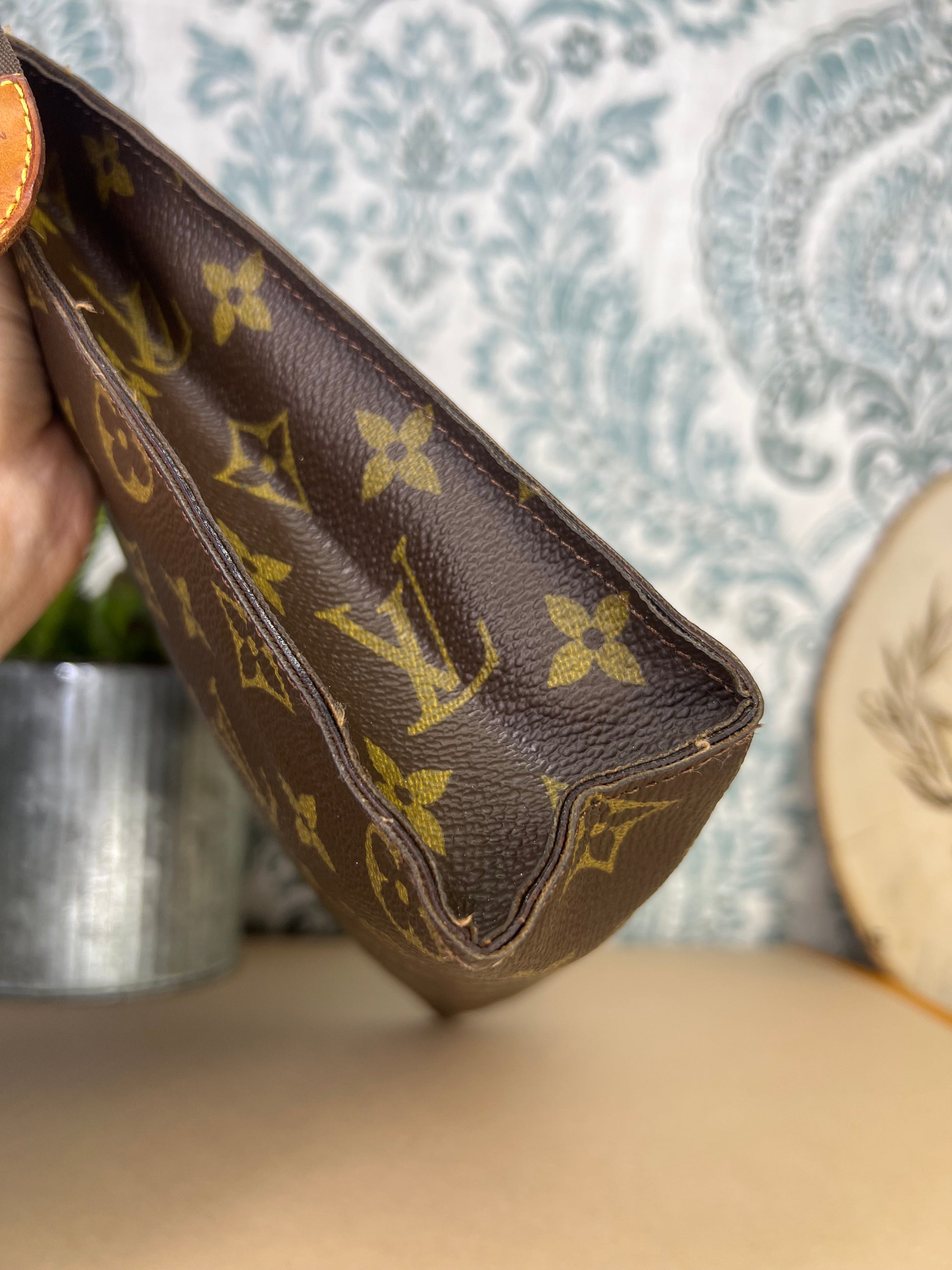 πΈ Canvas has two very small chips on only one side of the pouch. No other canvas wear and itβs in good shape overall. This flaw is shown in the photos with the green circles Monogram is bright and clear through out.