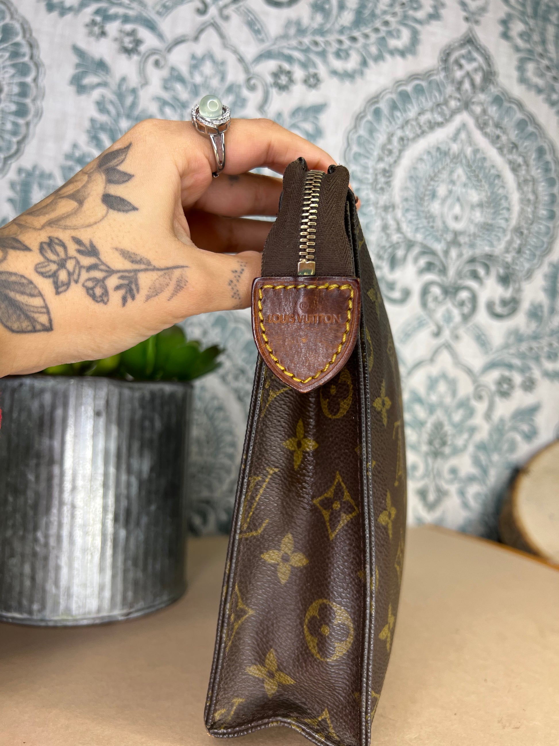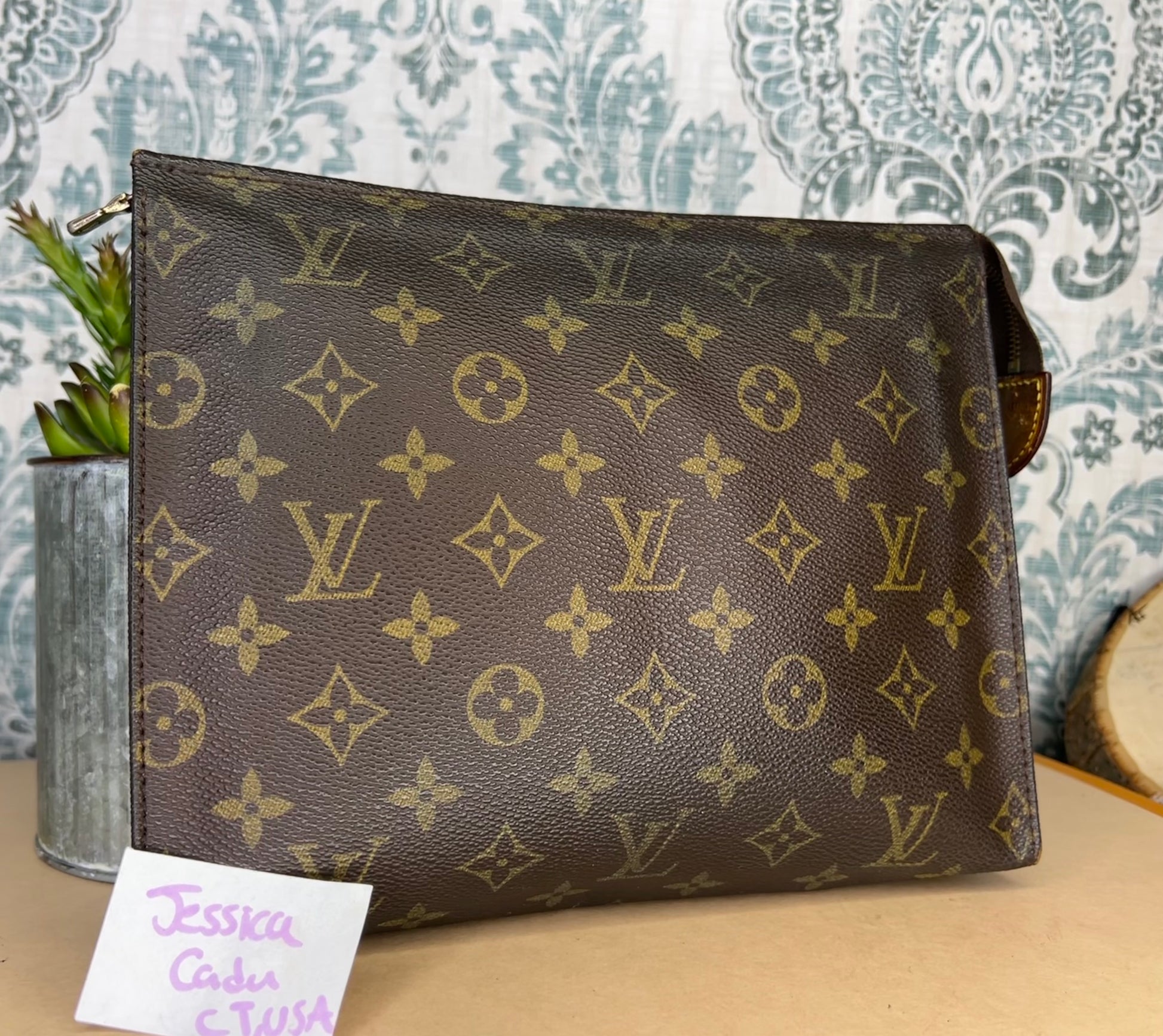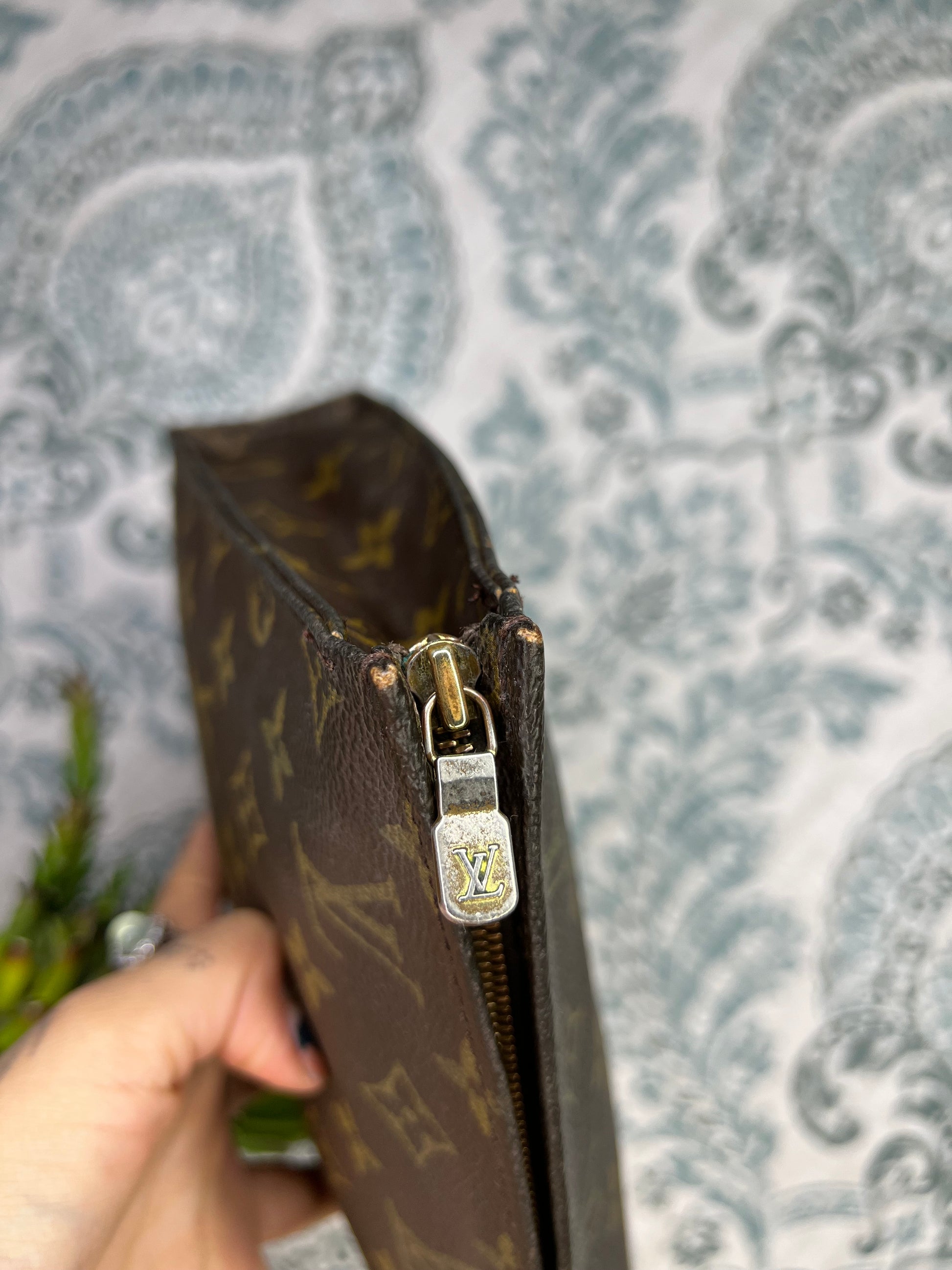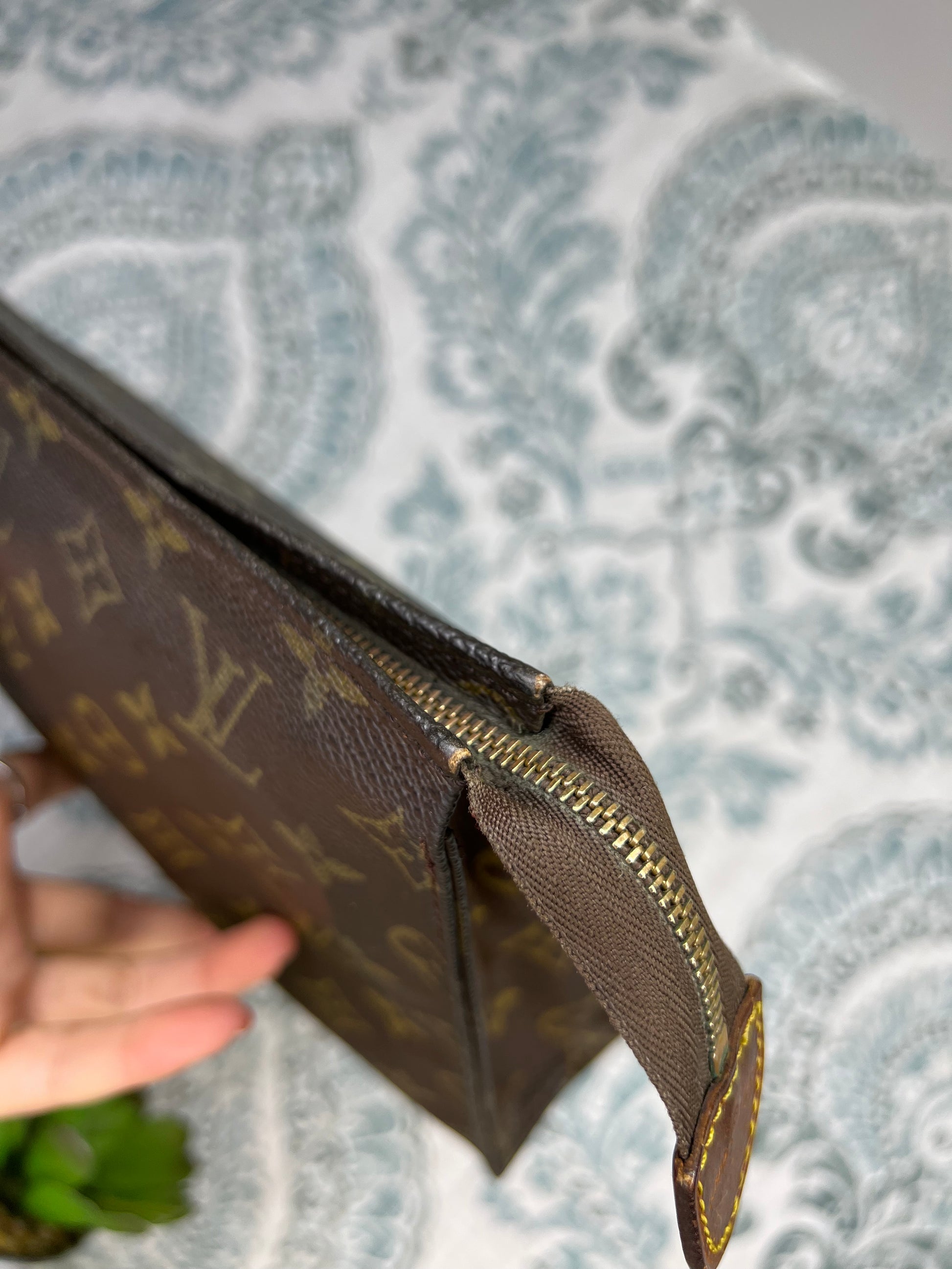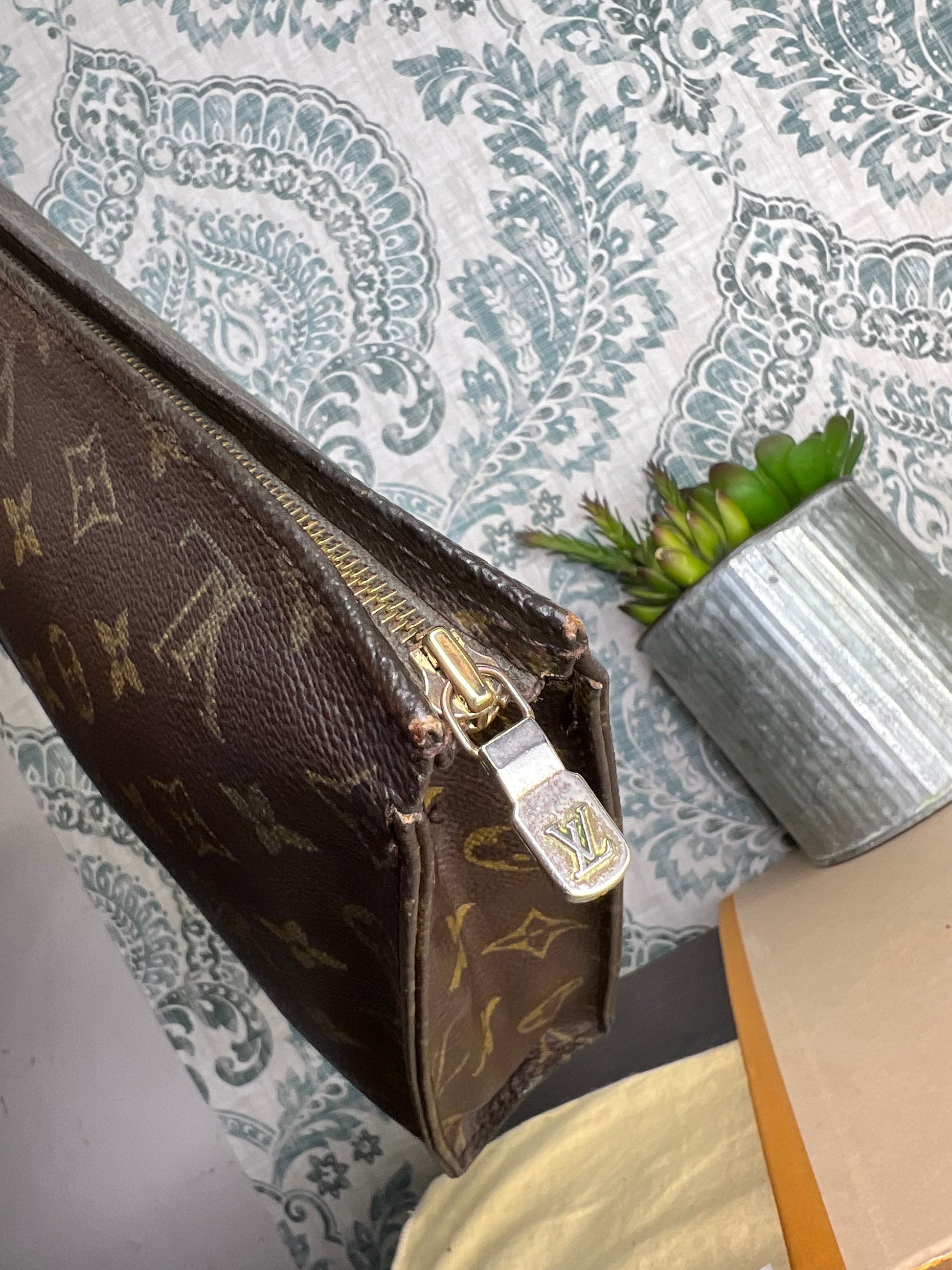 🌸 Canvas has minor cracks hidden at top edge folds of the pouch. There is also canvas wear at base corners. Monogram is faded in some areas