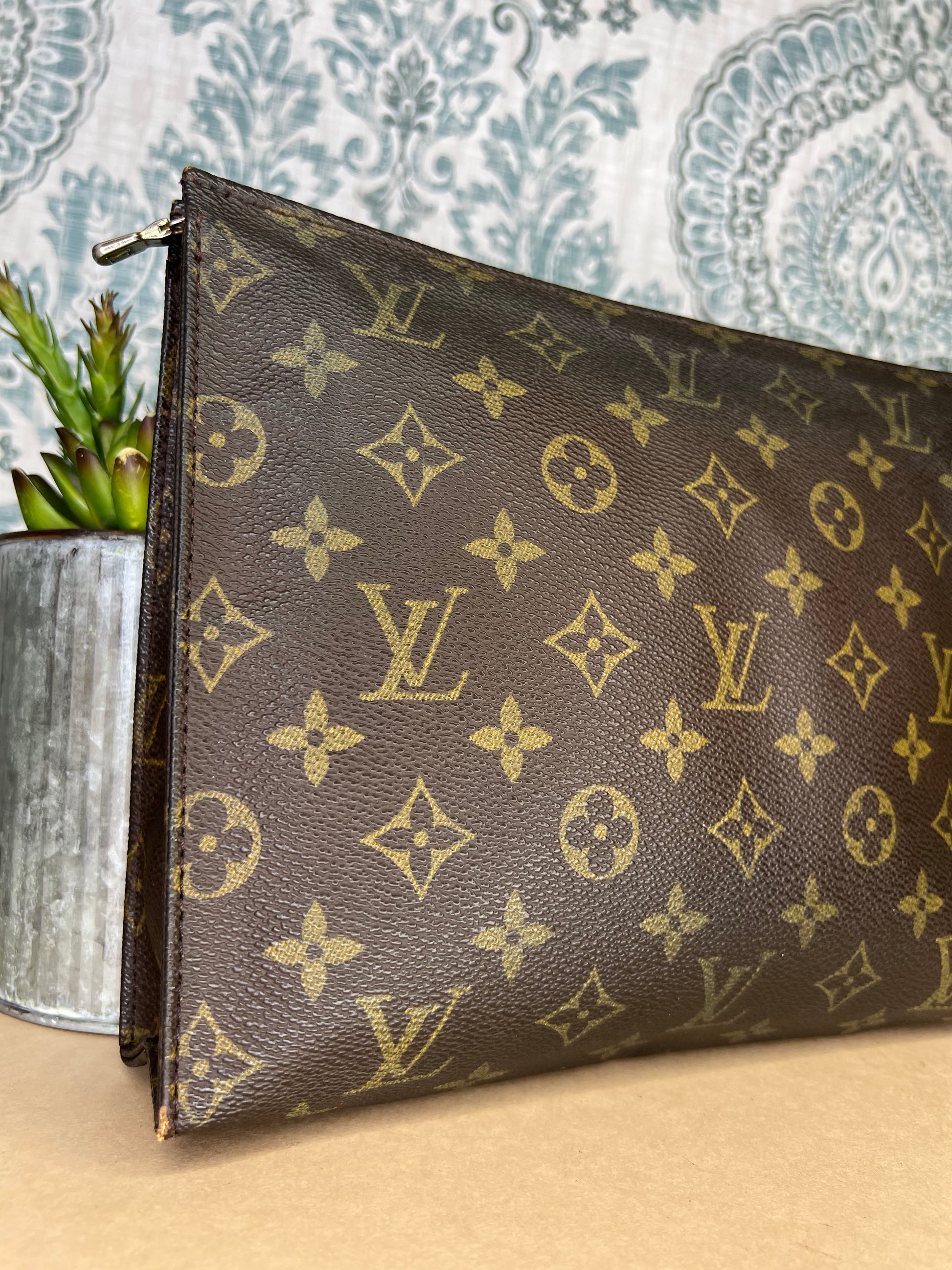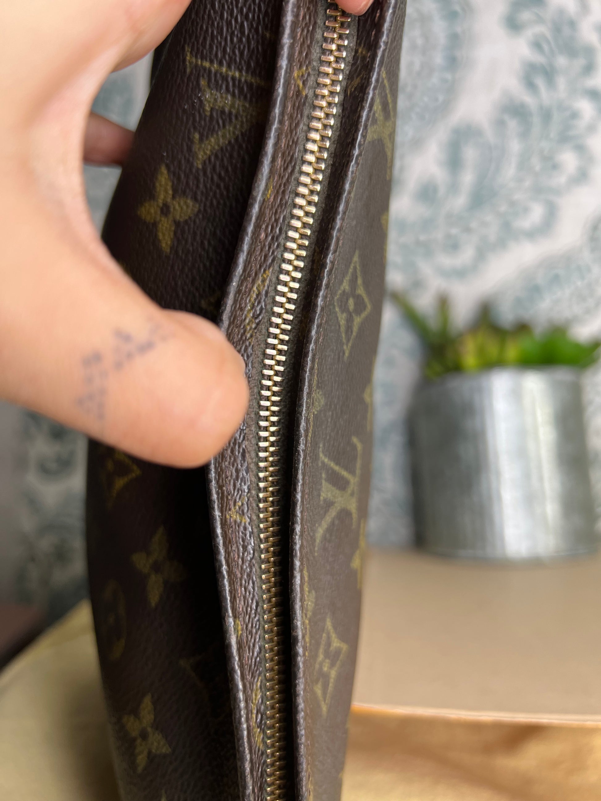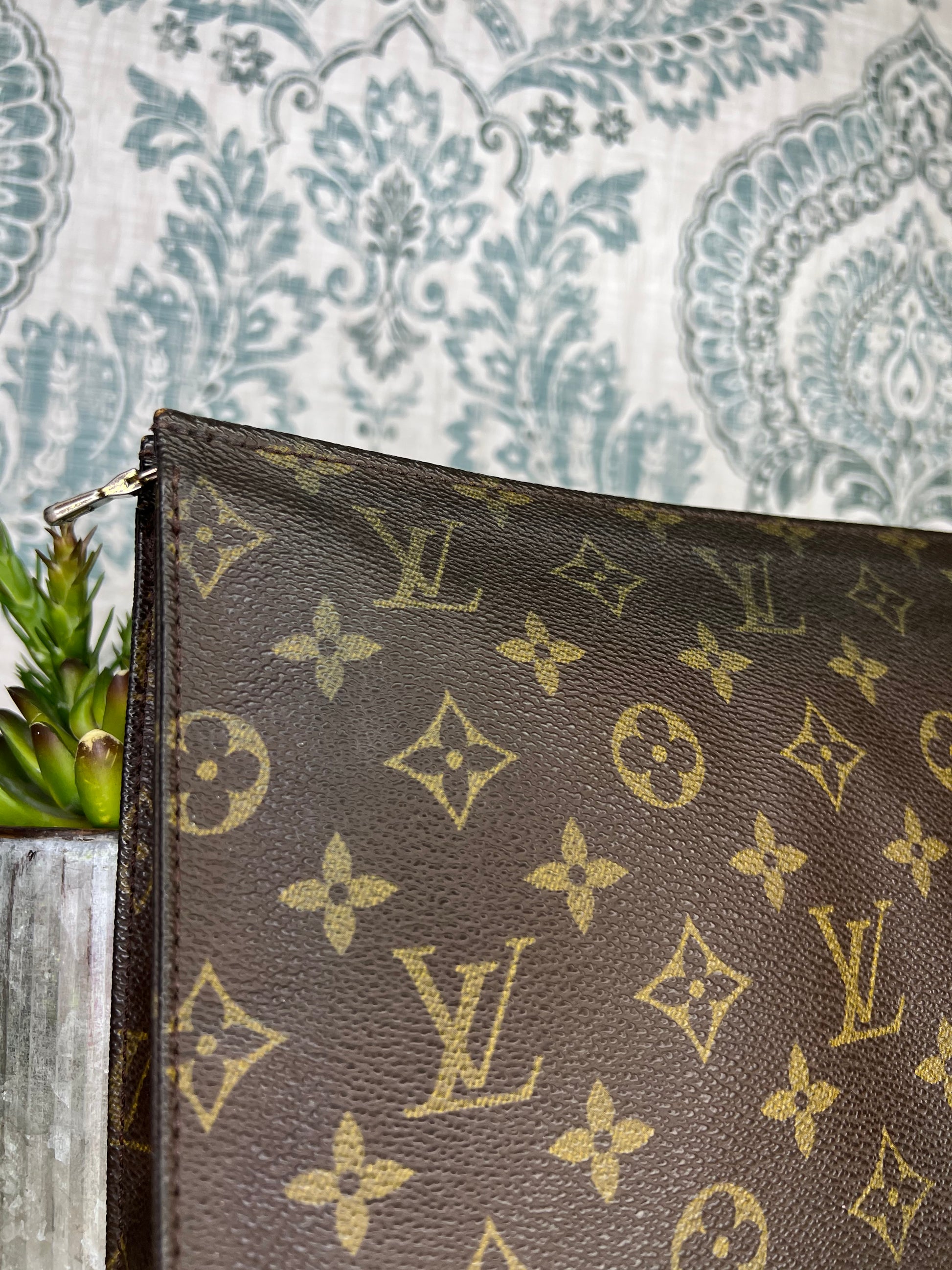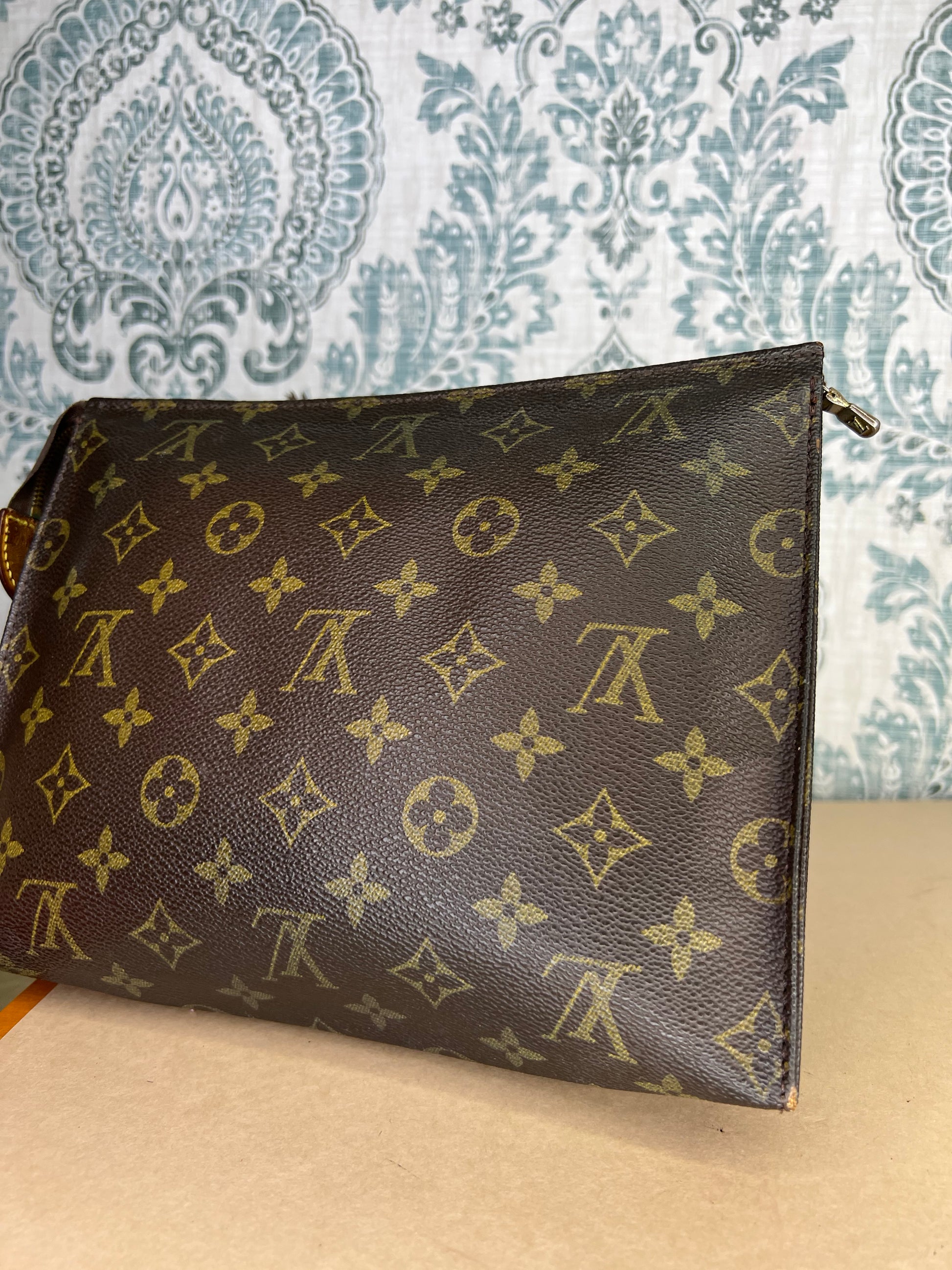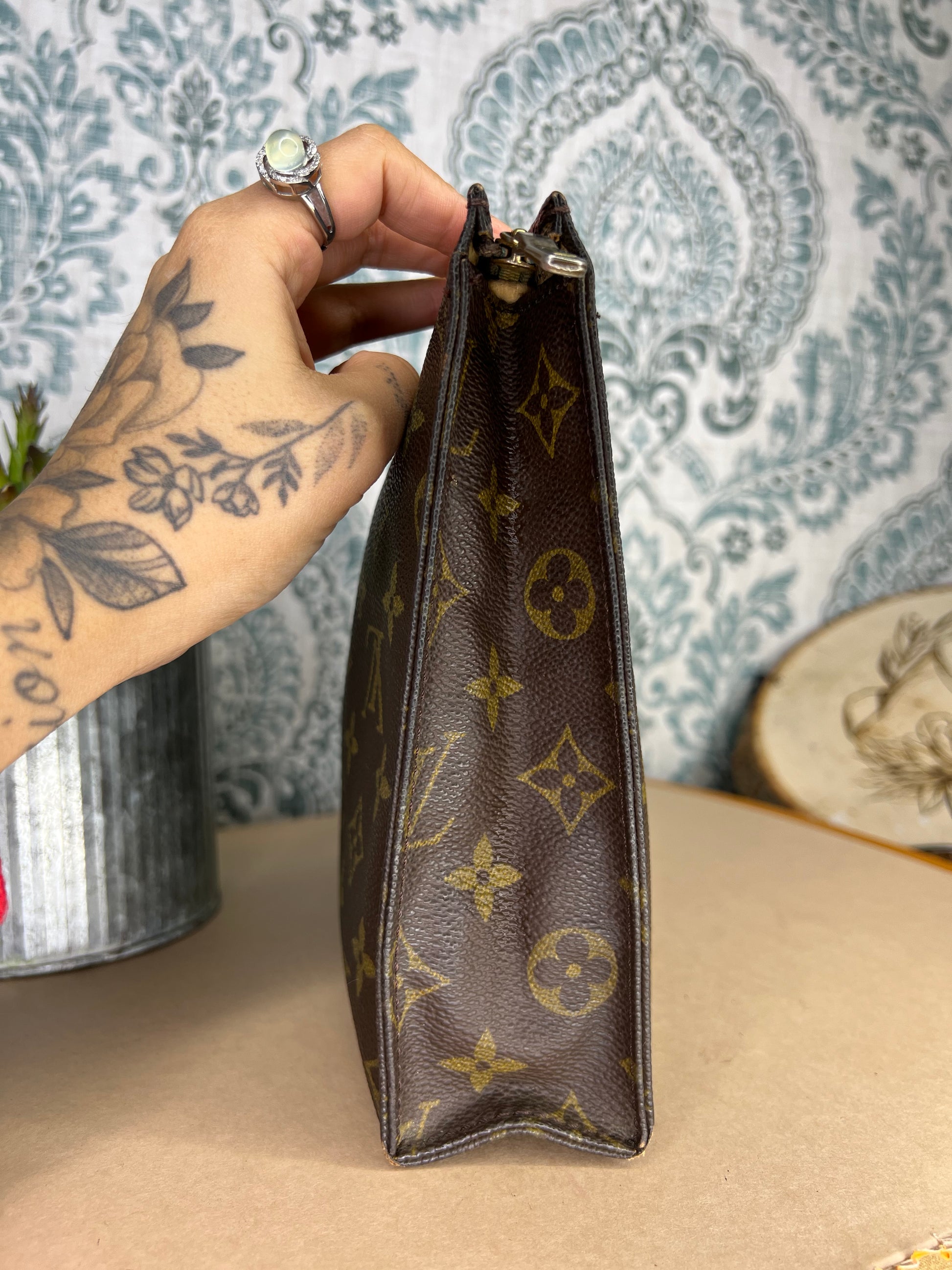 🌸 Canvas has minor cracks hidden at top edge folds of the pouch. There is also canvas wear at base corners. Monogram is faded in some areas