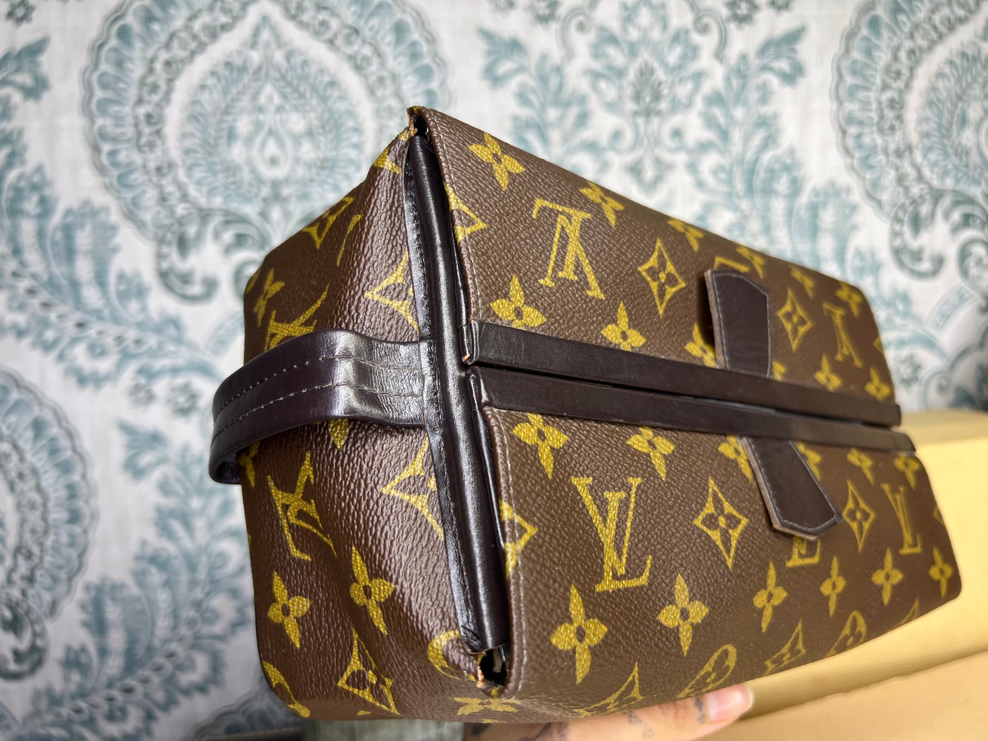 šø In amazing vintage condition. Monogram is in bright and clear through out. Canvas only has a very minuscule amount of wear at top corners and this is shown in photos with green circles. Leather has scuffs and minor wrinkles, but no serious issues at all. The case opens and closes well
