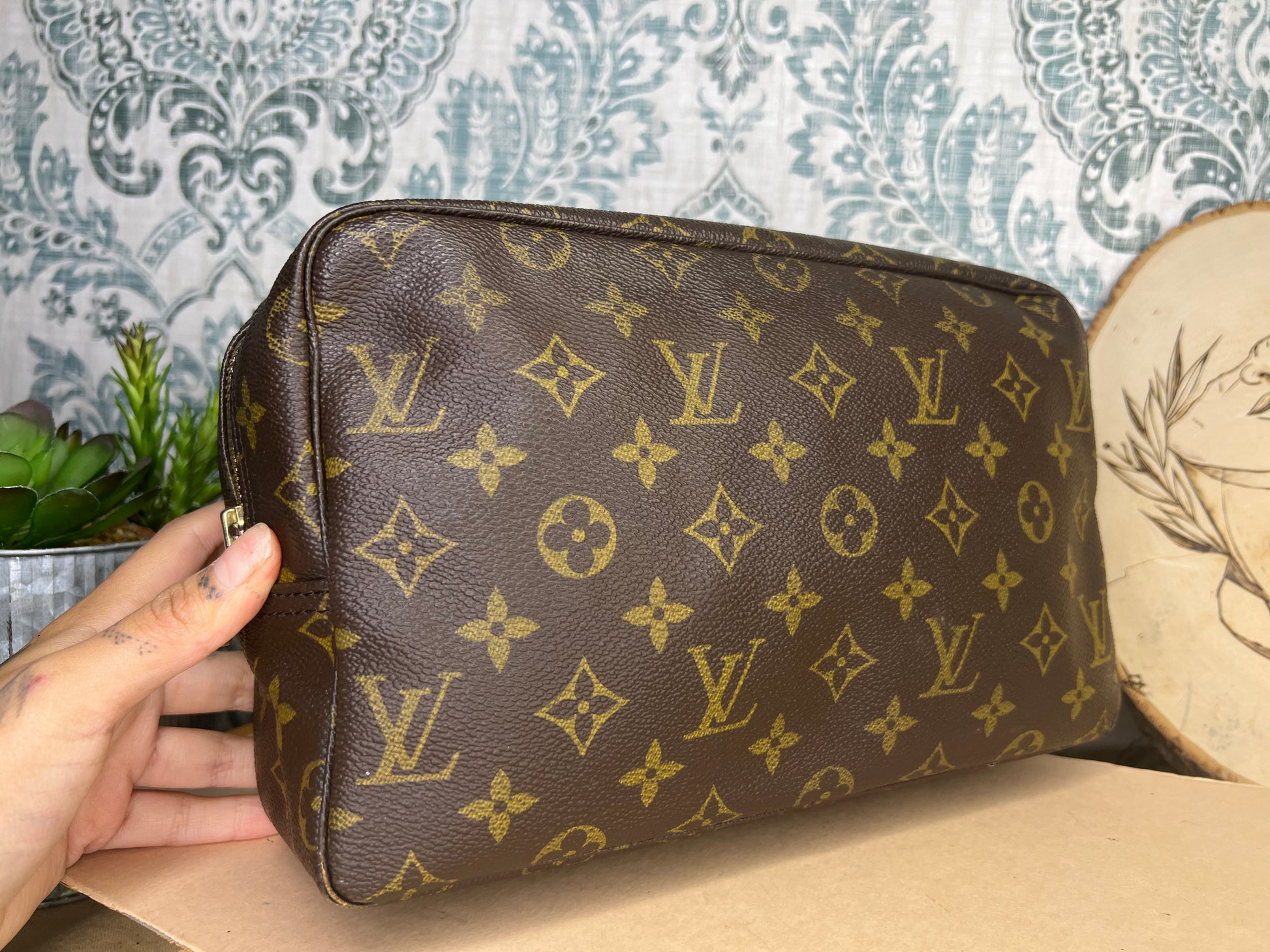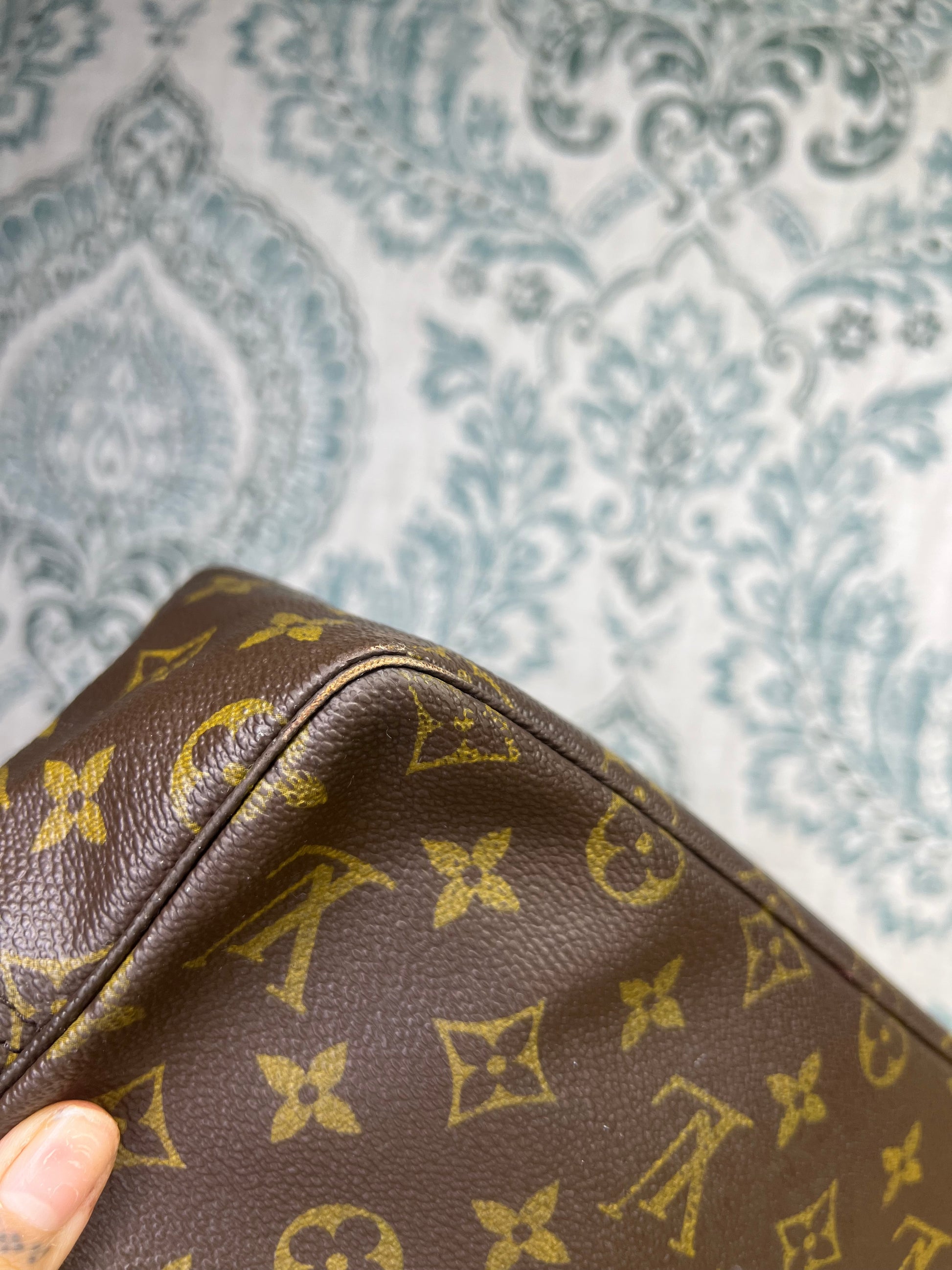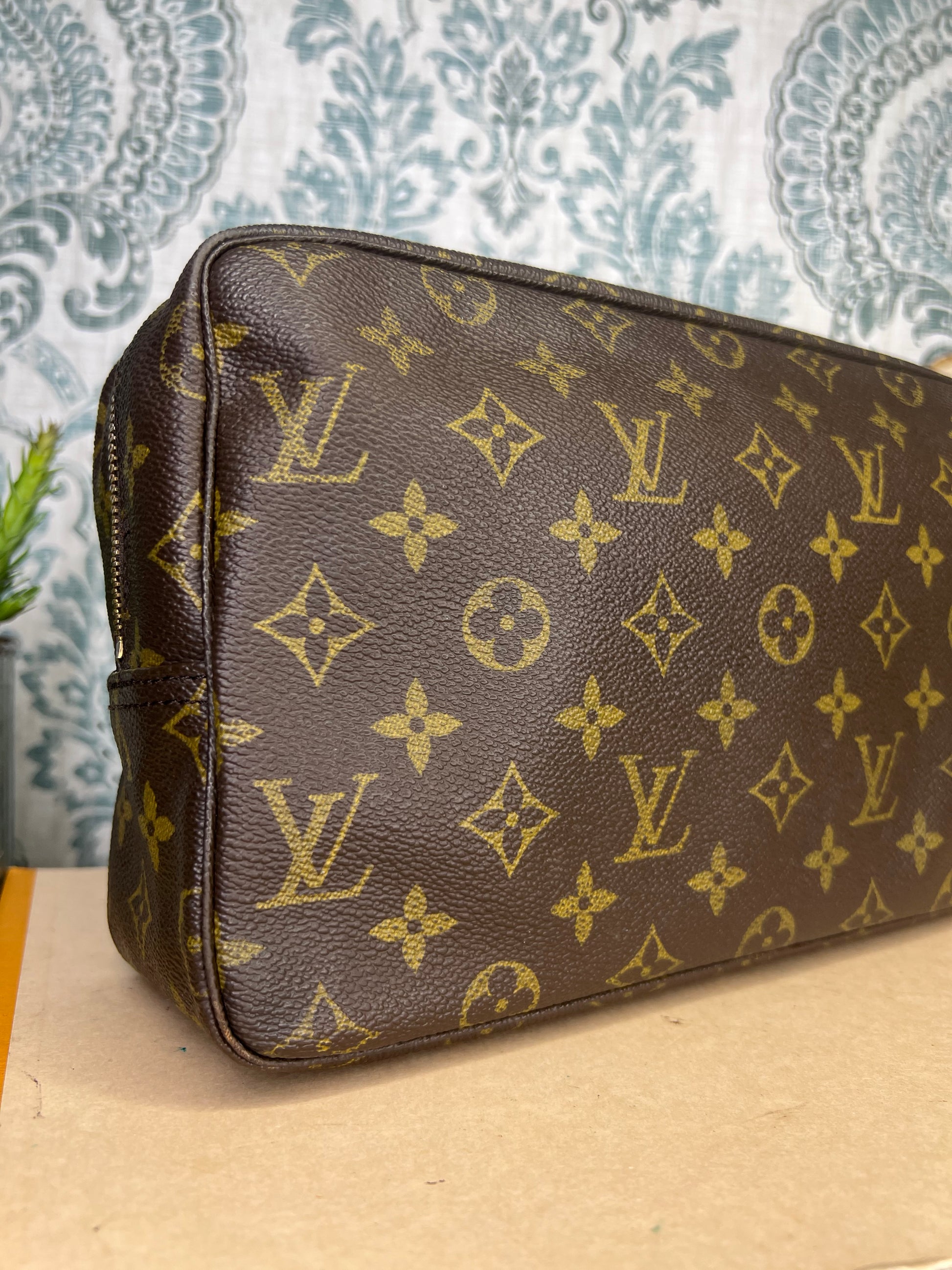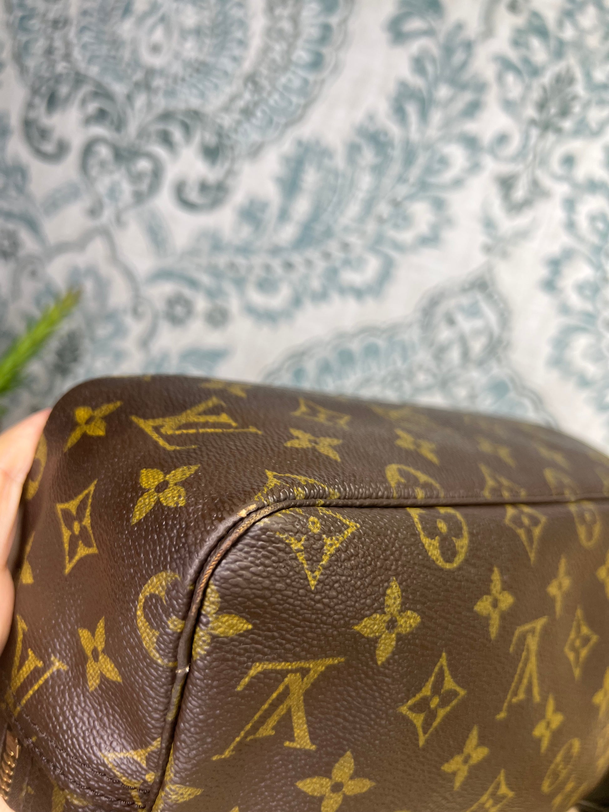 πΈ Canvas is free from any major damage. There is only a small amount of canvas chipping at corners. Monogram does have a bit of fading towards the top of the pouch, but itβs overall clear.