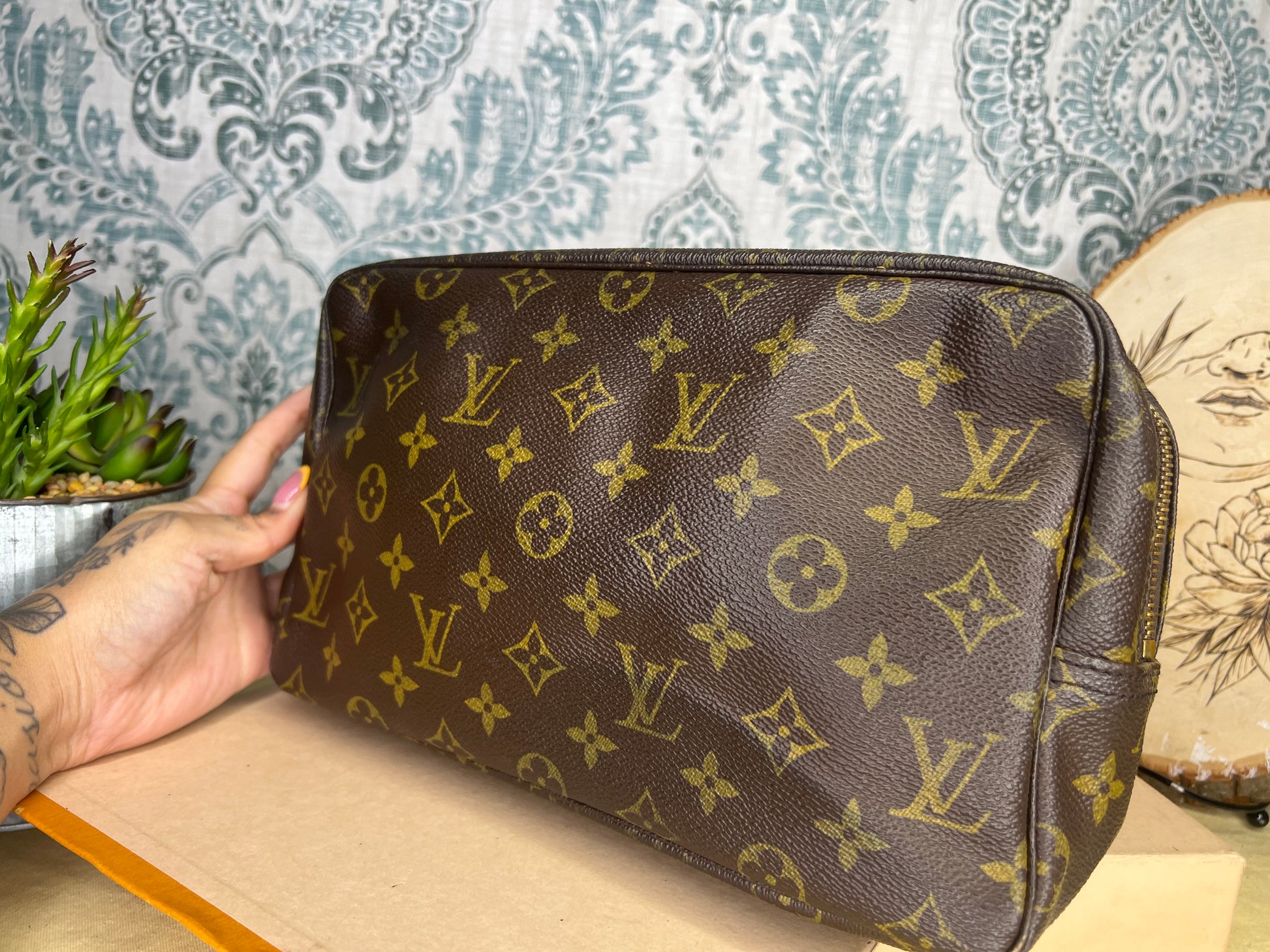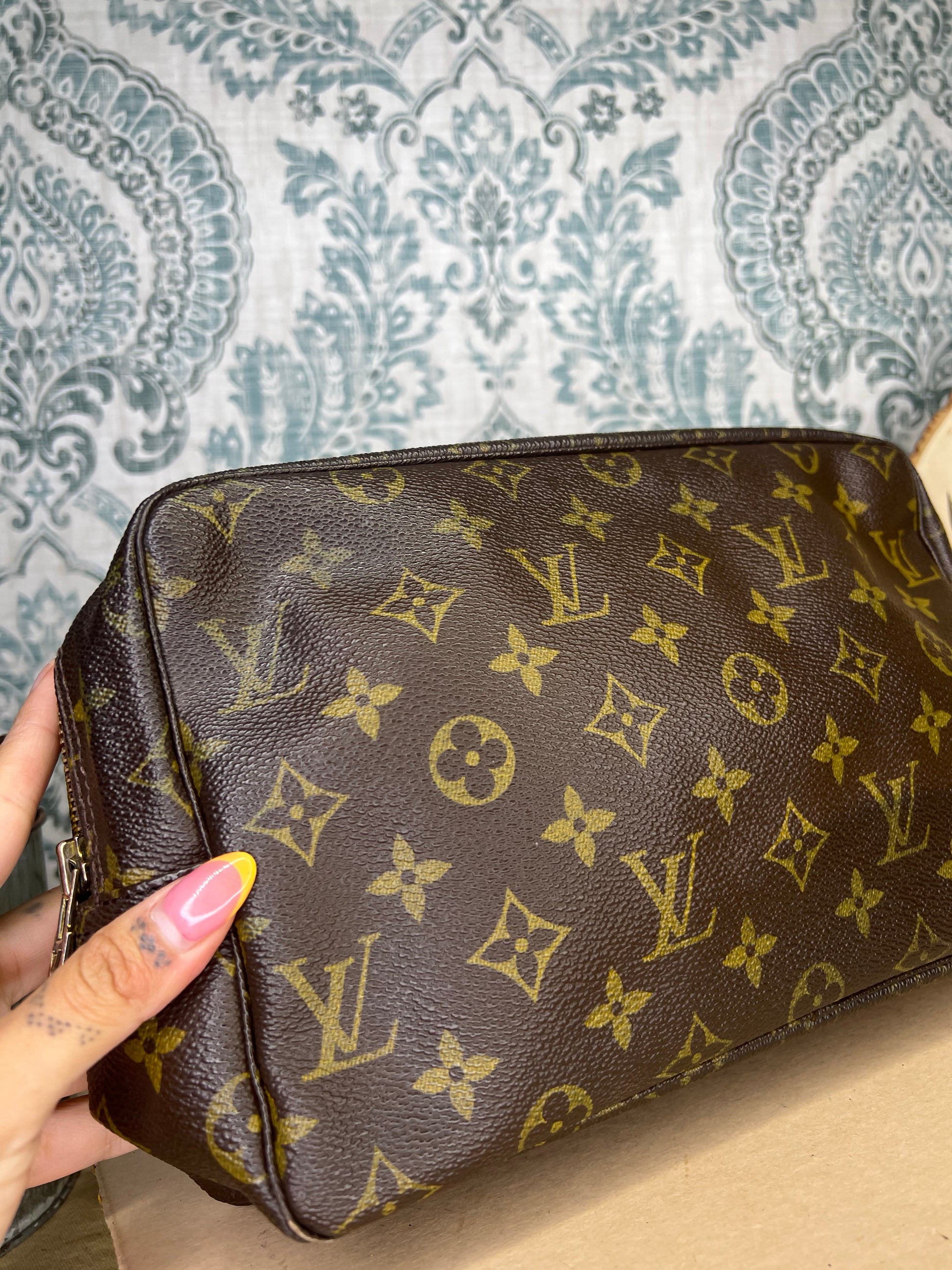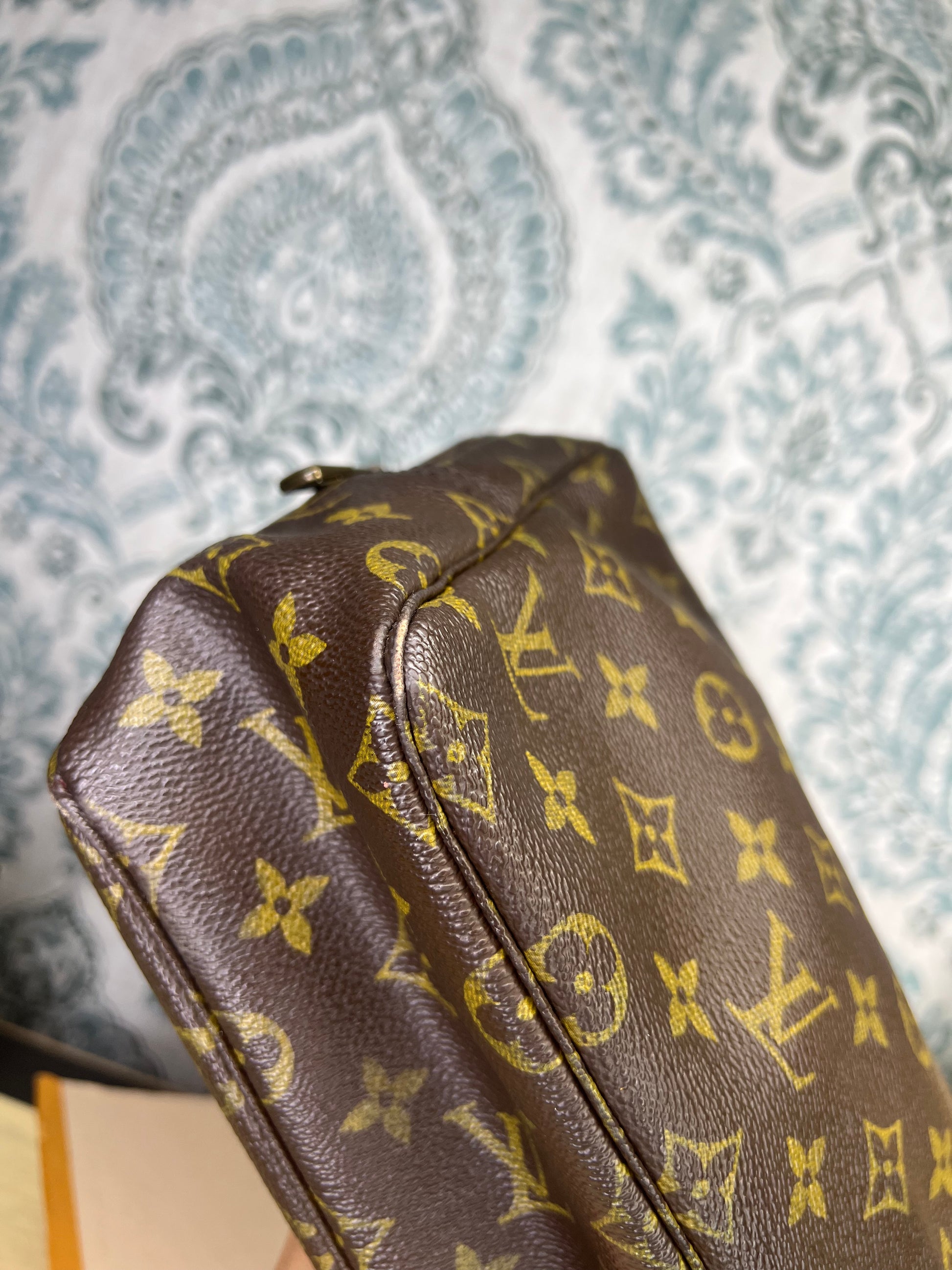 ๐ธ Canvas is free from any major damage. There is only a small amount of canvas chipping at corners. Monogram does have a bit of fading, but itโs overall clear. Thereโs also a very faint black stain on canvas, super hard to see so it was hard for my camera to capture. It is shown in the photo with green circle