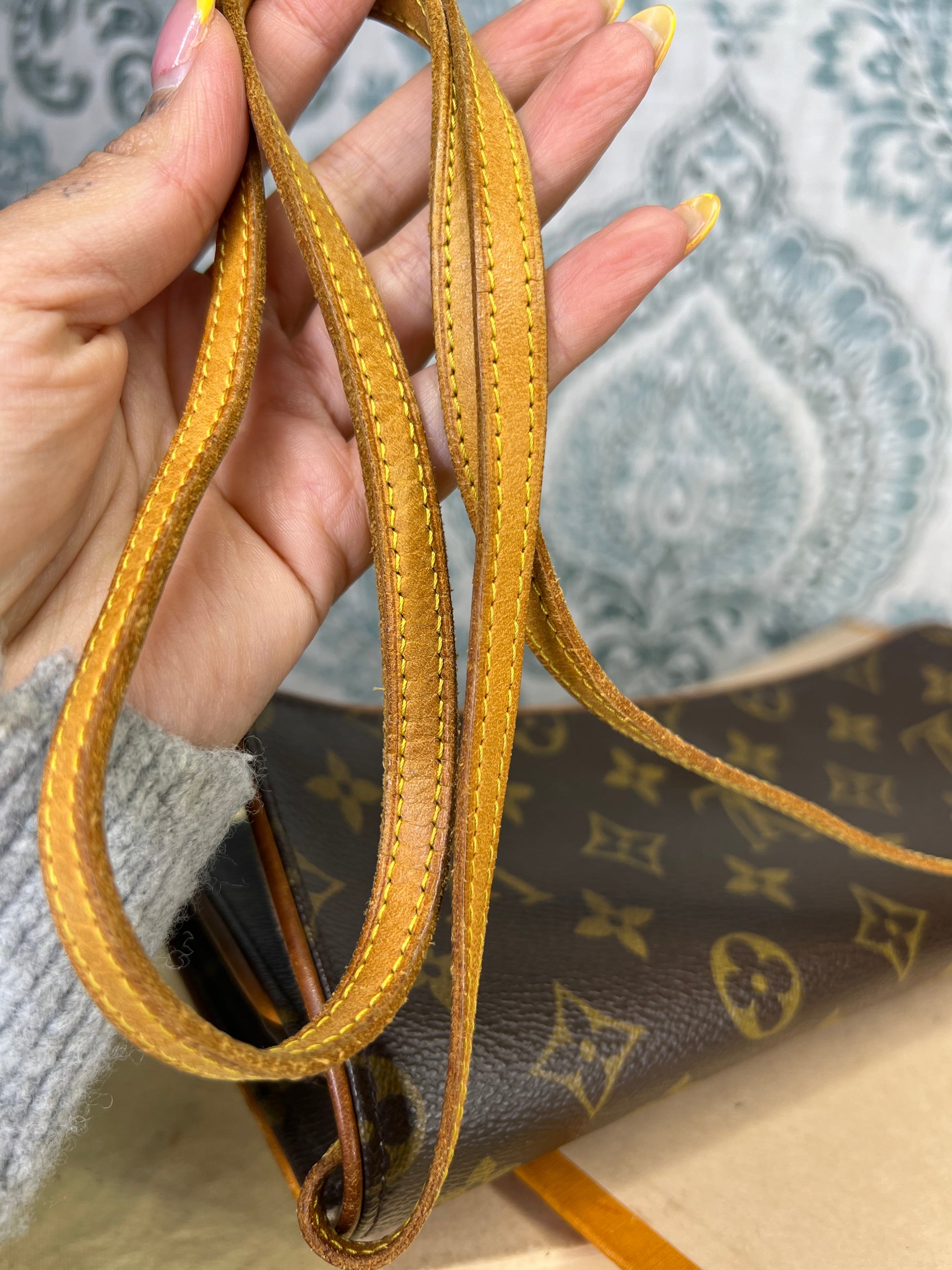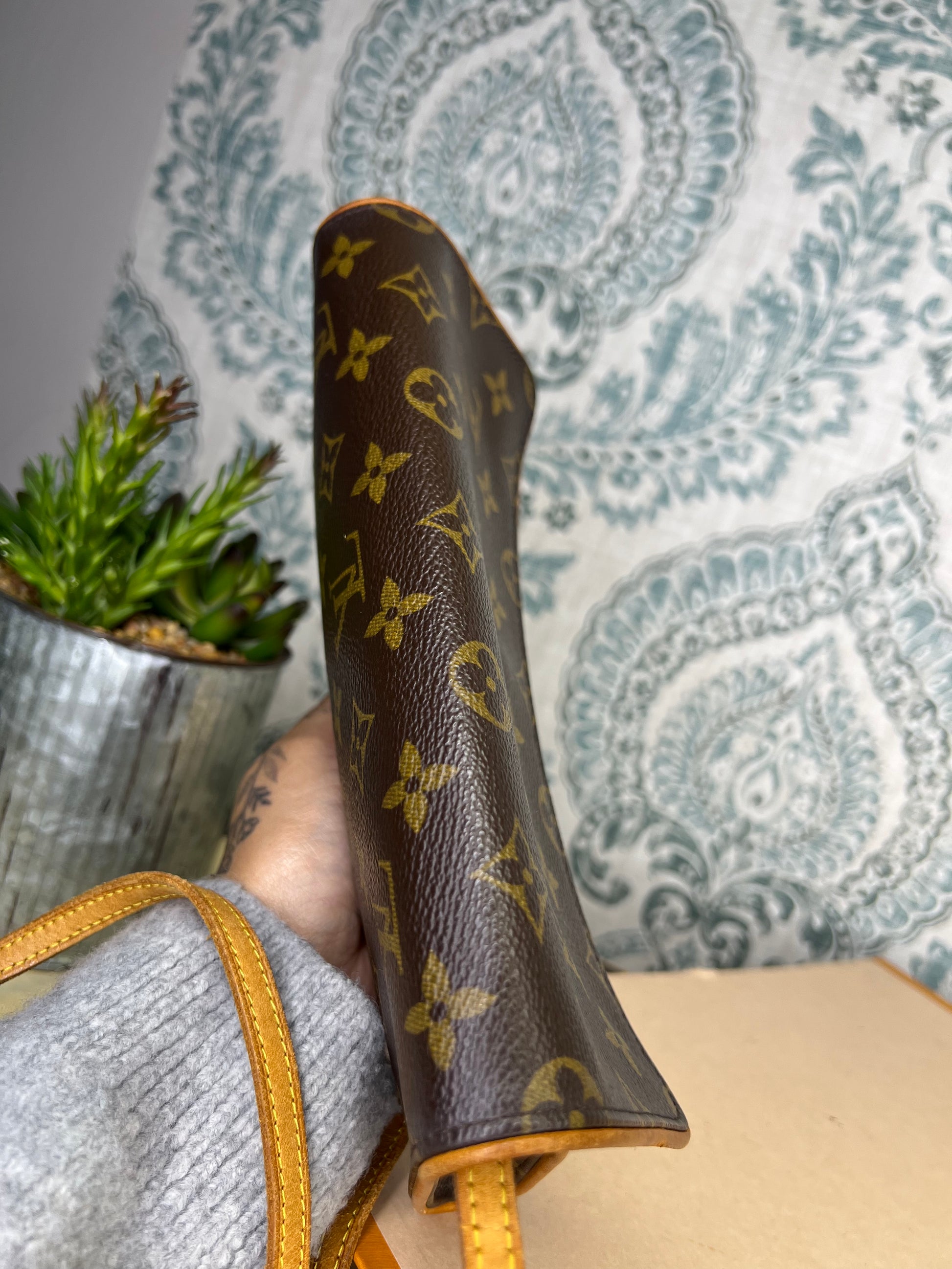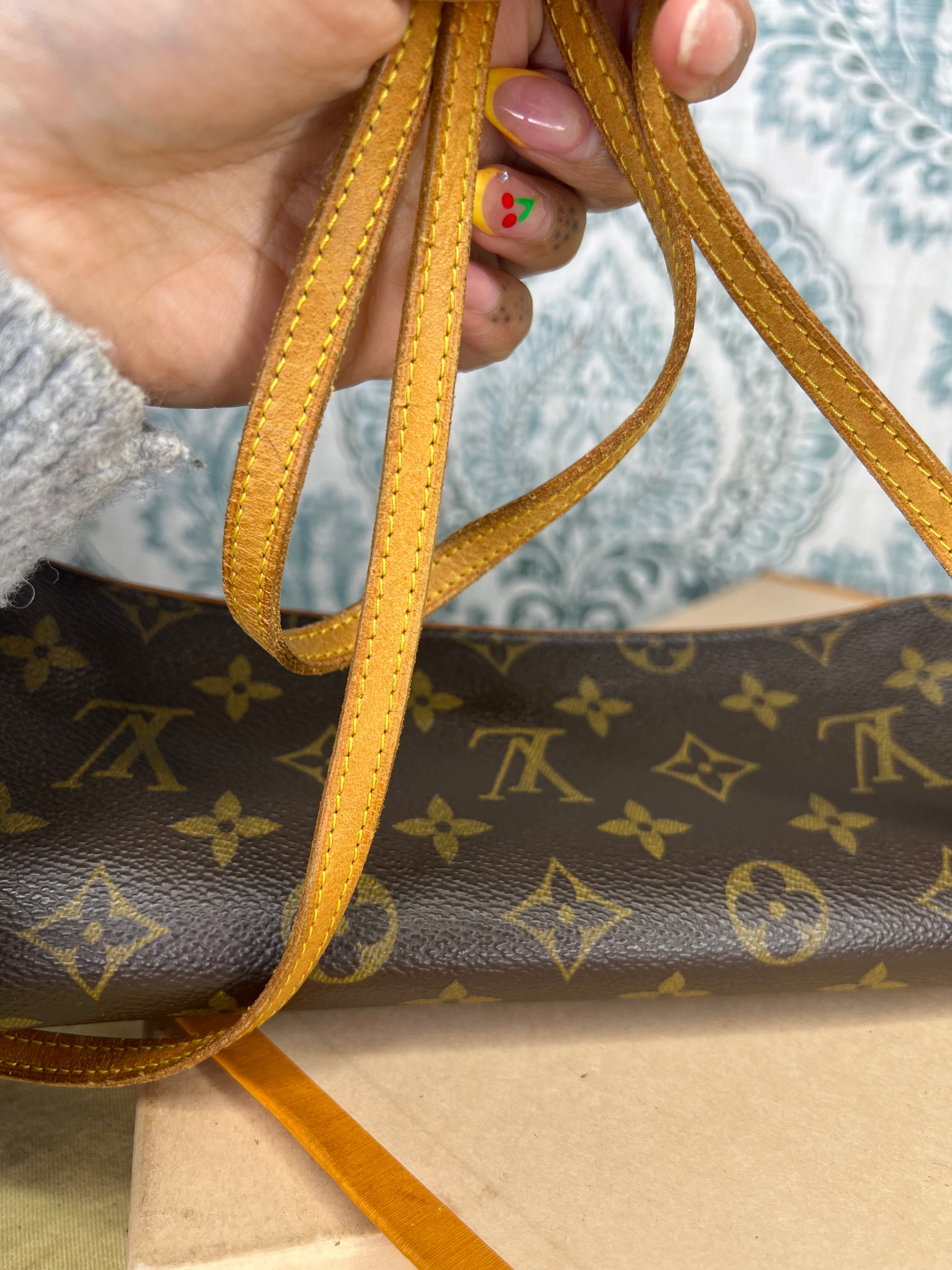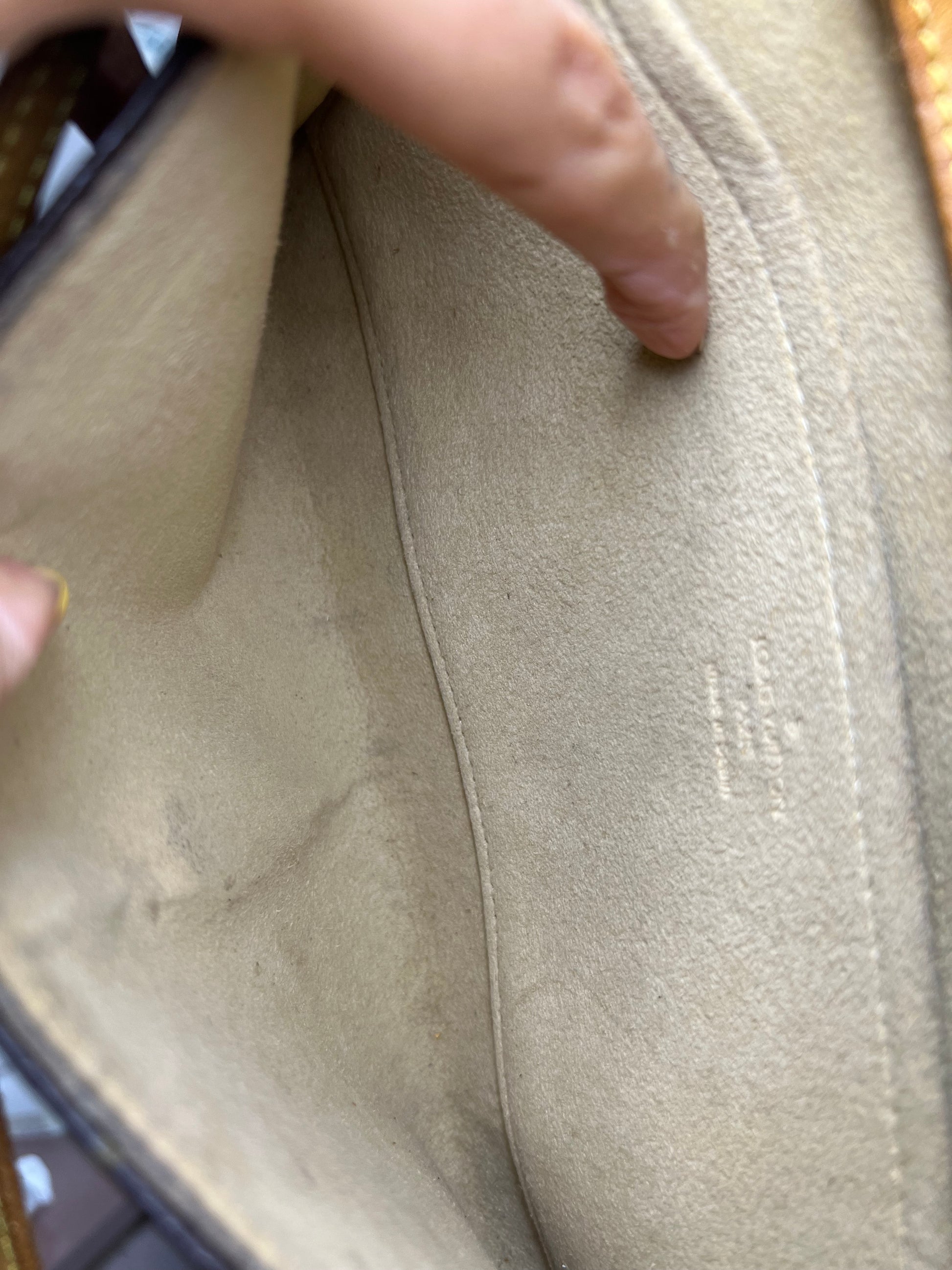 🌸 Monogram is bright and clear with no faded areas. There are no canvas cracks. Front flap curls up slightly at each corner