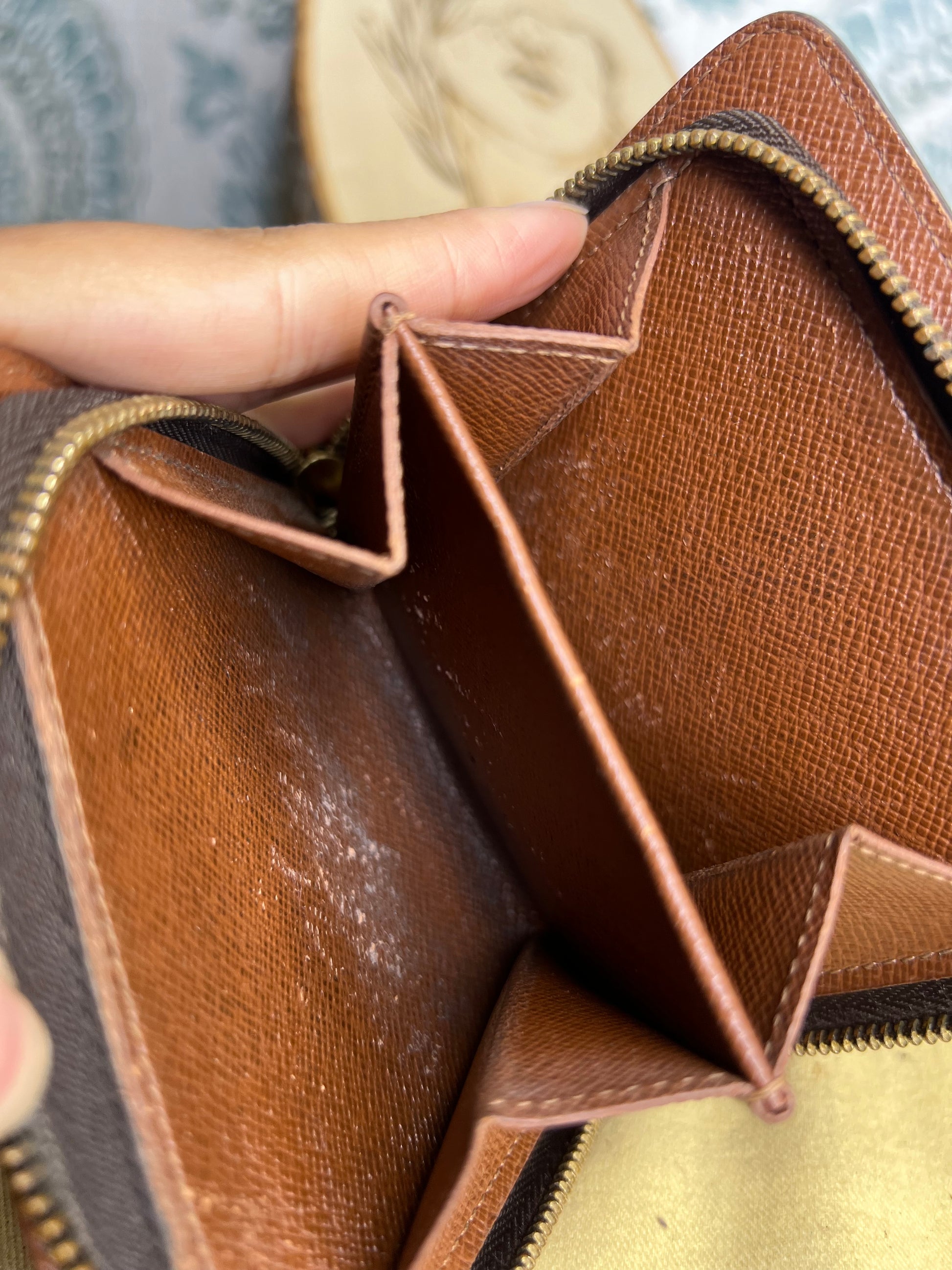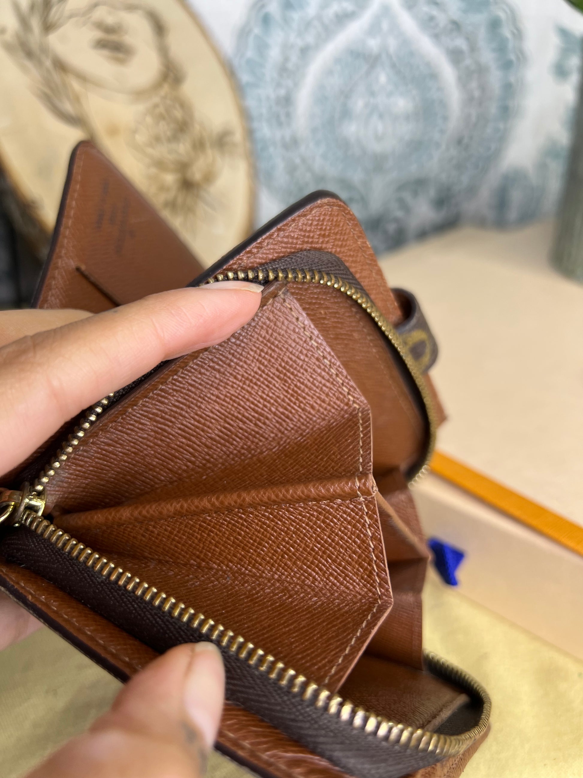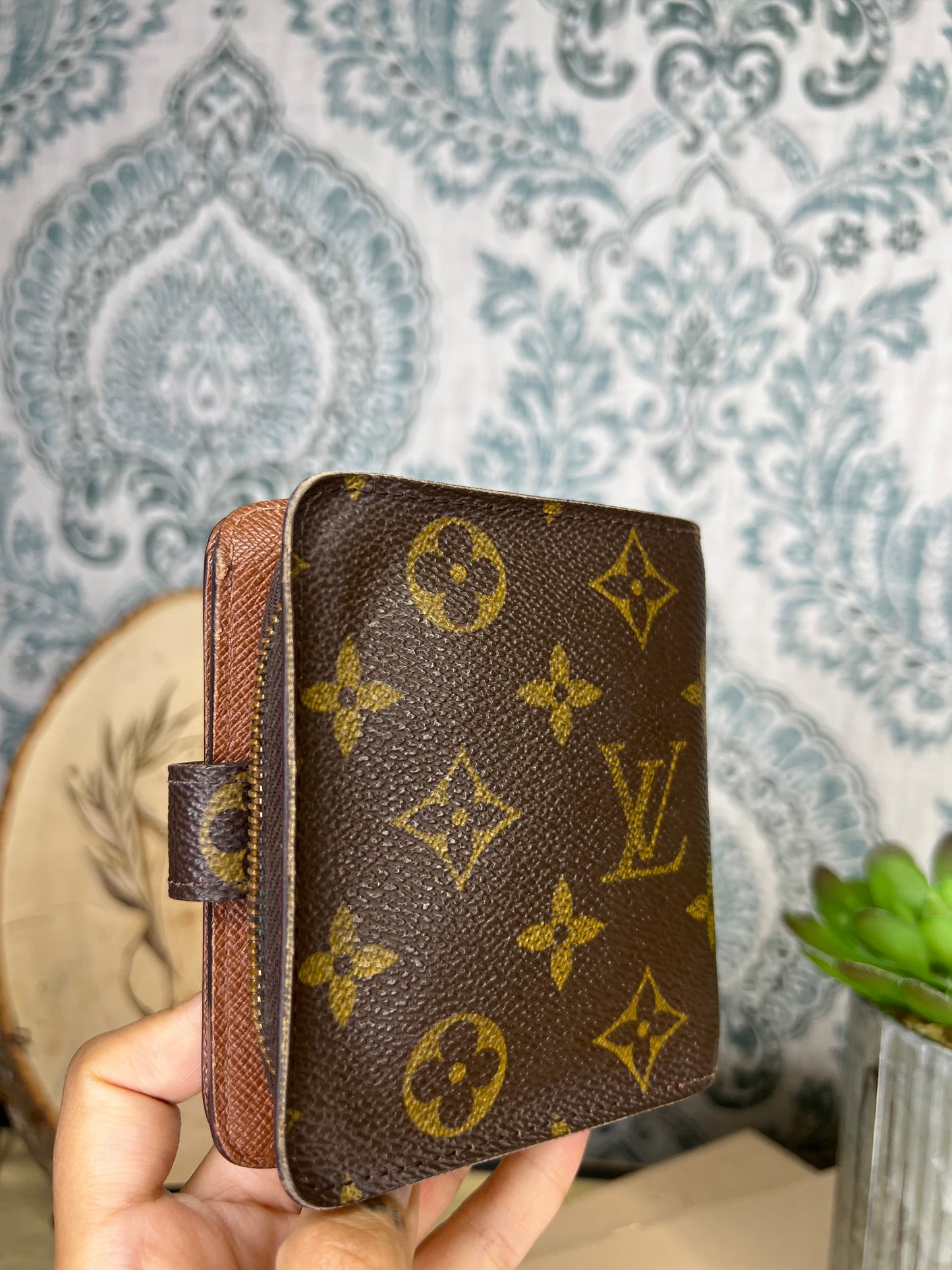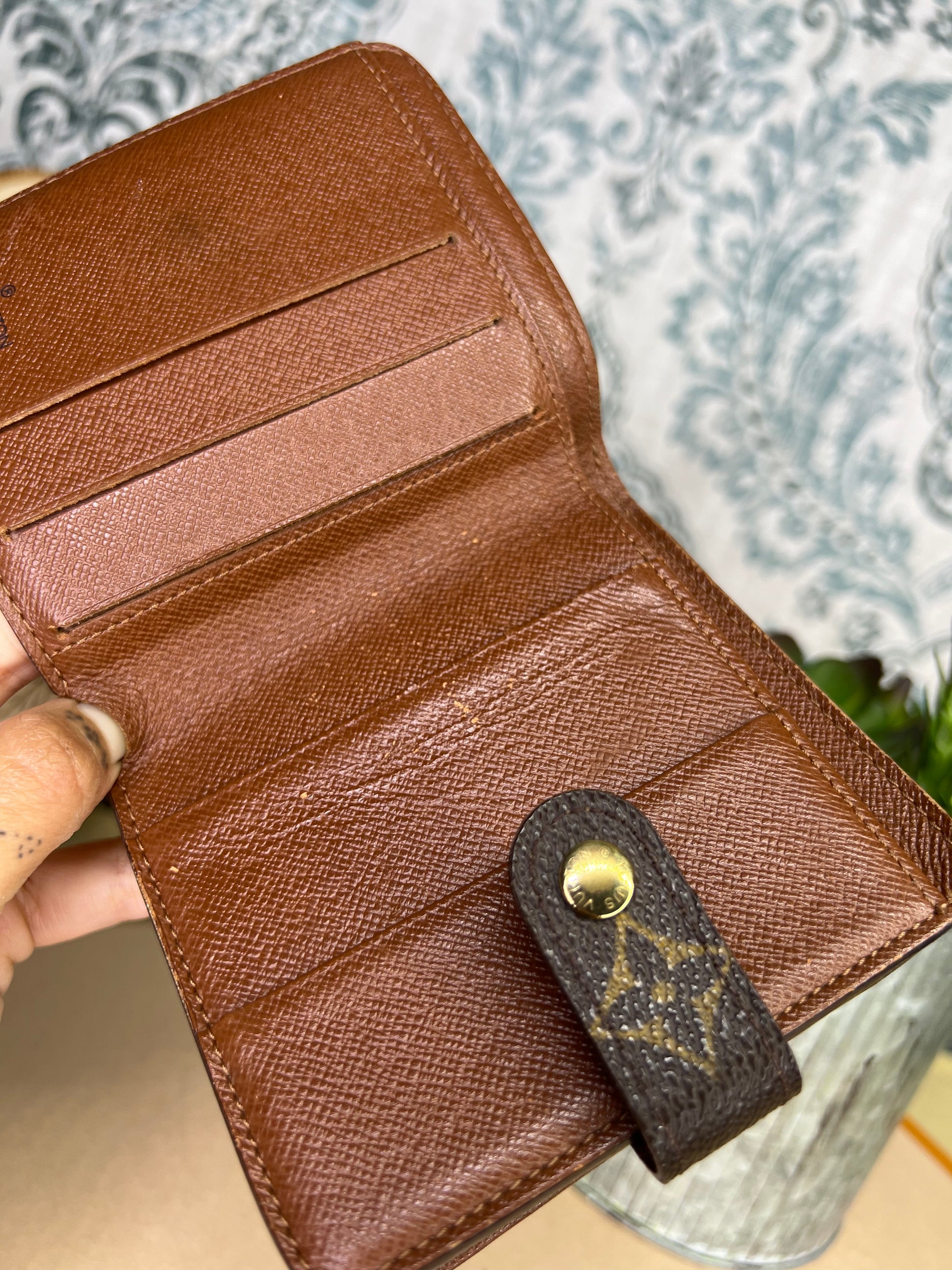 šø Canvas has very minor hairline cracking at edge of the wallet. No major canvas damage. Monogram has speckled fading, but overall clear