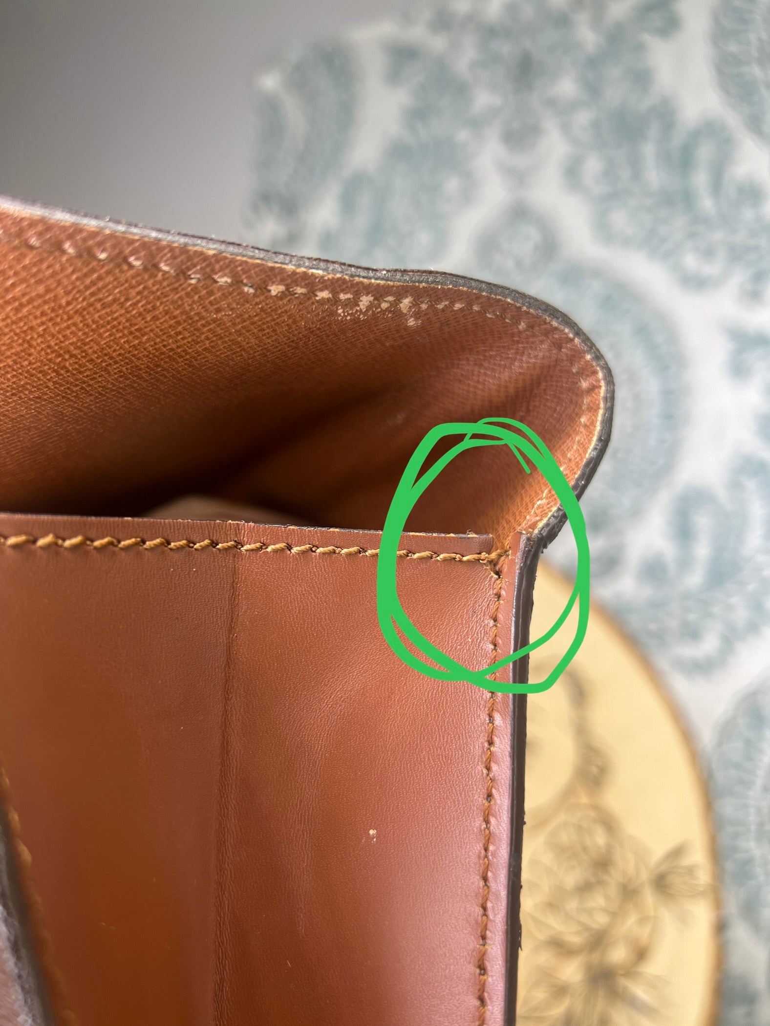 πΈ Very minor rip at the interior top edge of the bag, shown in photo with green circle