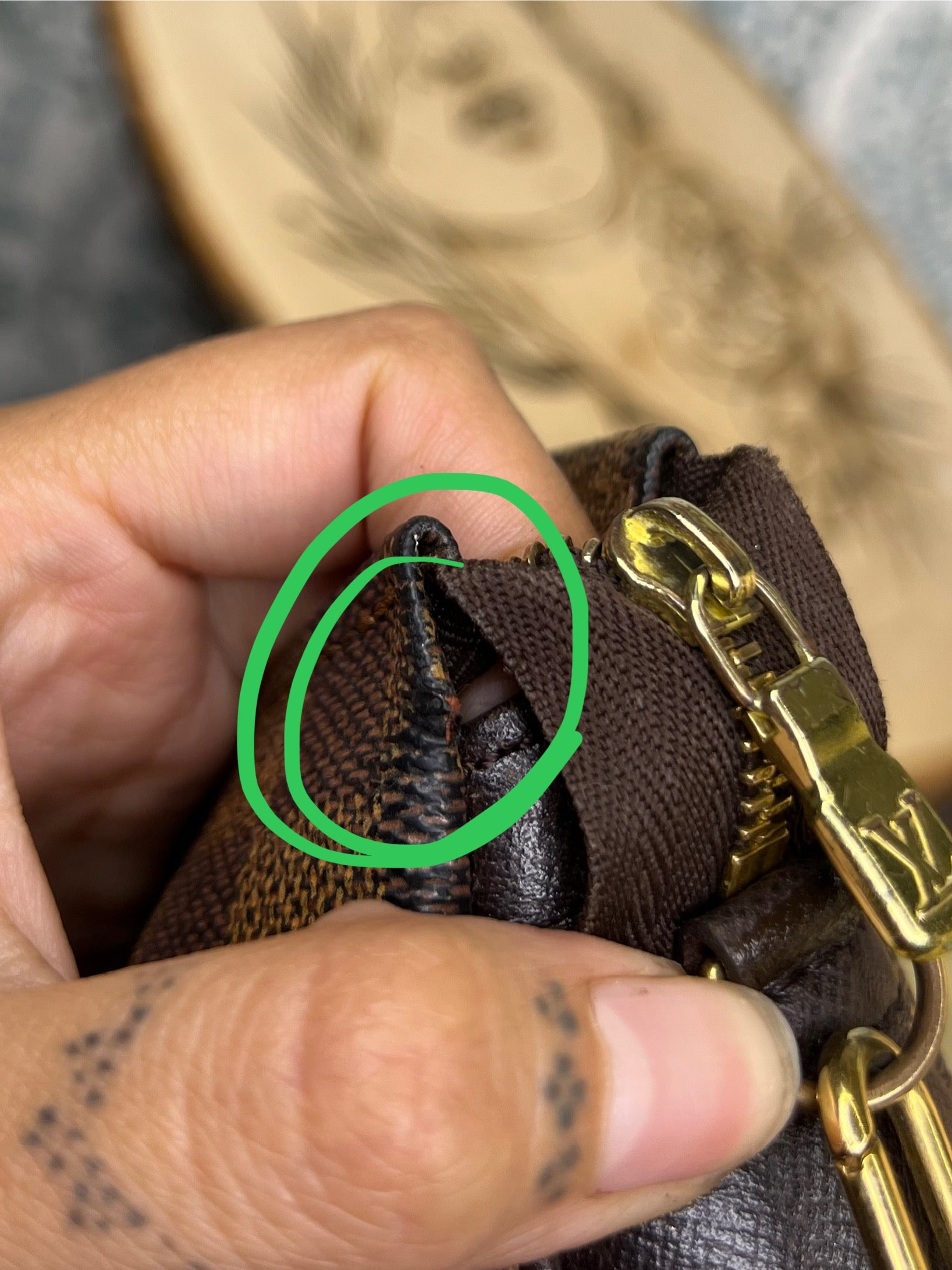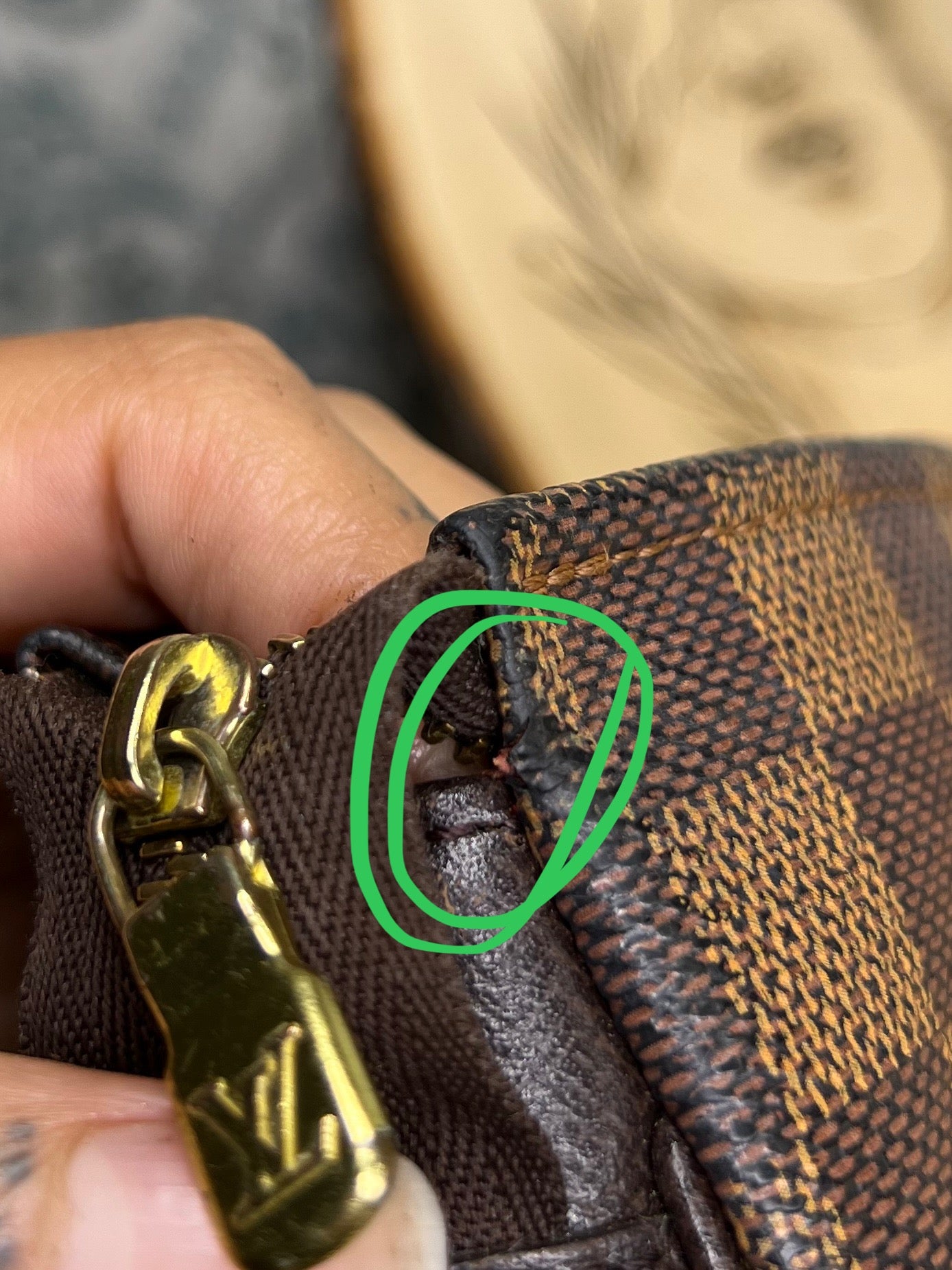 ๐ธ There is canvas wear at top edge corners of the pouch, shown in photos with green circle