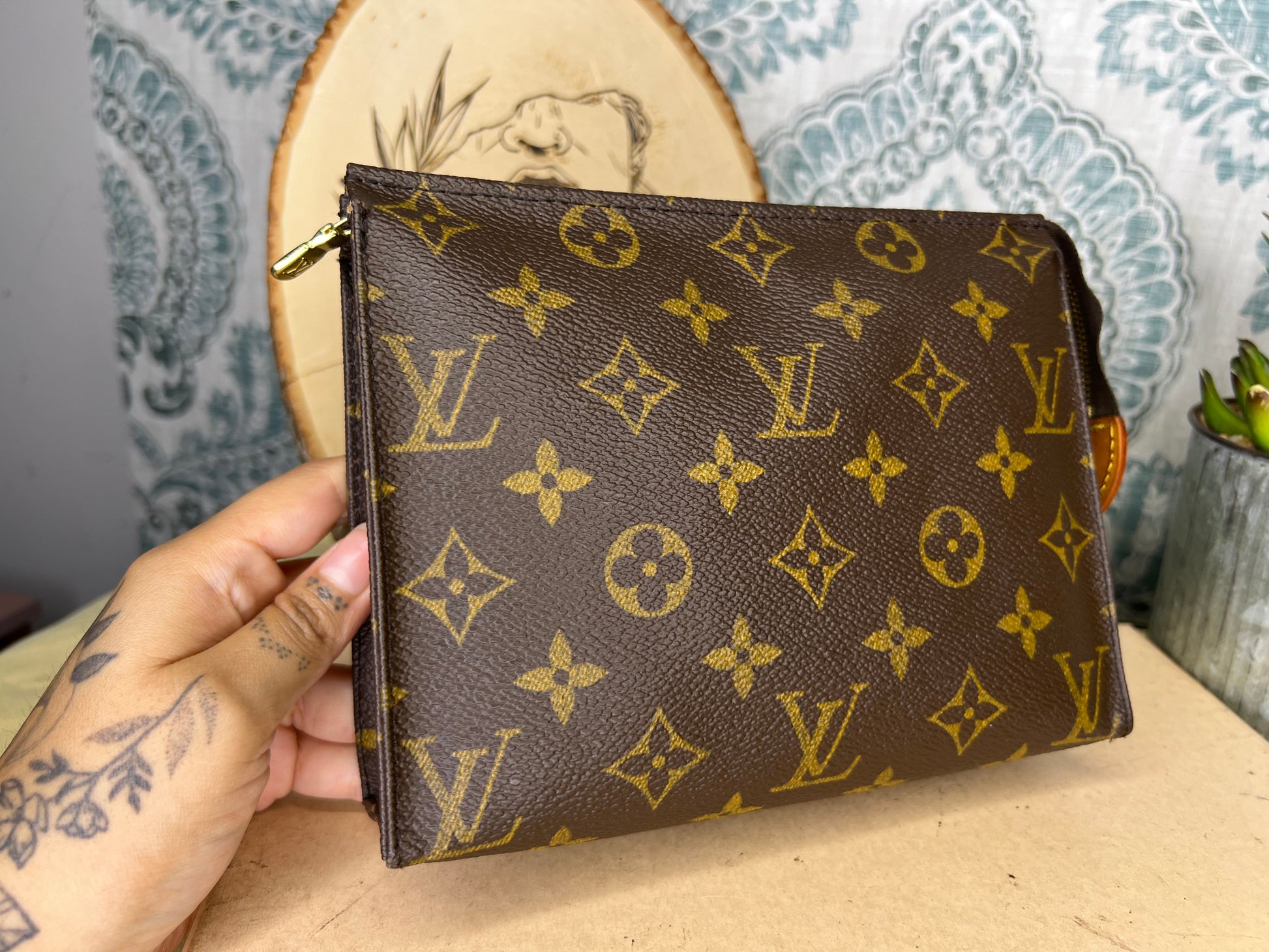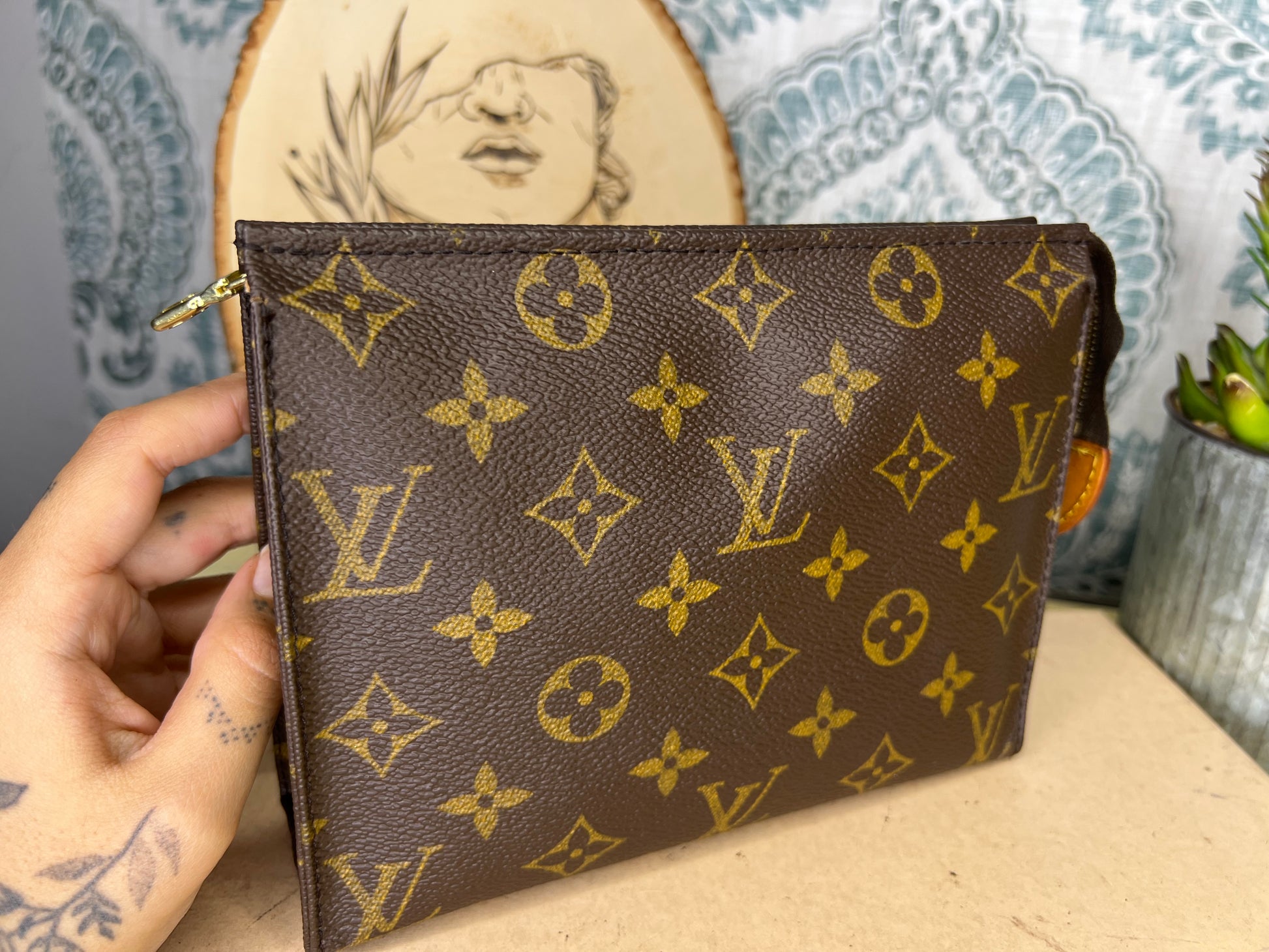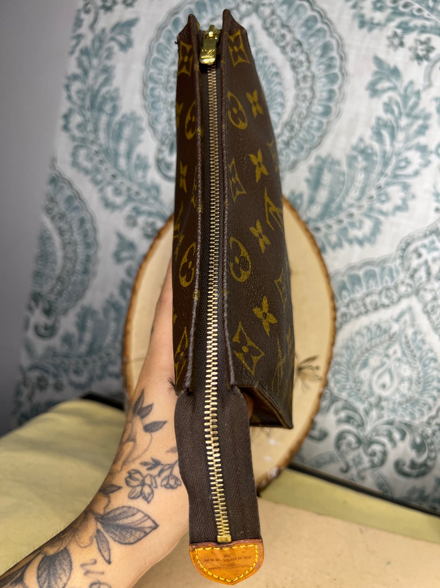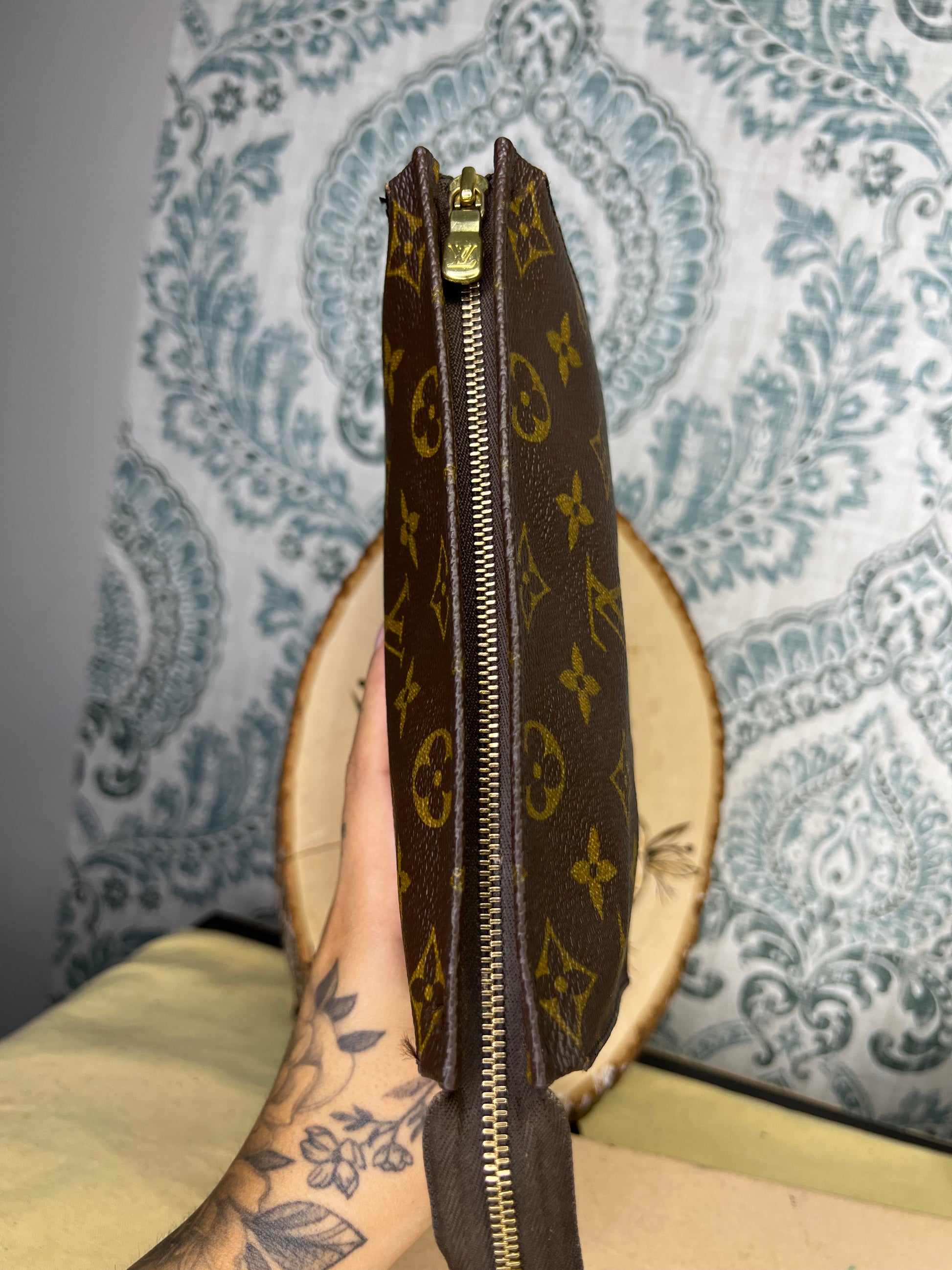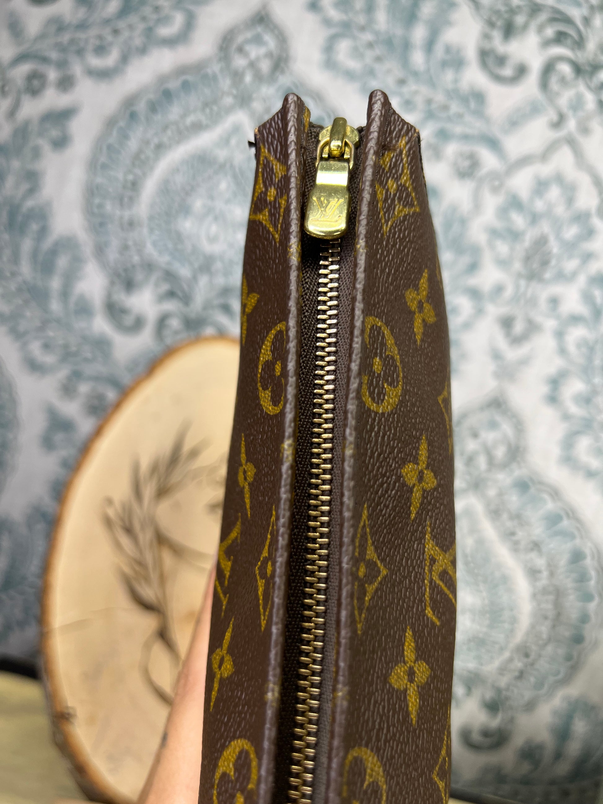 ๐ธ Canvas has cracking at top edge corners of the pouch. Thereโs also some hidden hairlines on the sides of the pouch. Shown in photos with green circles. Minor popped stitching around the same area