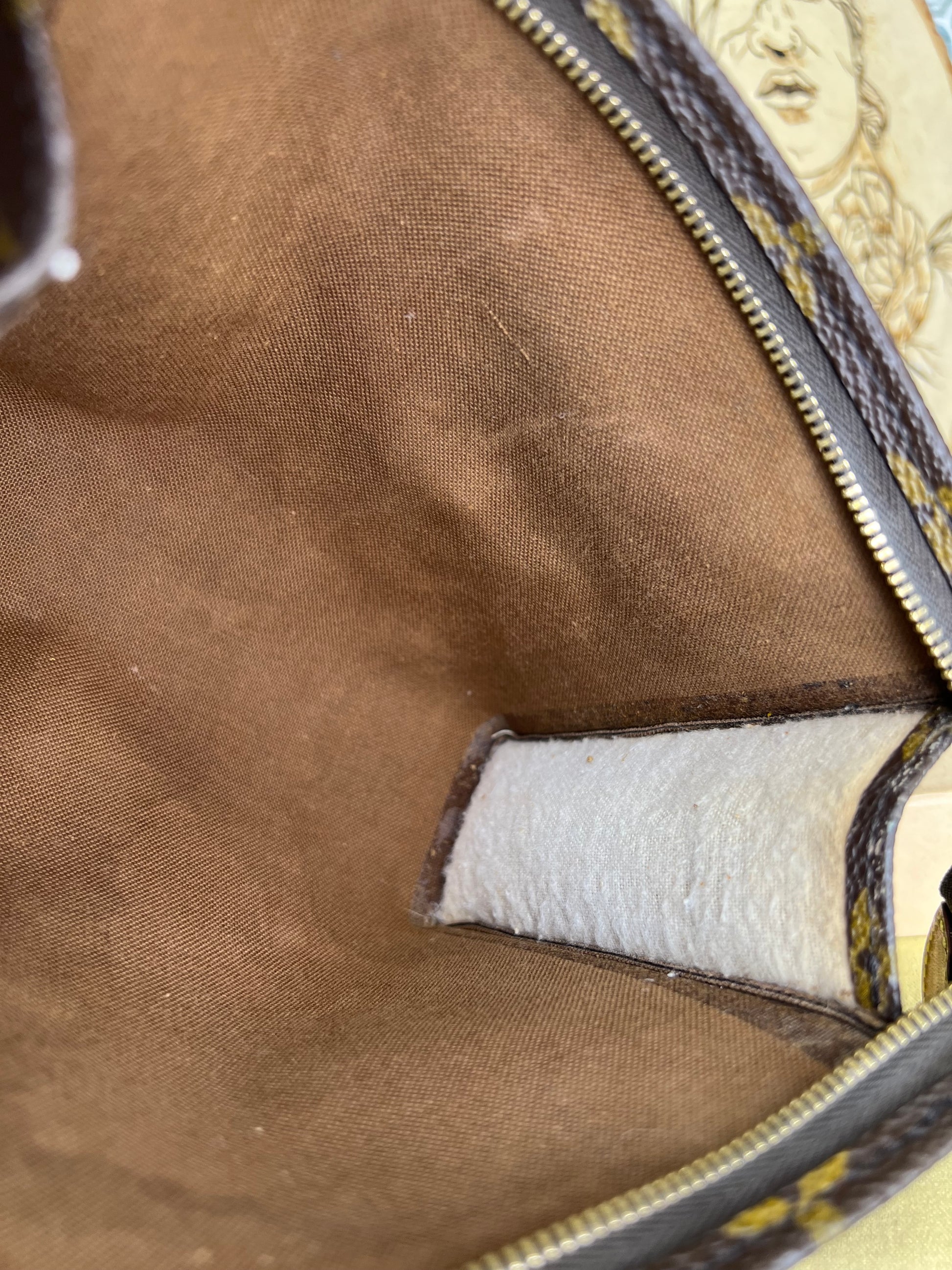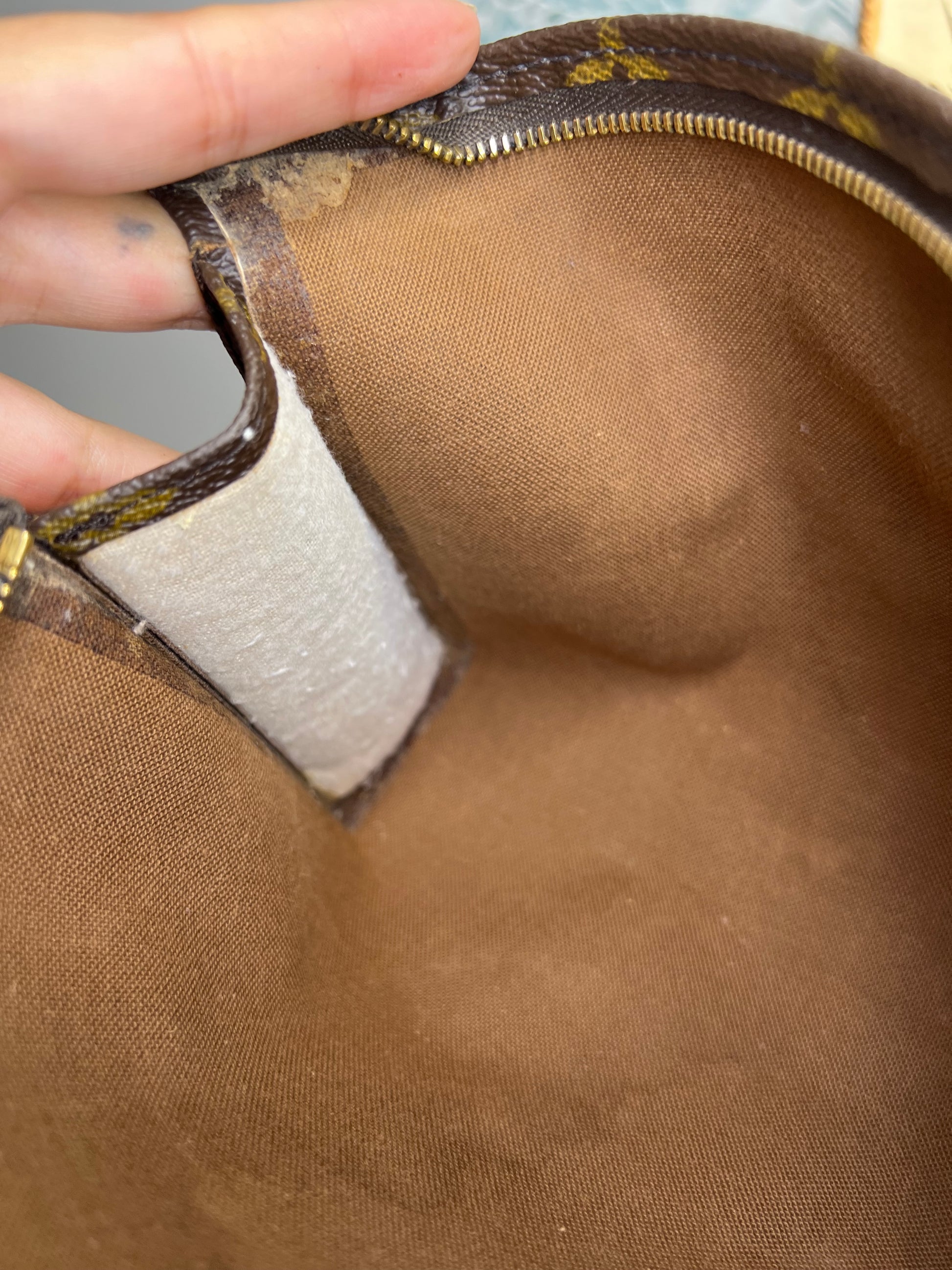 ๐ธ Interior lining was removed due to peeling/sticky lining. It is usable, but does have staining