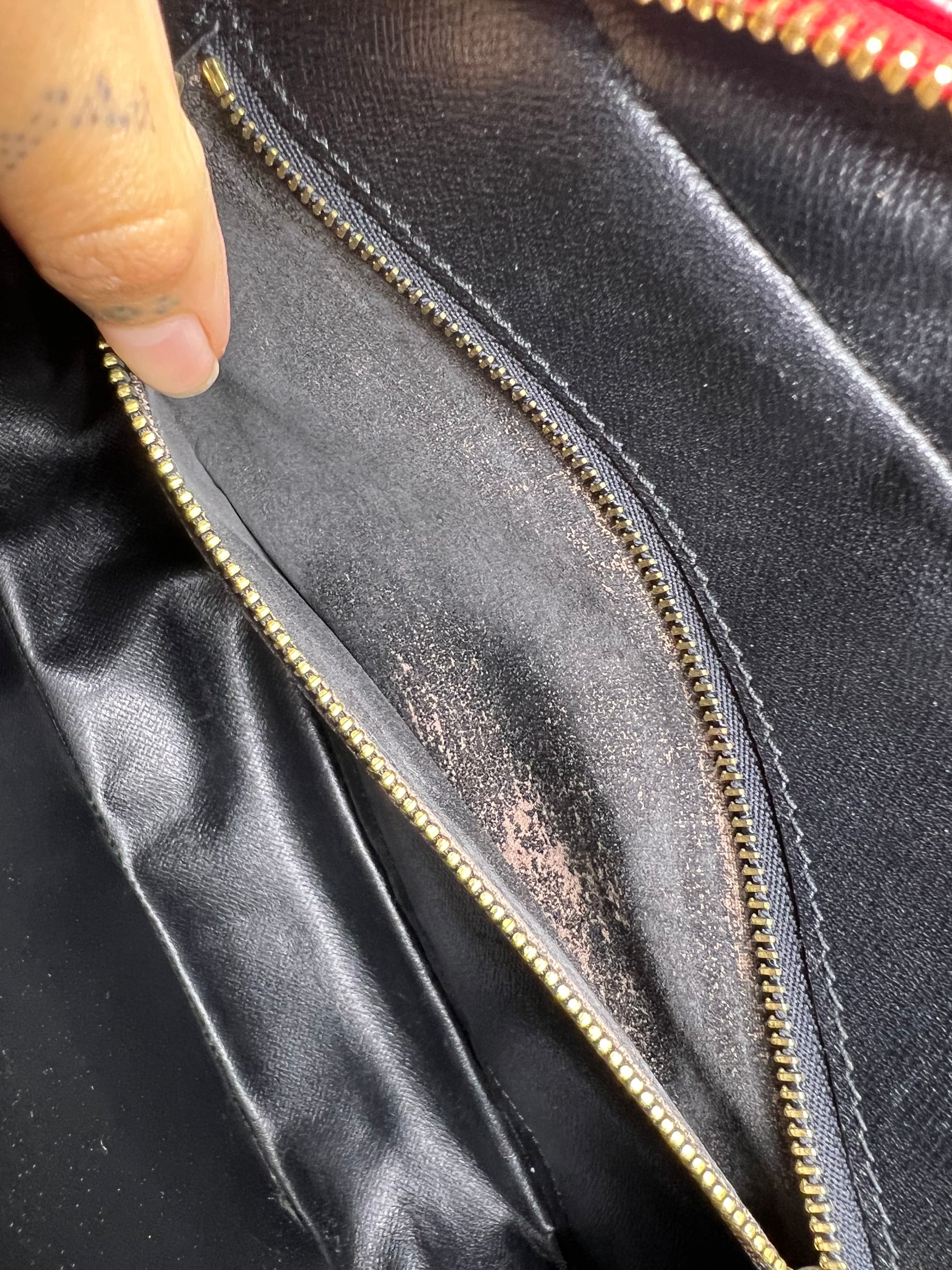 šø The outside pocket has been cleaned out from dry peel and is 100% usable. The zipped interior side pocket has dry peeling. The main compartment is clean and usable, no peeling or stickiness.