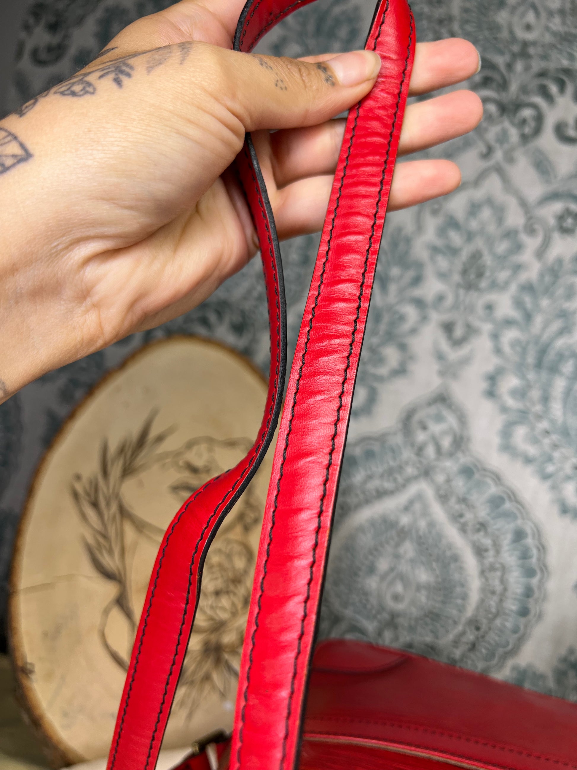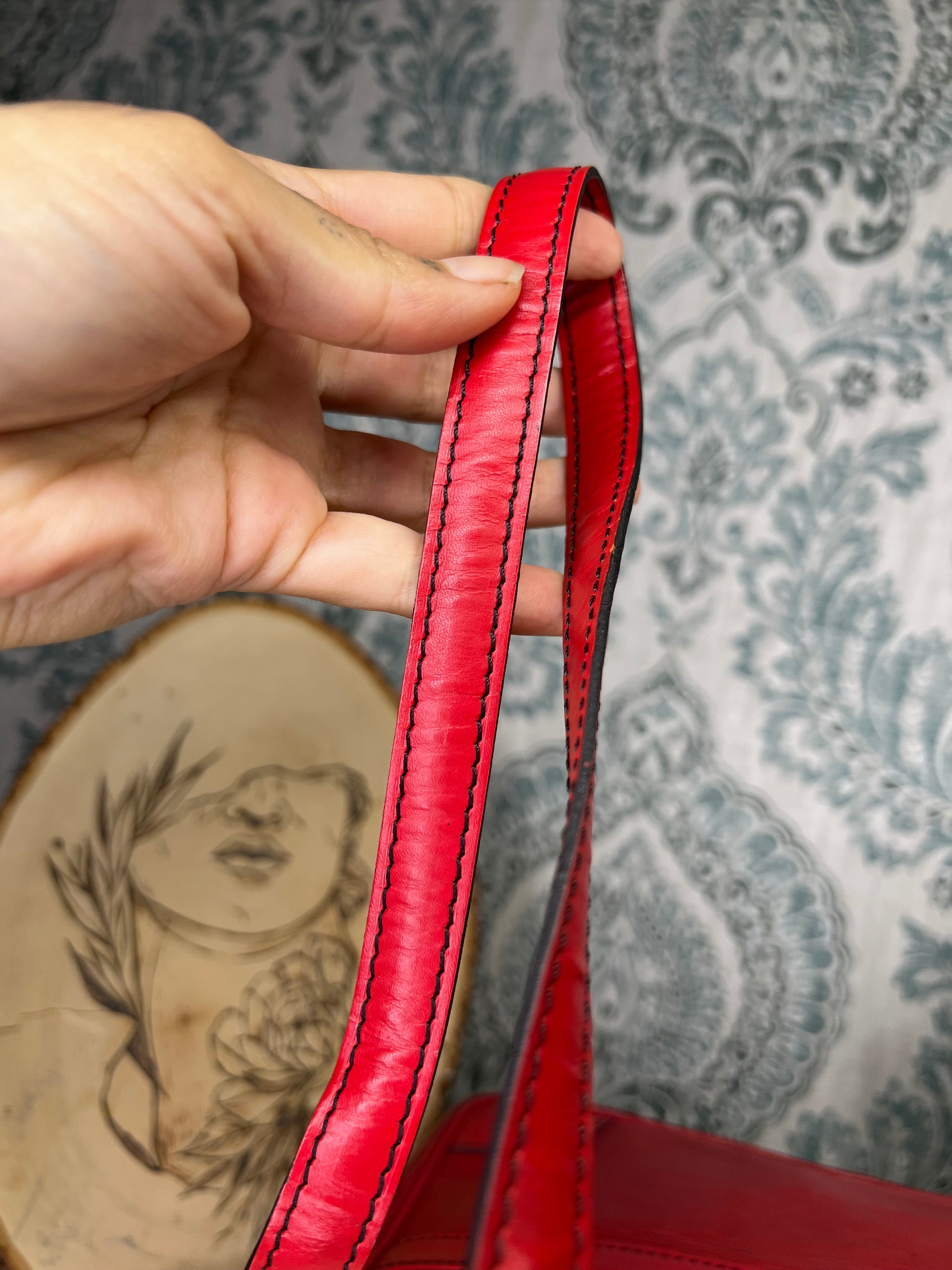 šø Leather has scuffs and wrinkles, but is overall in good condition. Most of the scuffing is at the backside of the purse and not noticeable. Minor black marks present. Chaps are in good shape and sturdy. Strap has wrinkles and surface wear, but is strong.