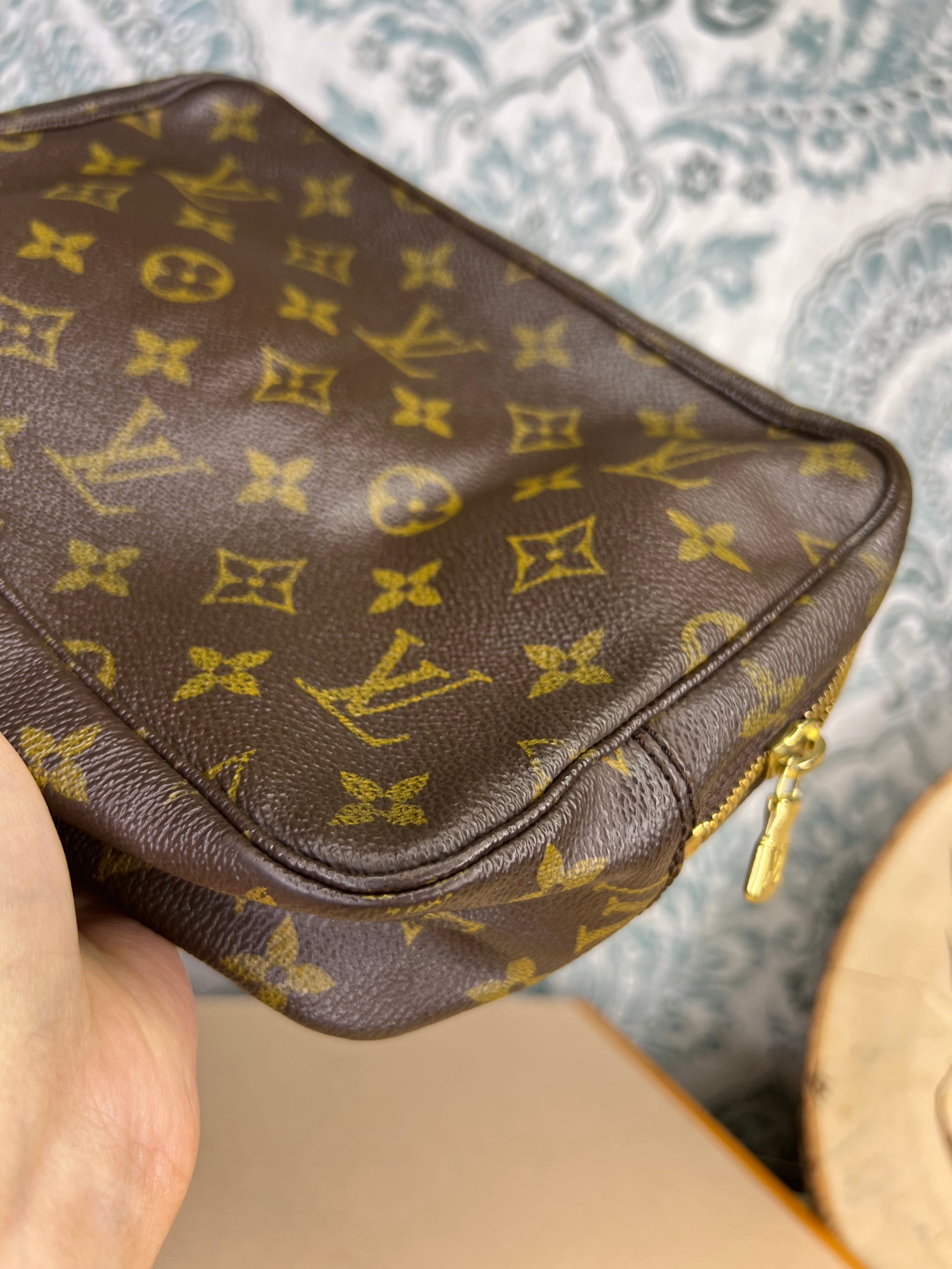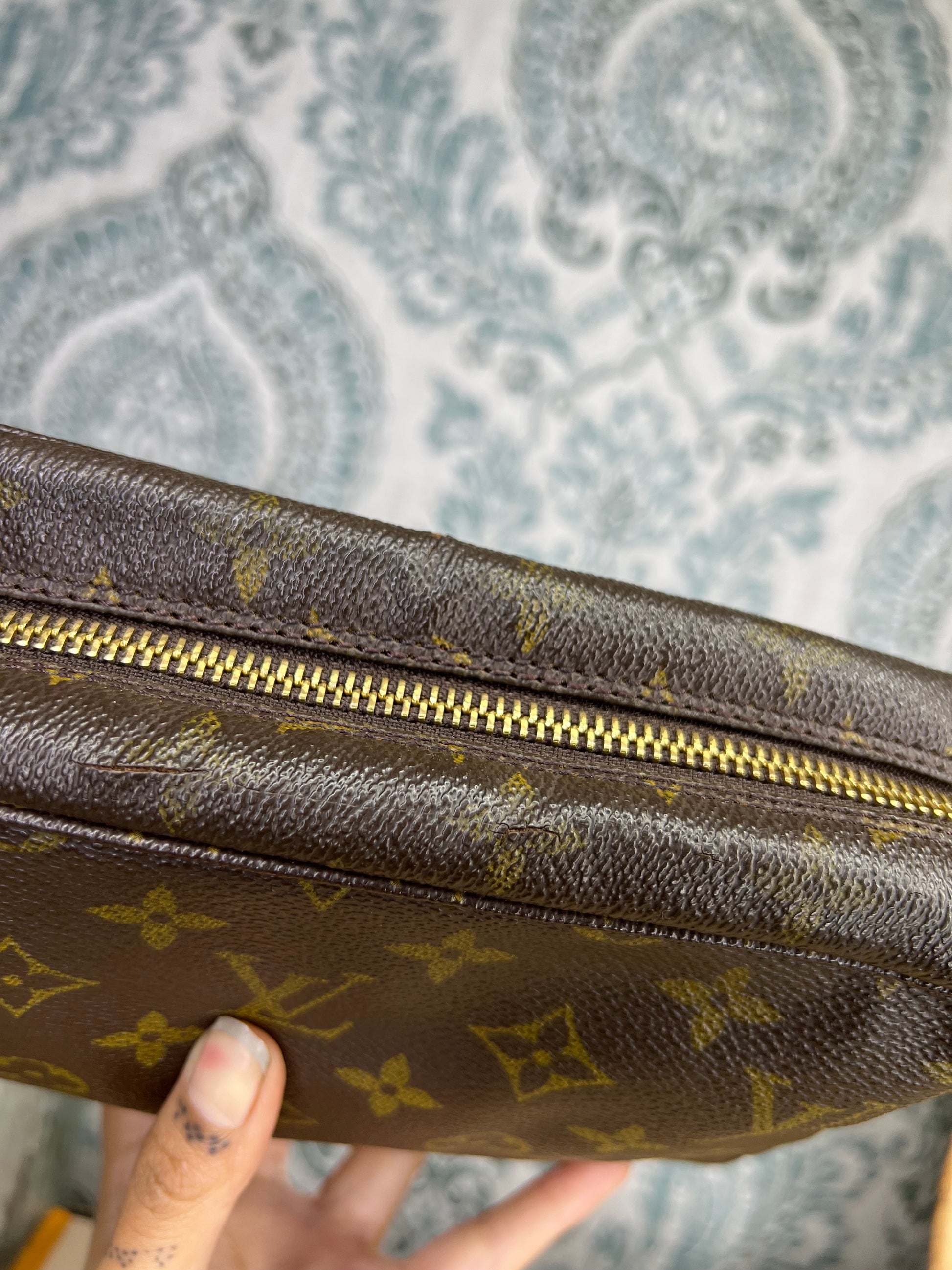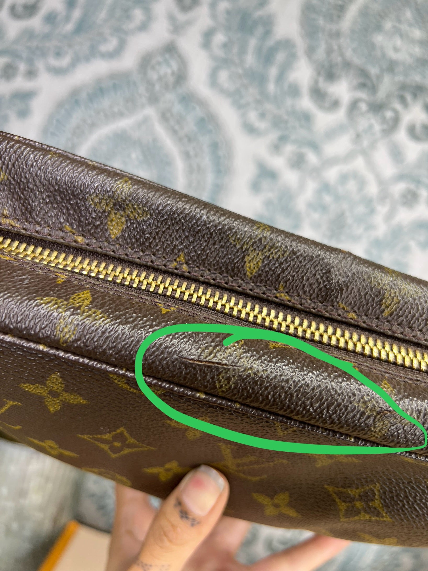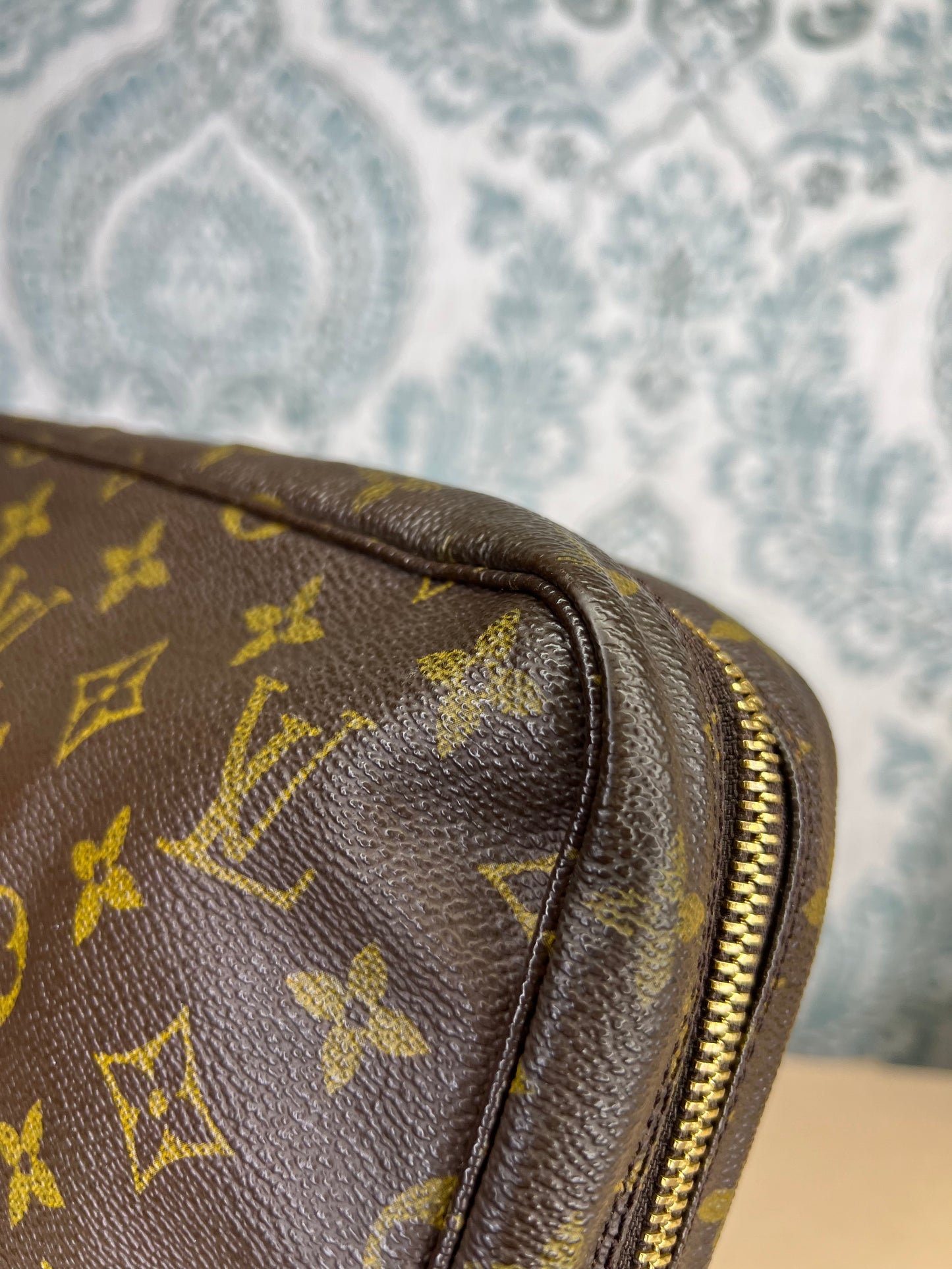 ๐ธ Canvas has cracks at the top of the pouch near zipper. Base corners of the bag has canvas rubs. Monogram has some areas with speckled fading, but overall monogram is in good shape