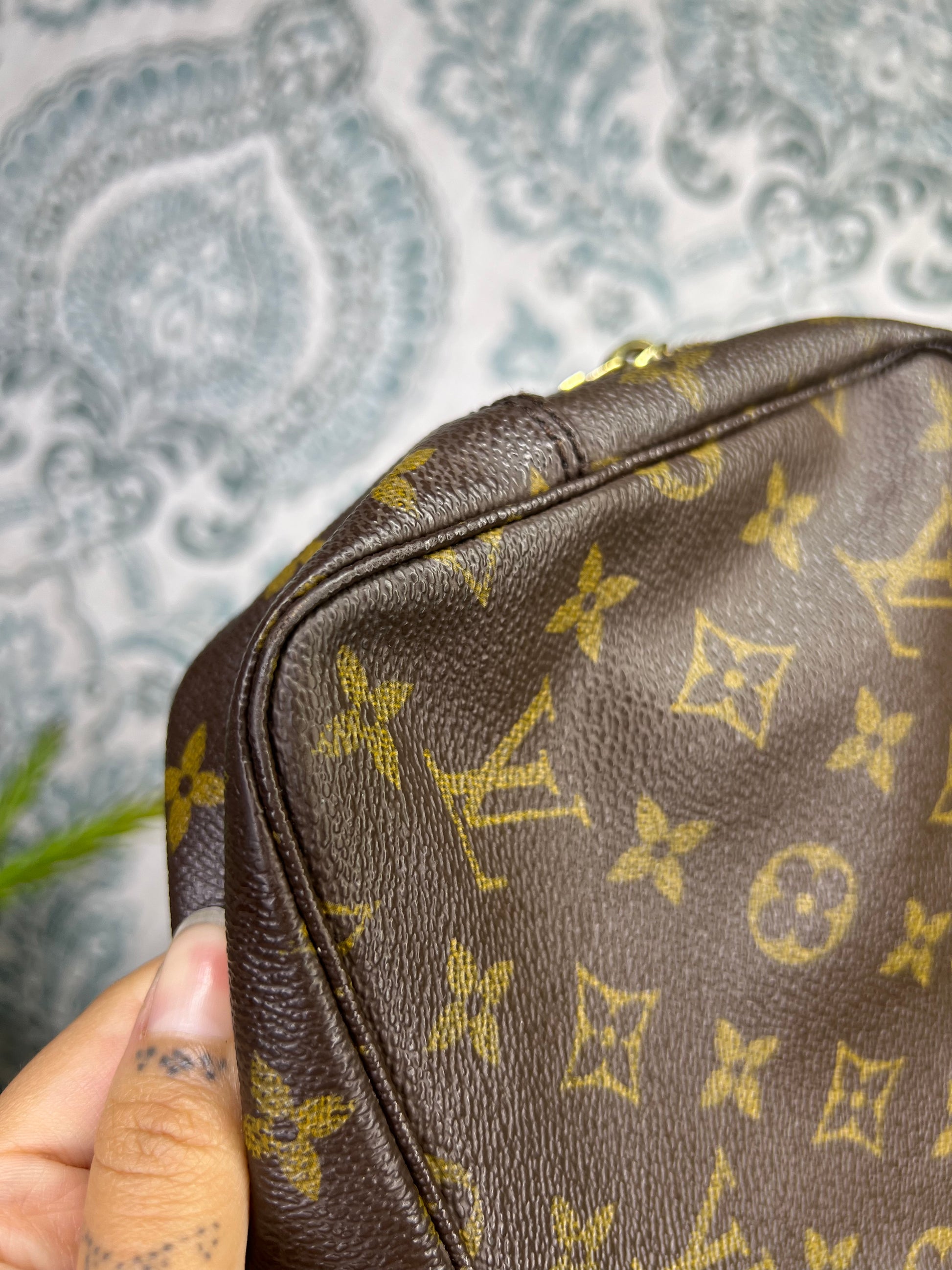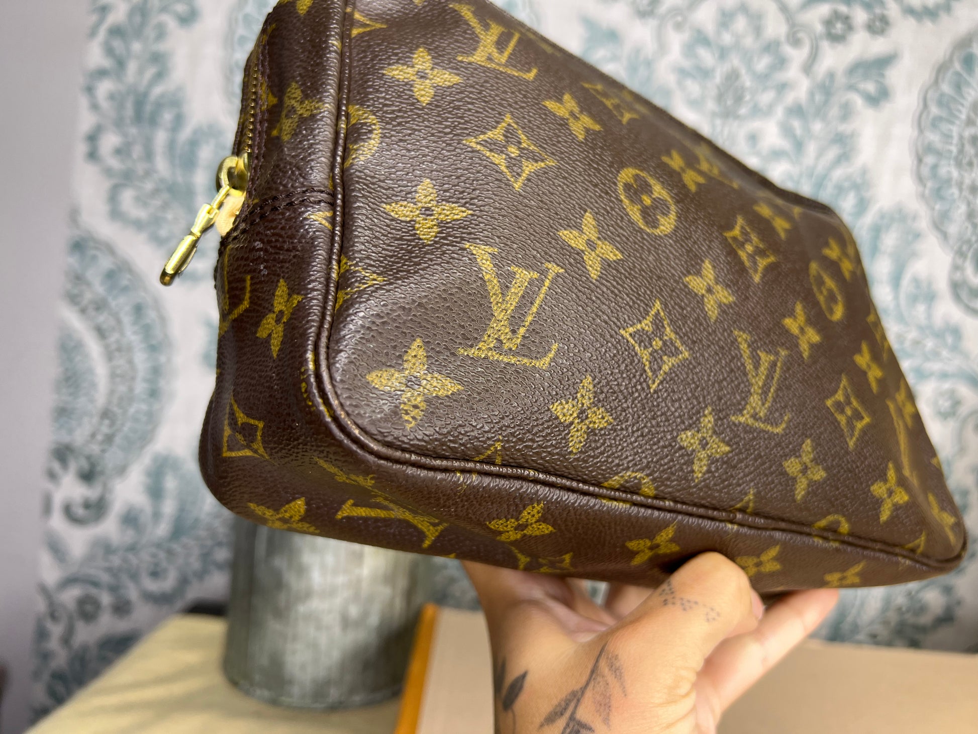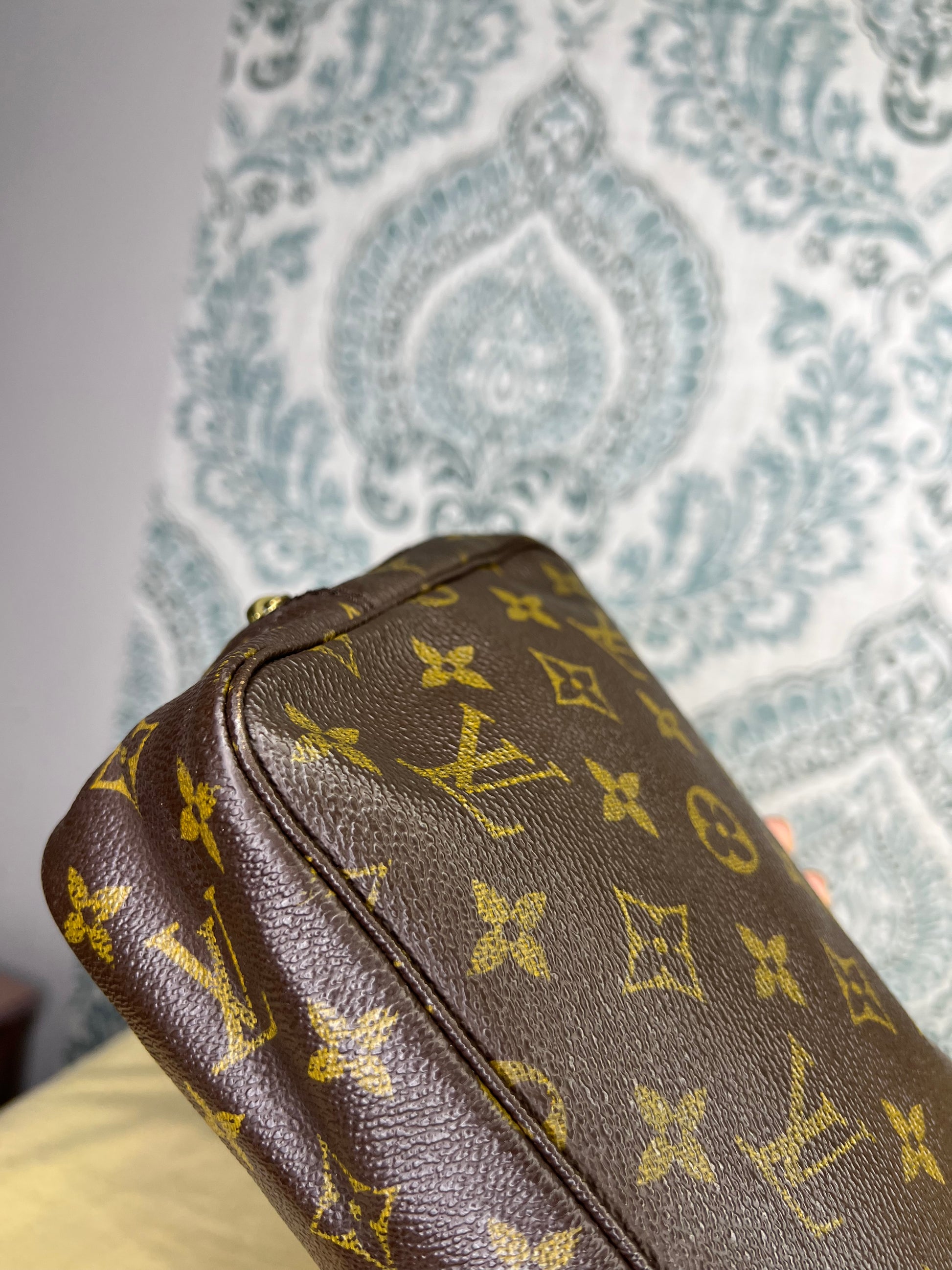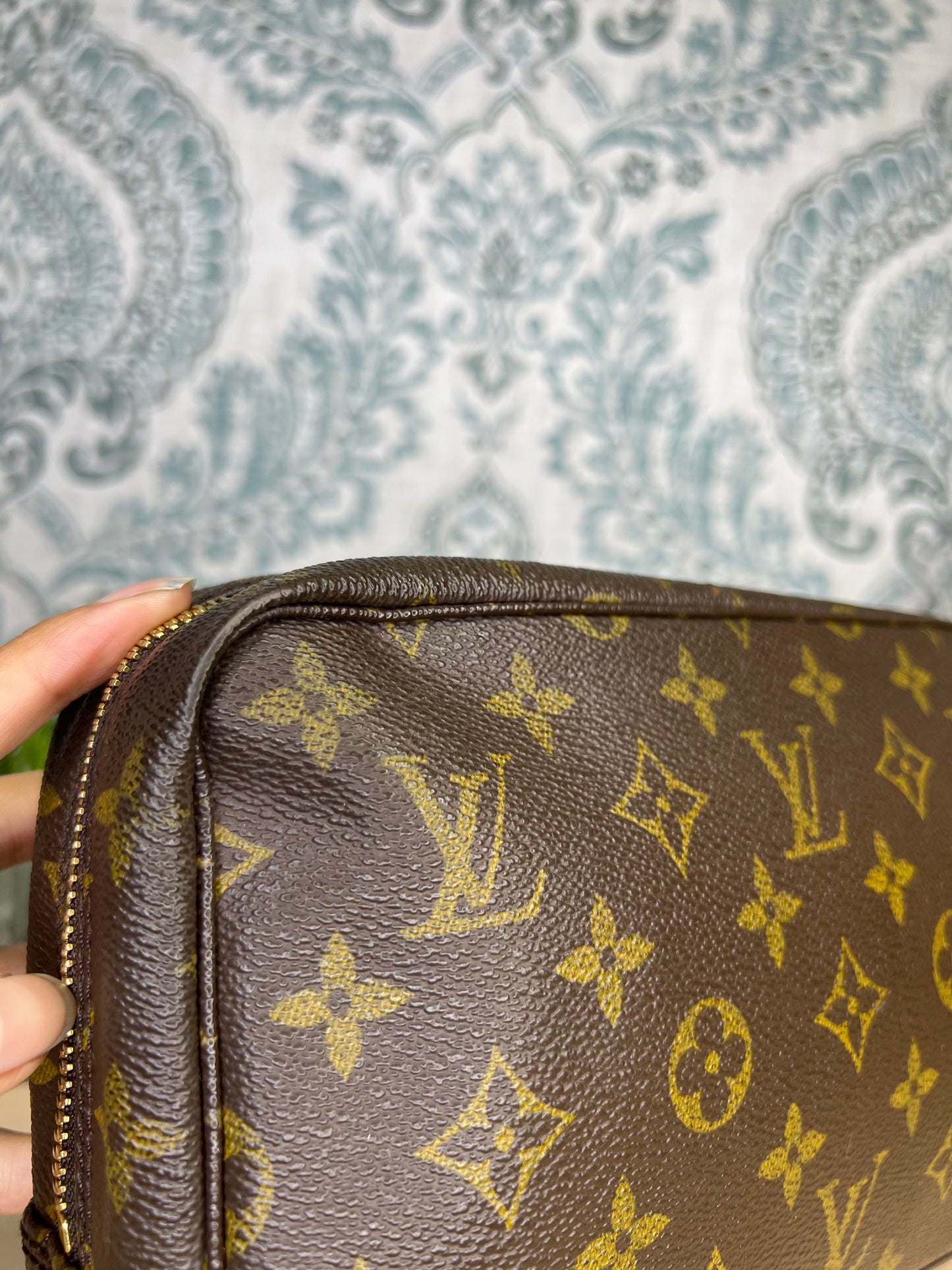 ๐ธ Canvas has cracks at the top of the pouch near zipper. Base corners of the bag has canvas rubs. Monogram has some areas with speckled fading, but overall monogram is in good shape