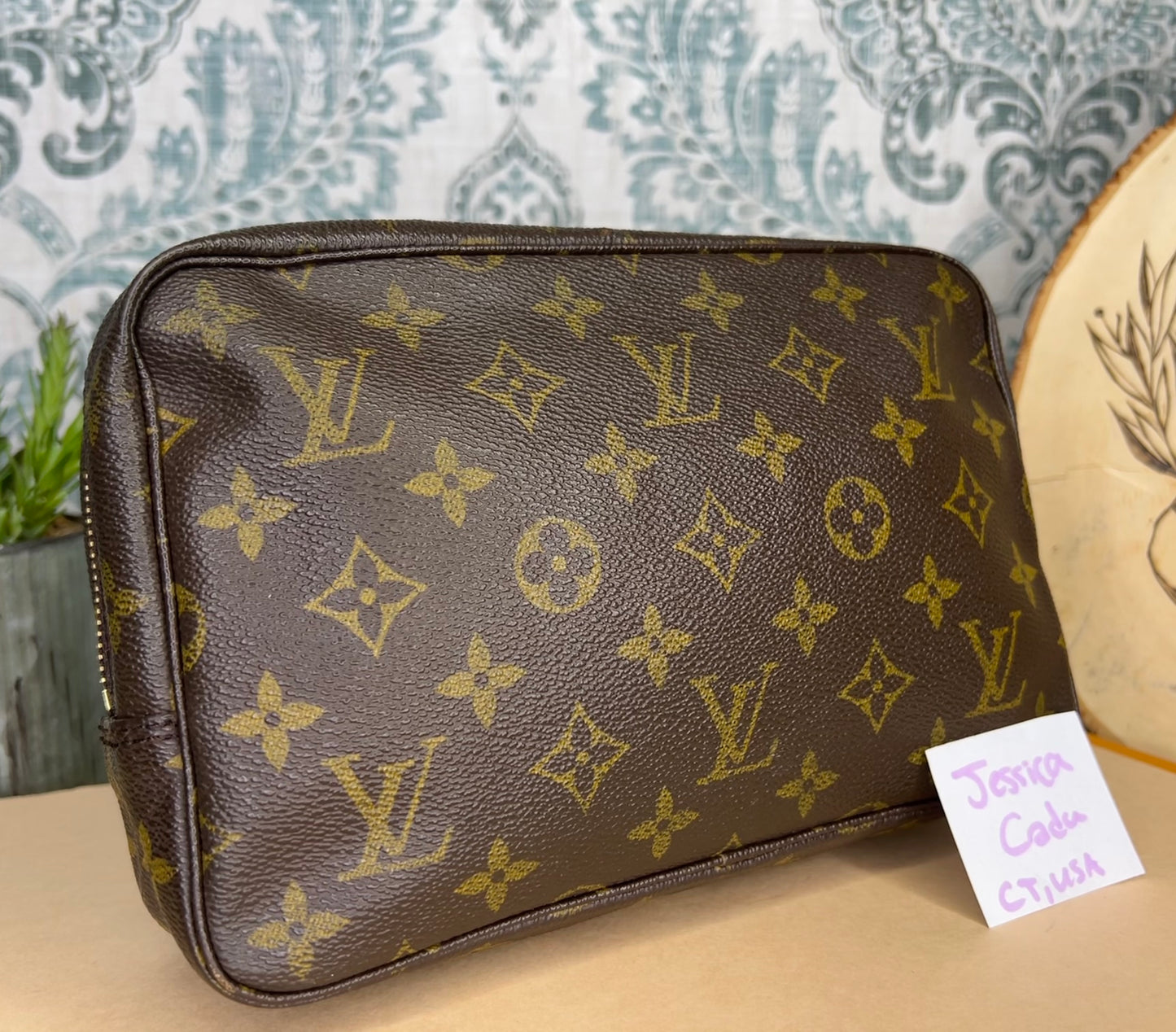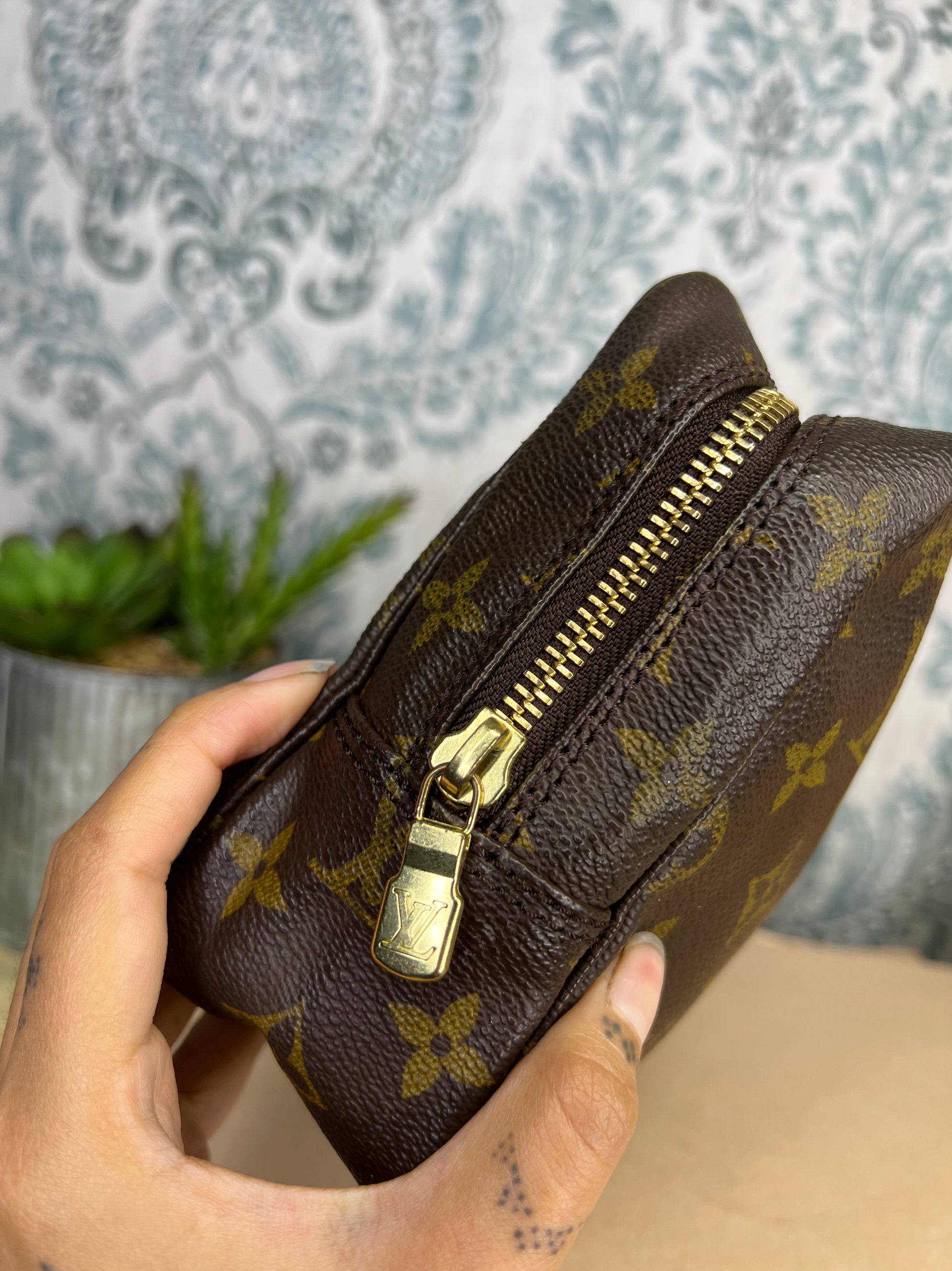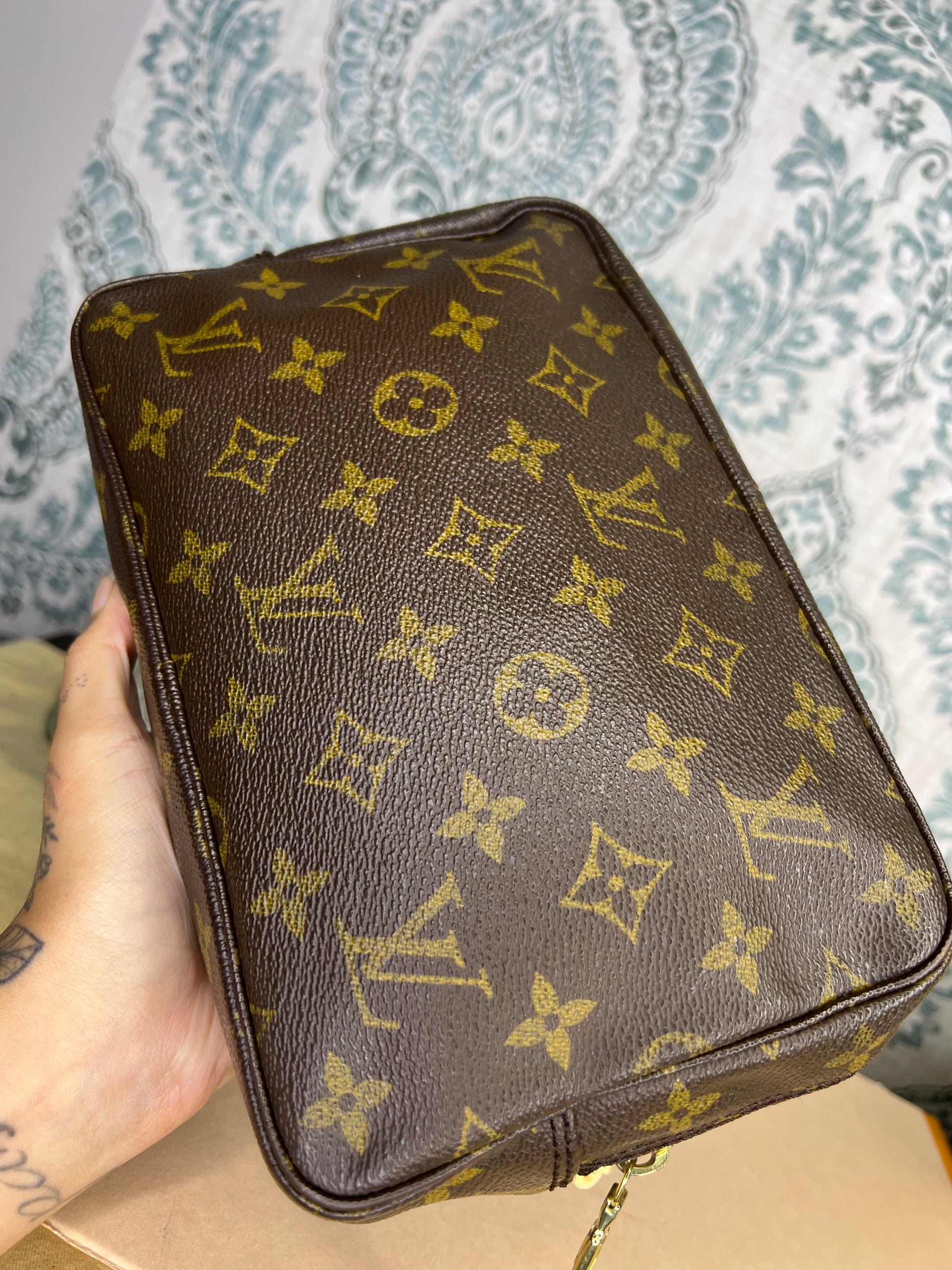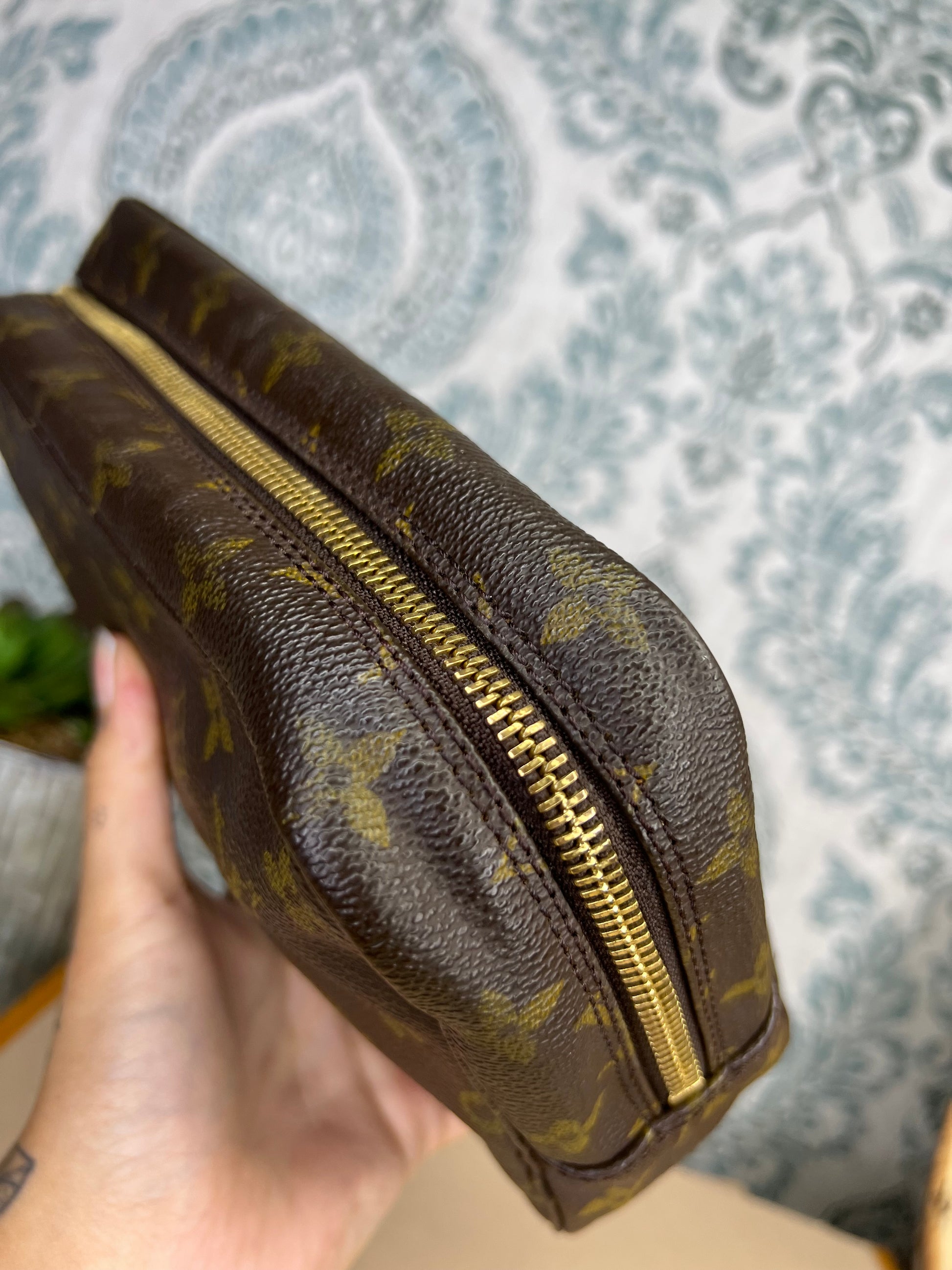 ๐ธ Canvas has cracks at the top of the pouch near zipper. Base corners of the bag has canvas rubs. Monogram has some areas with speckled fading, but overall monogram is in good shape