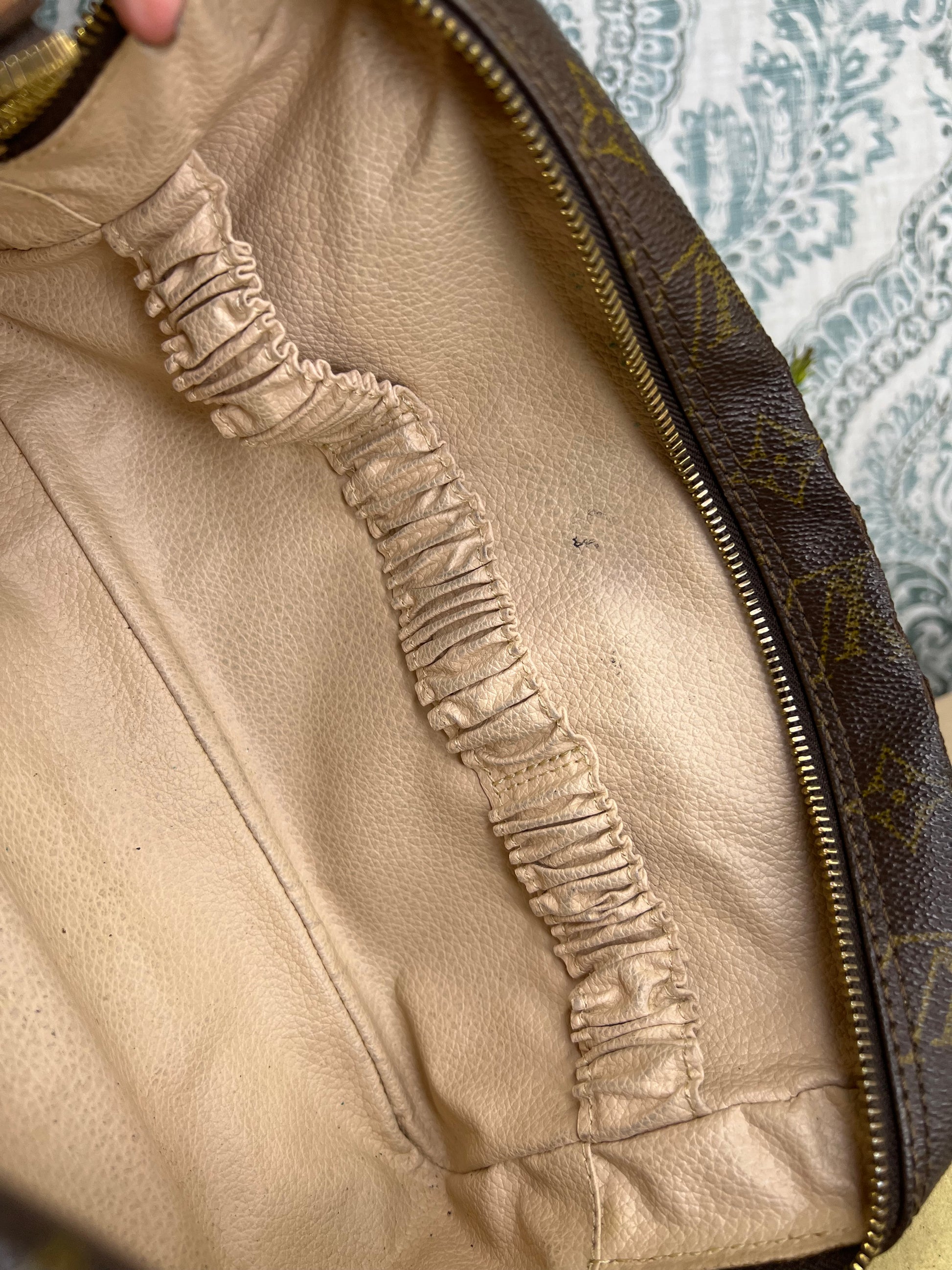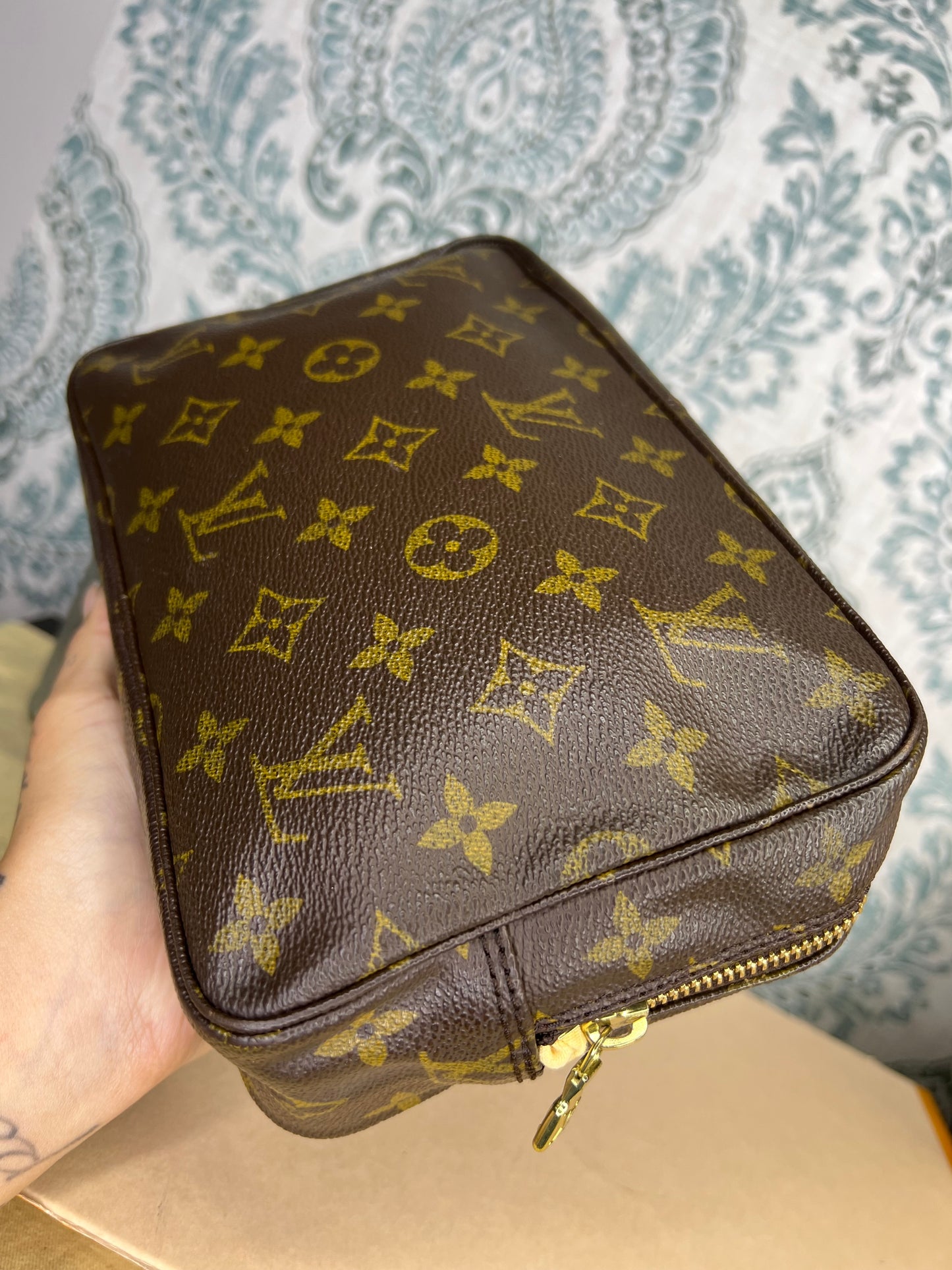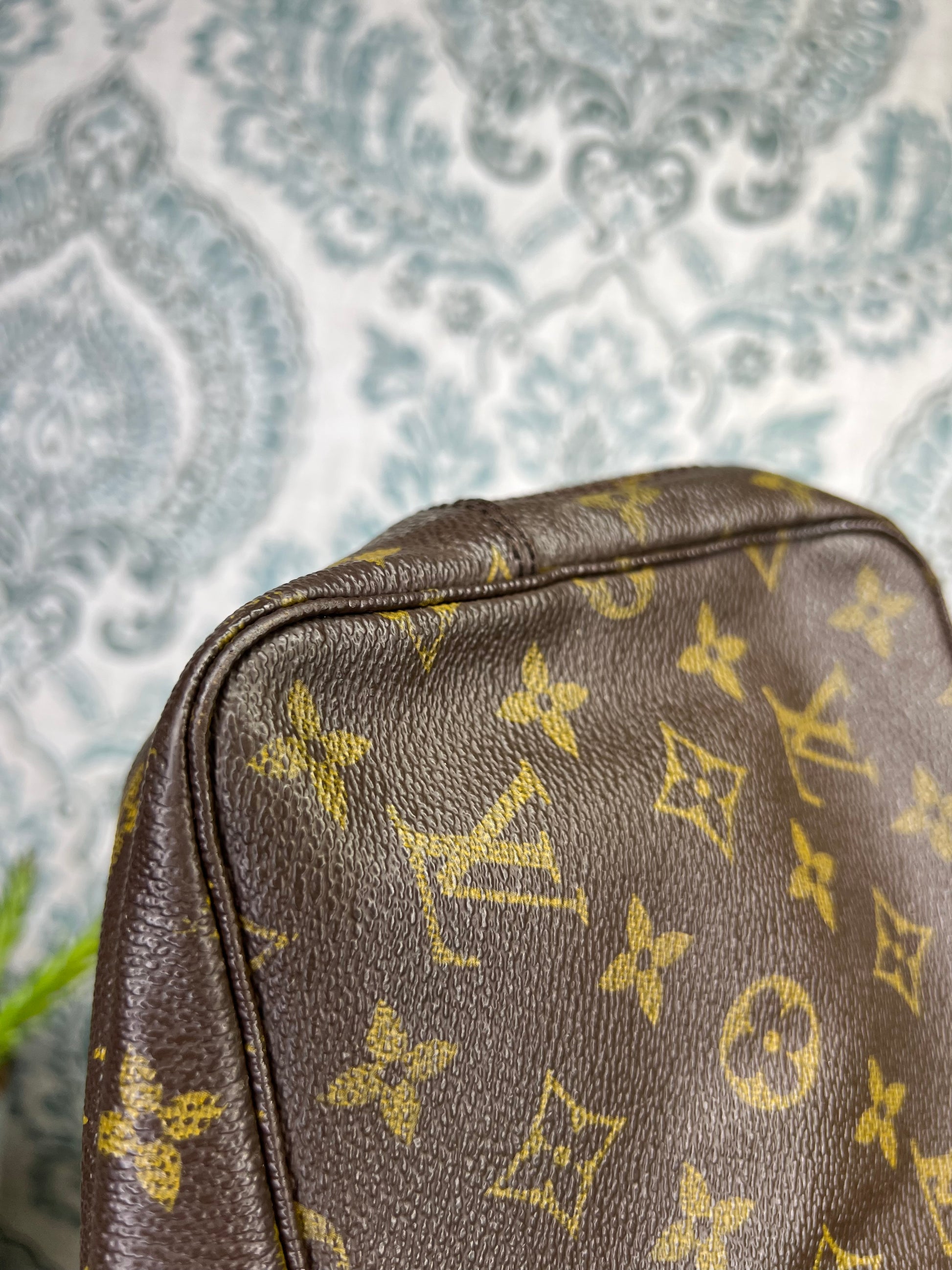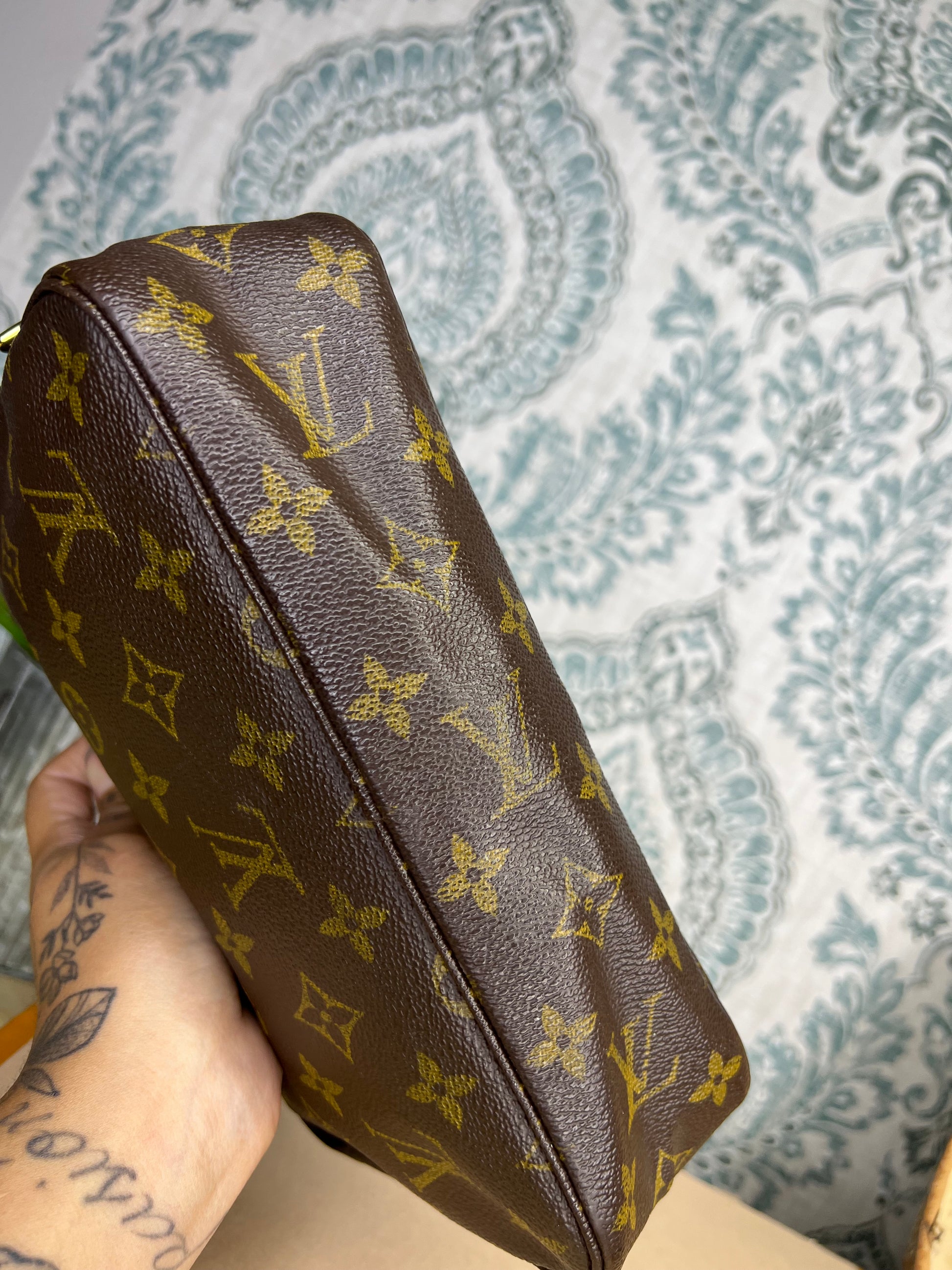 ๐ธ Canvas has cracks at the top of the pouch near zipper. Base corners of the bag has canvas rubs. Monogram has some areas with speckled fading, but overall monogram is in good shape