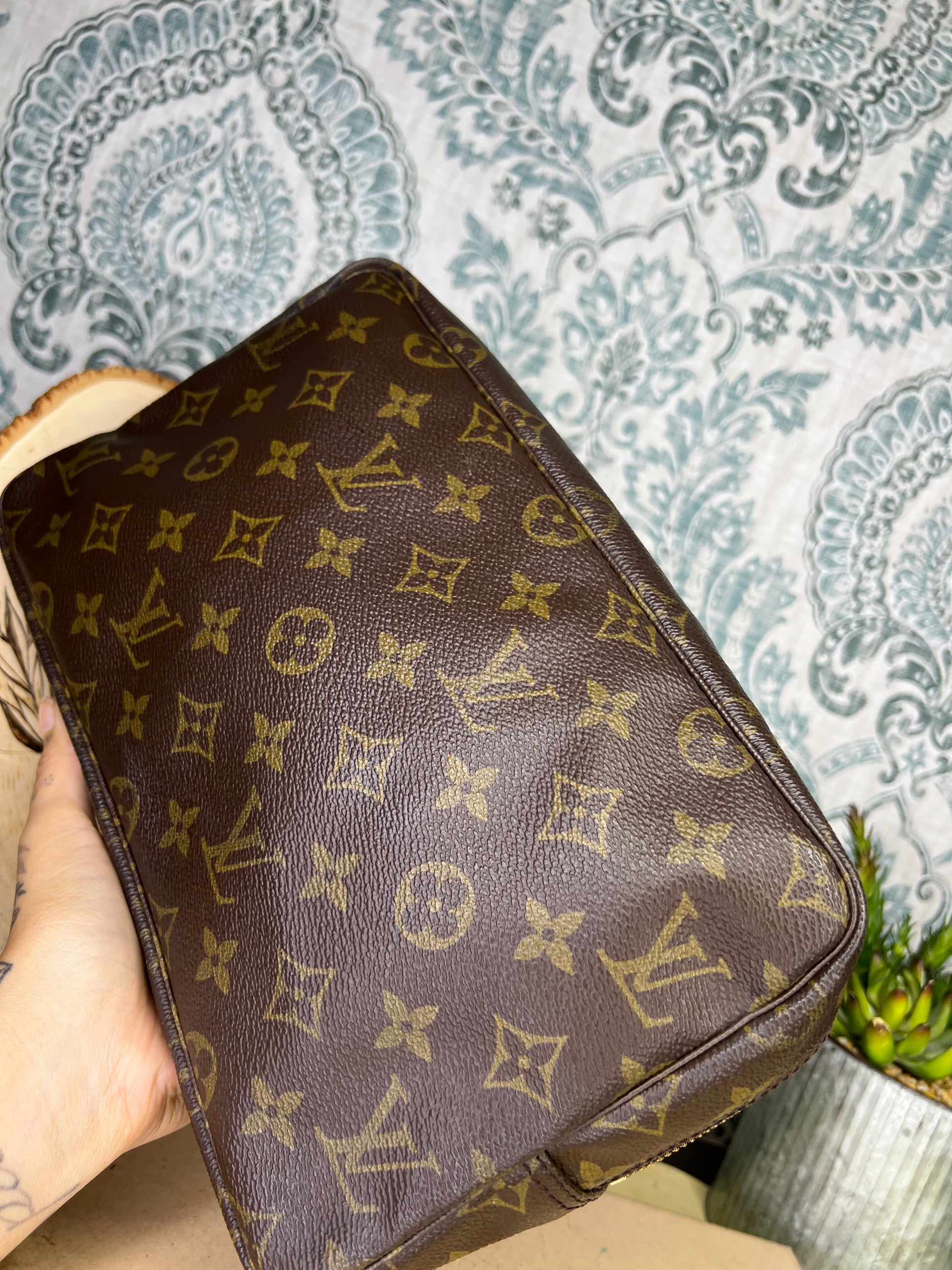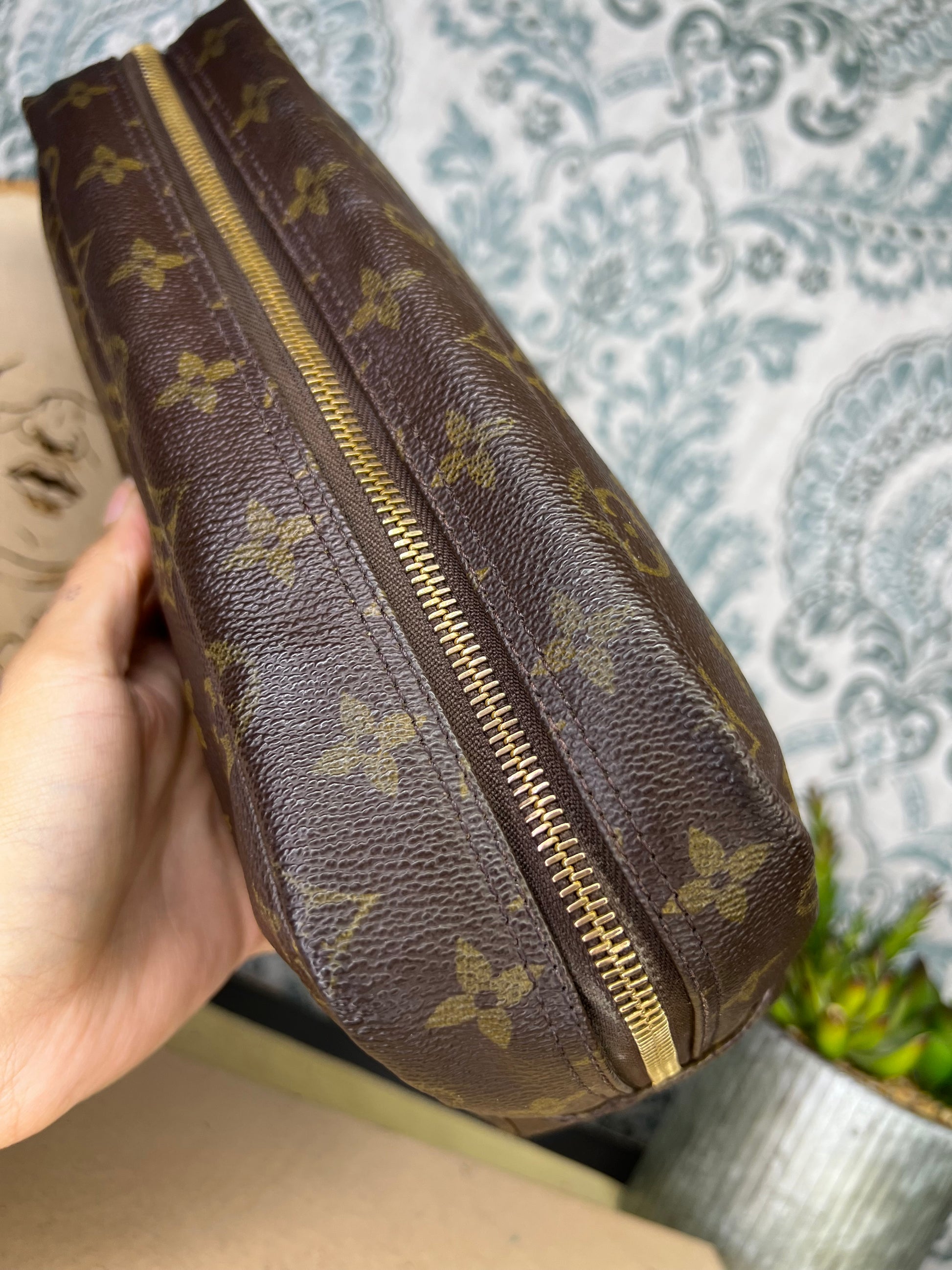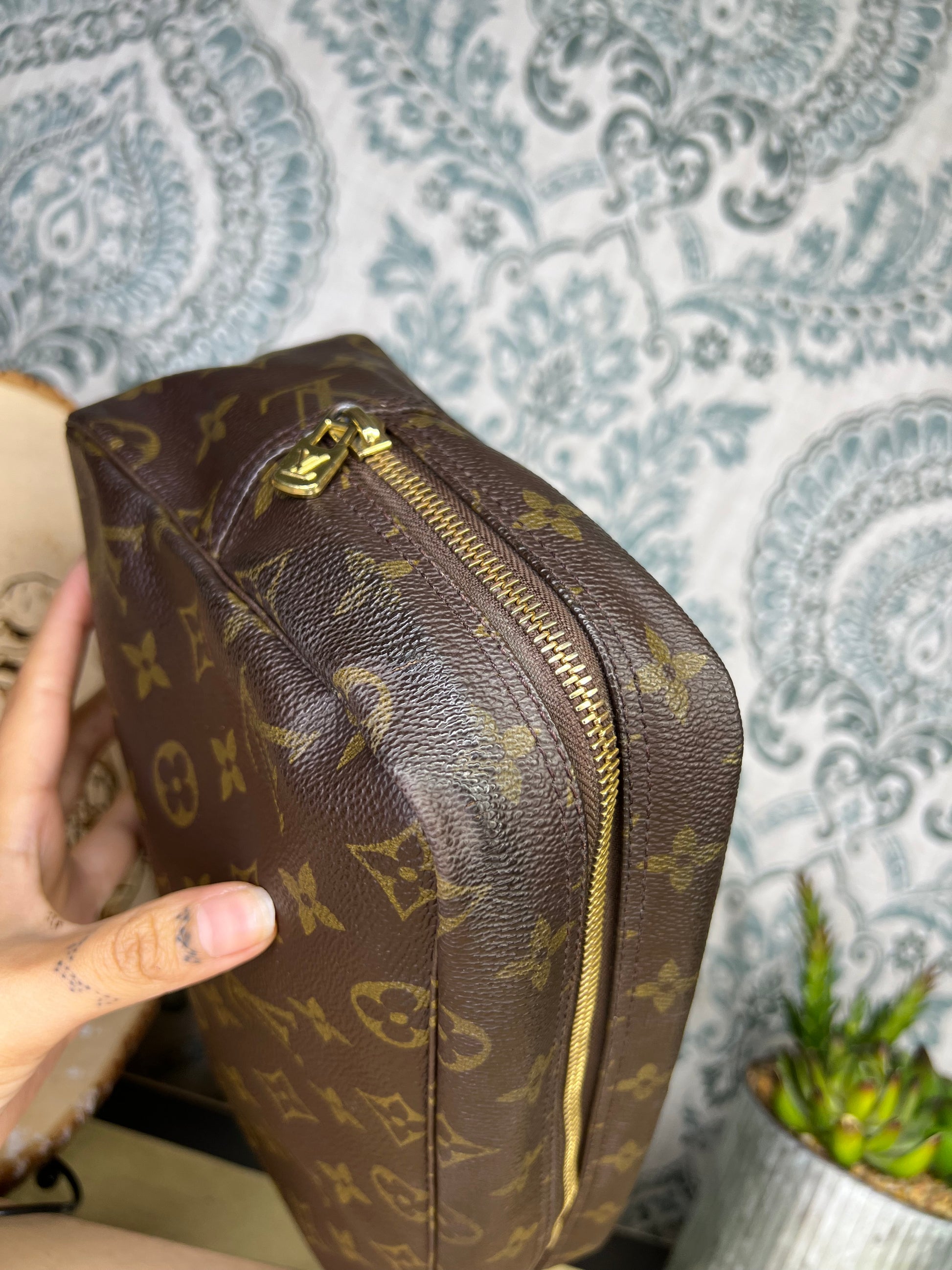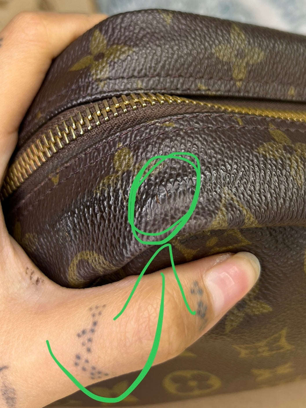 šø Canvas has very minor cracking at top corner of the pouch, shown in photo with green circle. Monogram does have some fading, but is overall clear