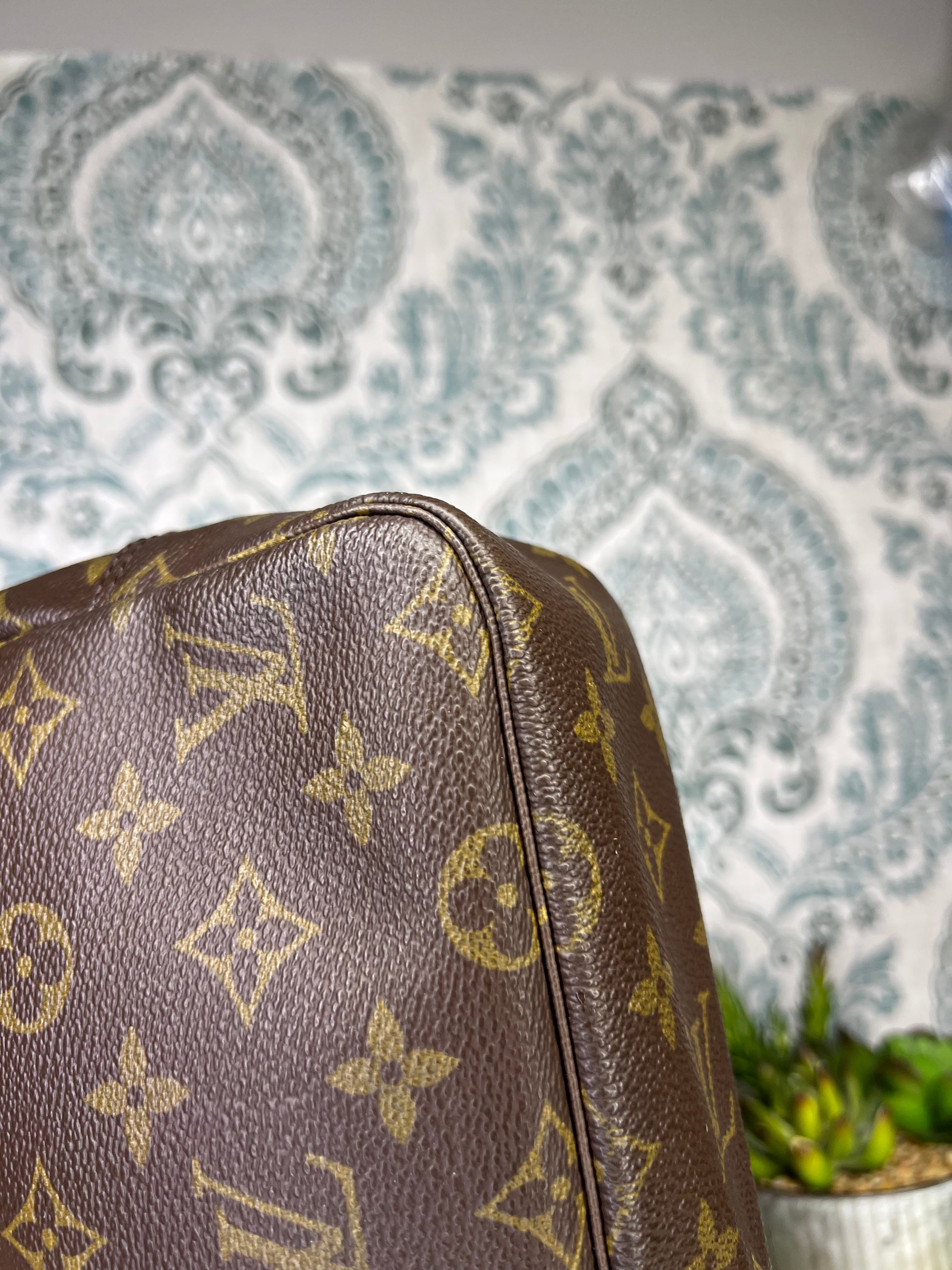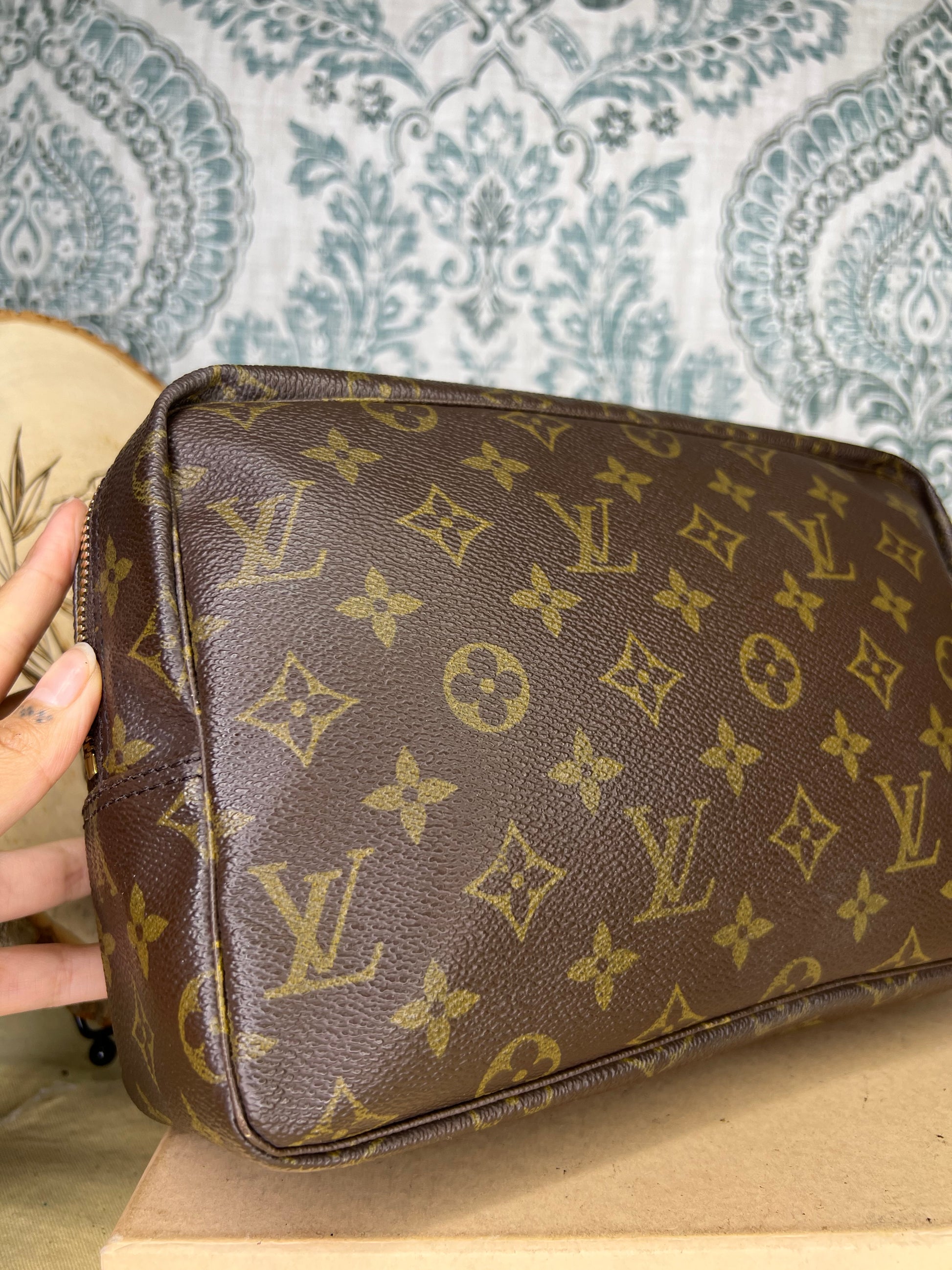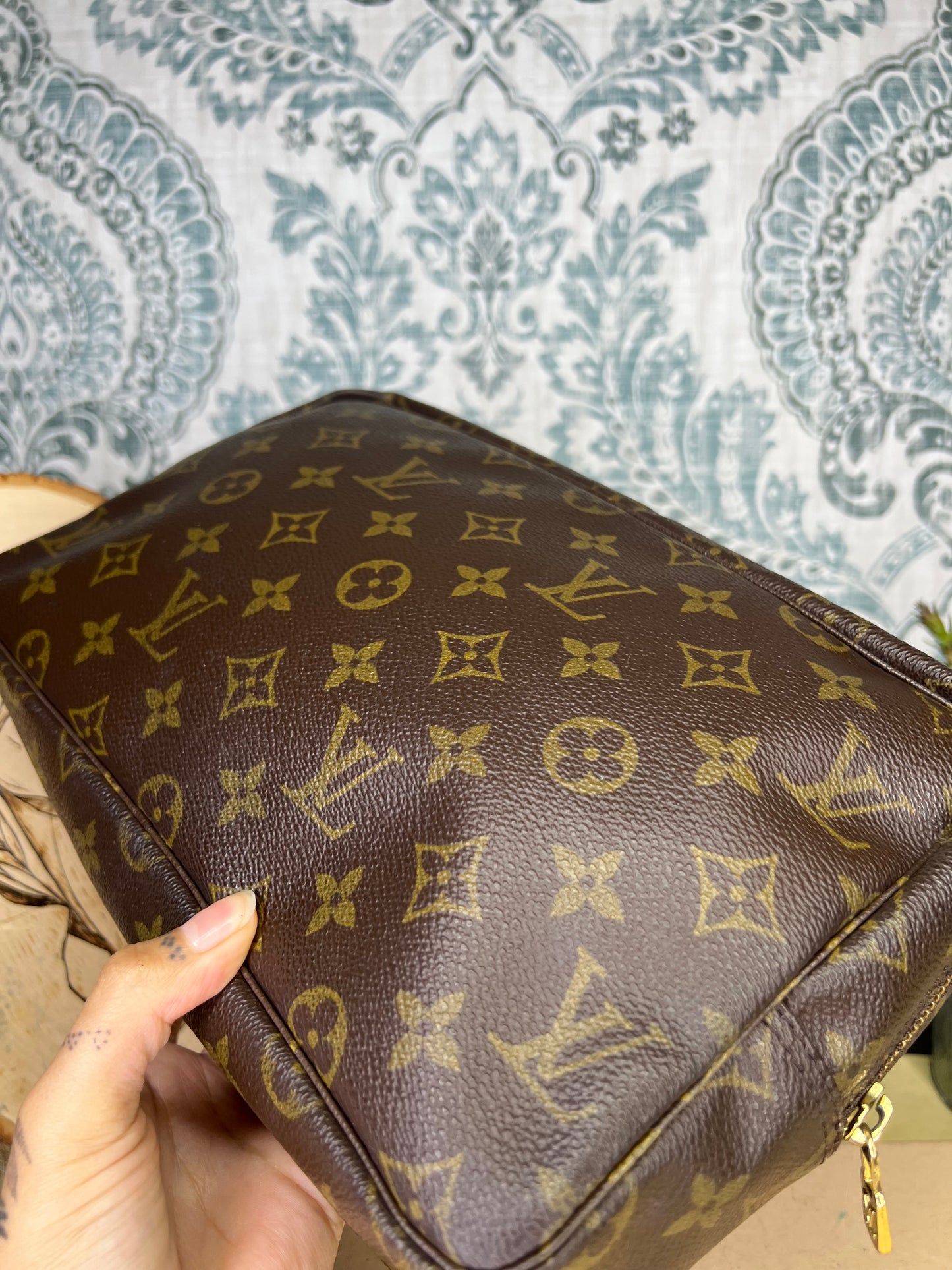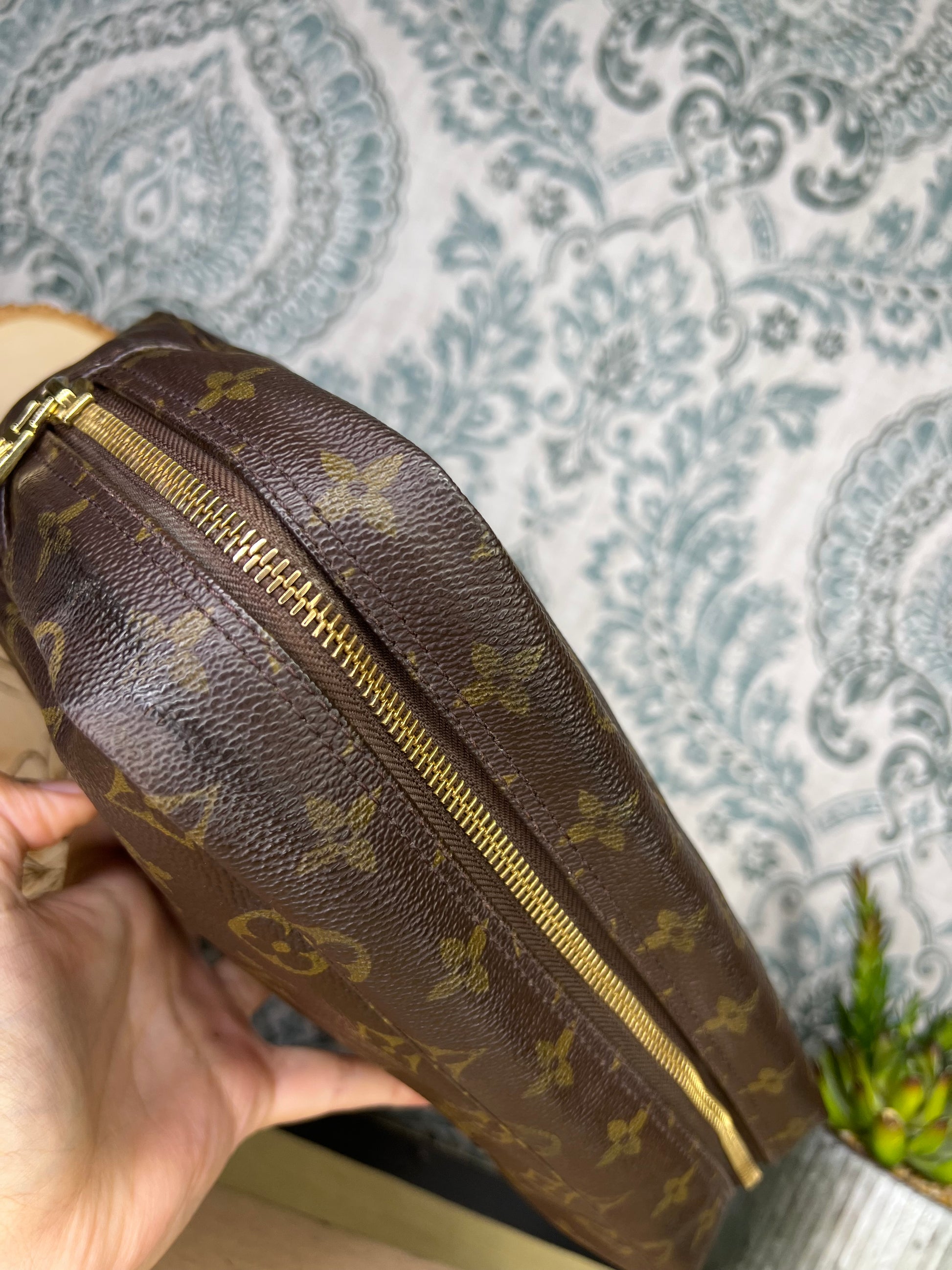 šø Canvas has very minor cracking at top corner of the pouch, shown in photo with green circle. Monogram does have some fading, but is overall clear