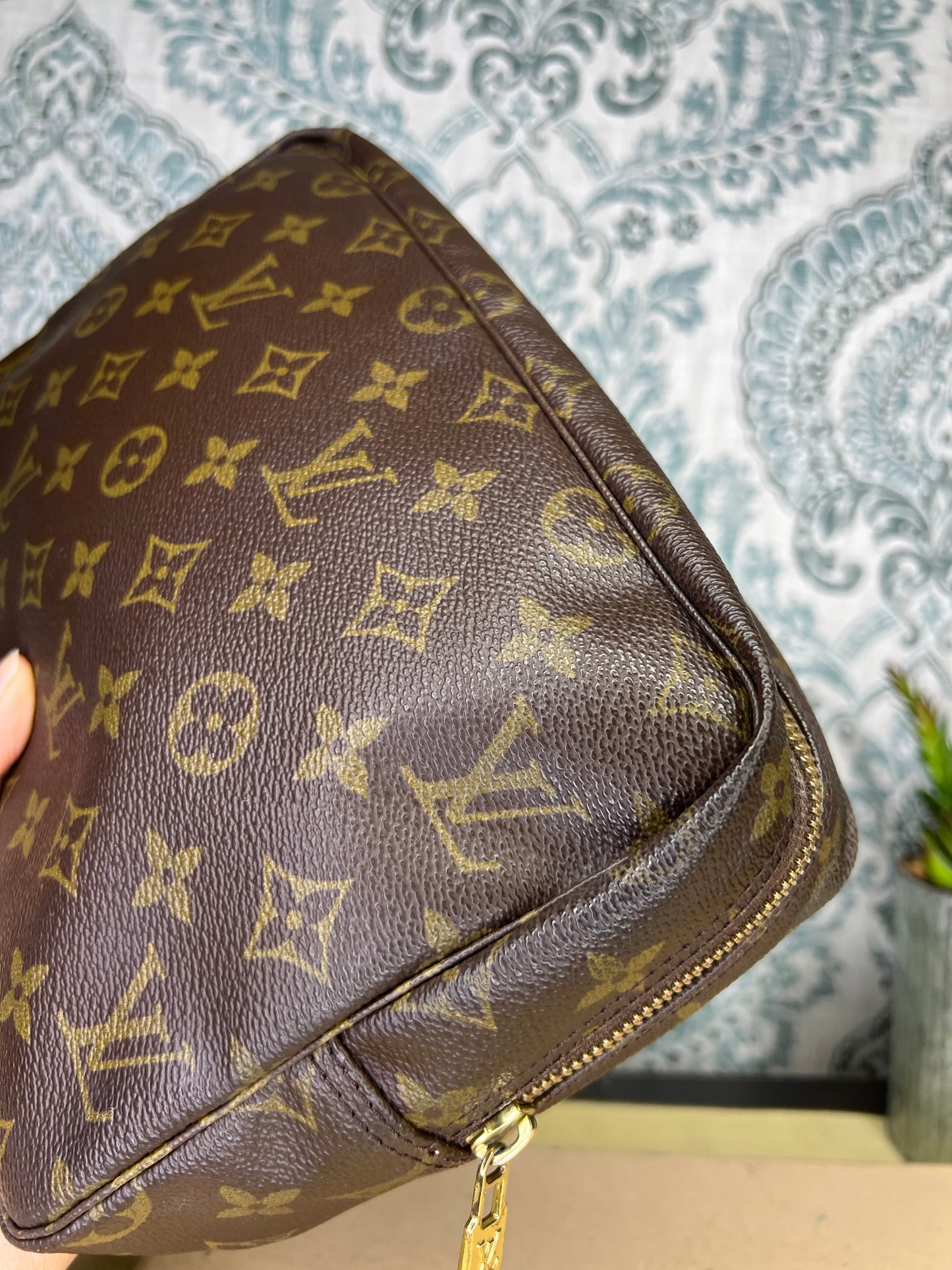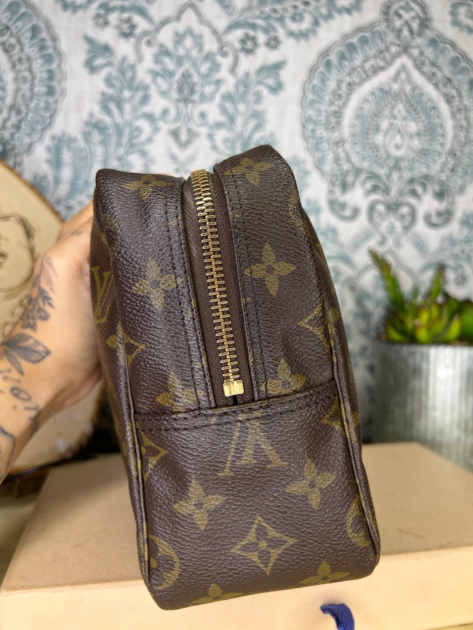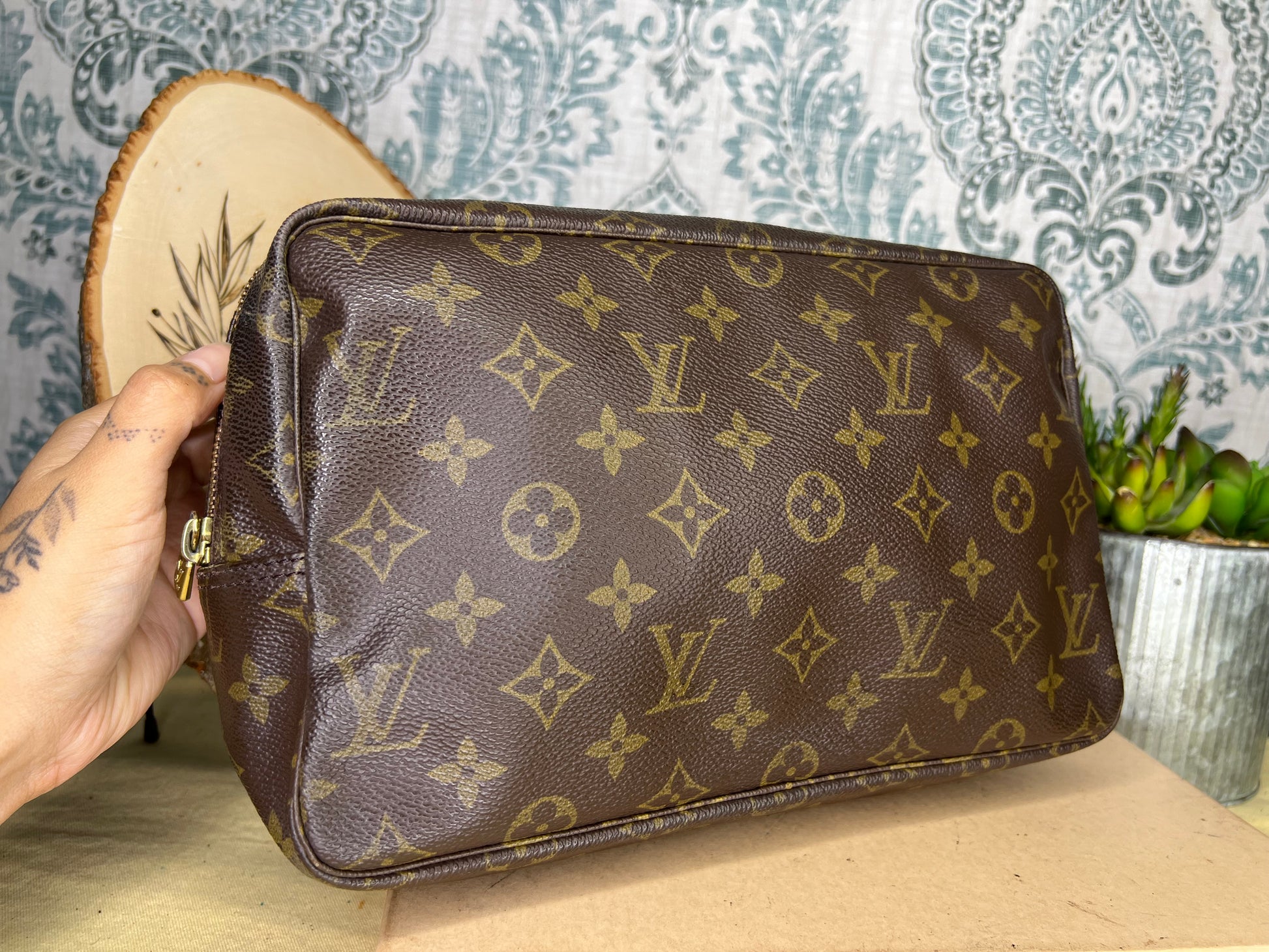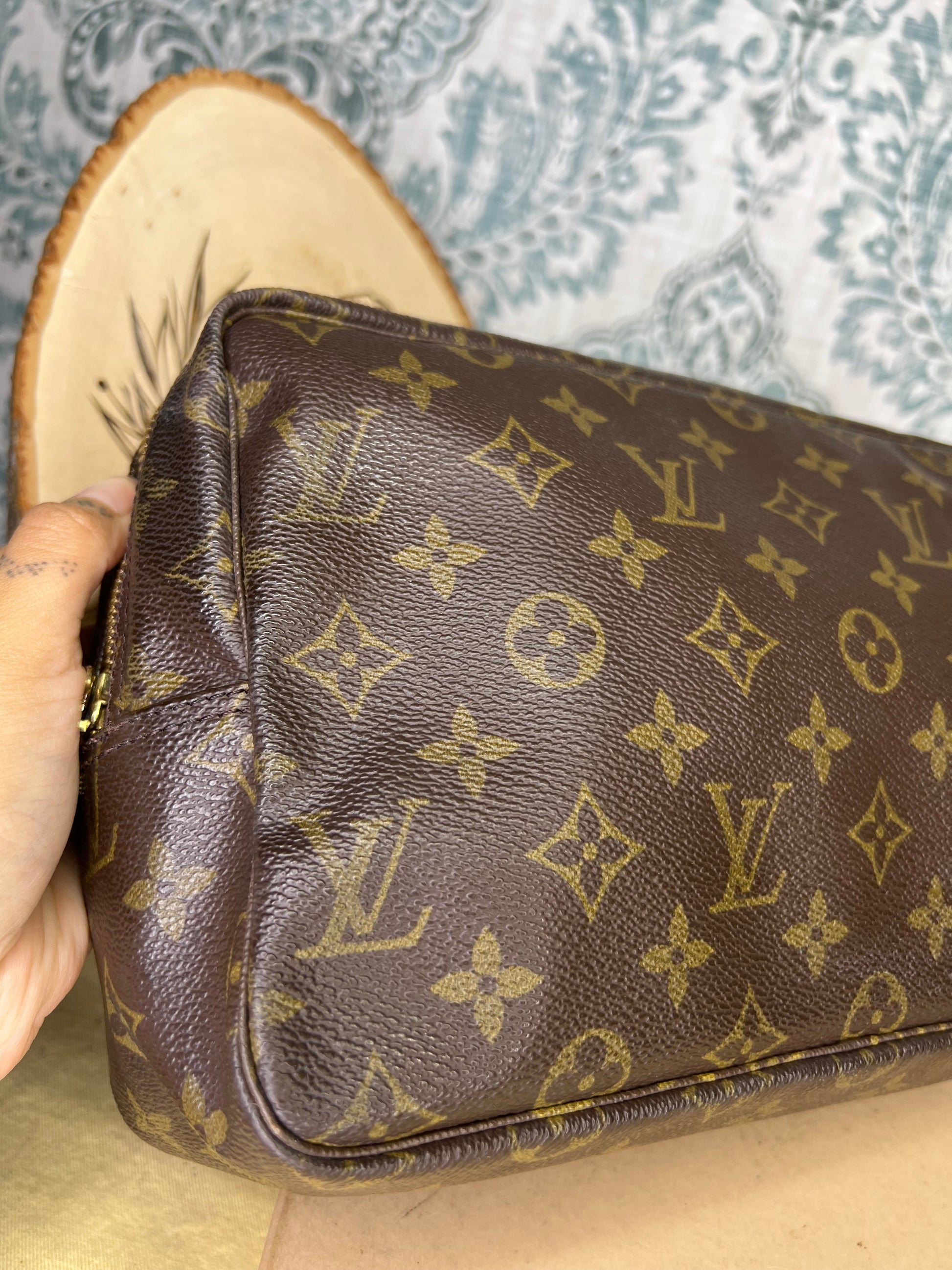 šø Canvas has very minor cracking at top corner of the pouch, shown in photo with green circle. Monogram does have some fading, but is overall clear
