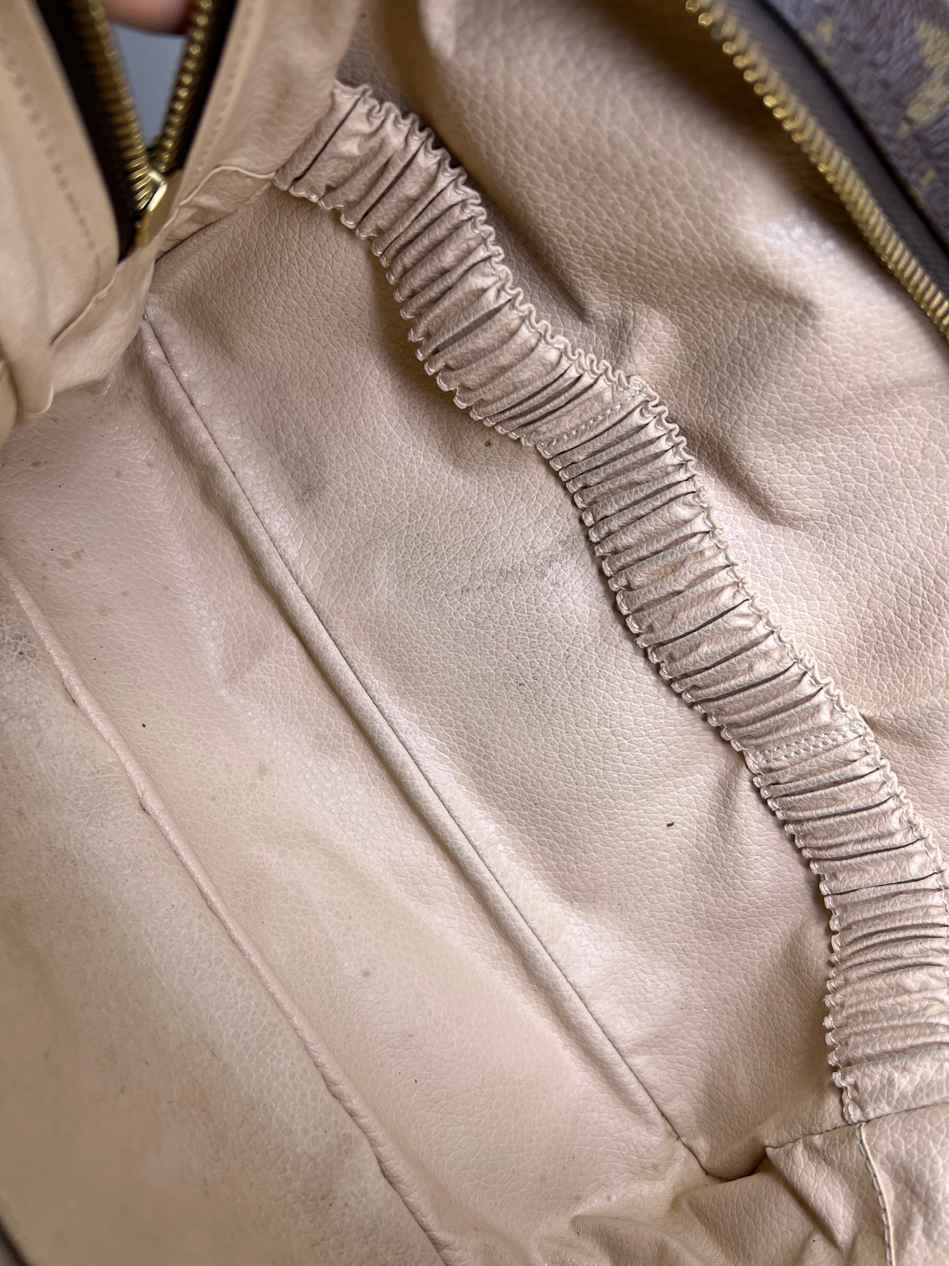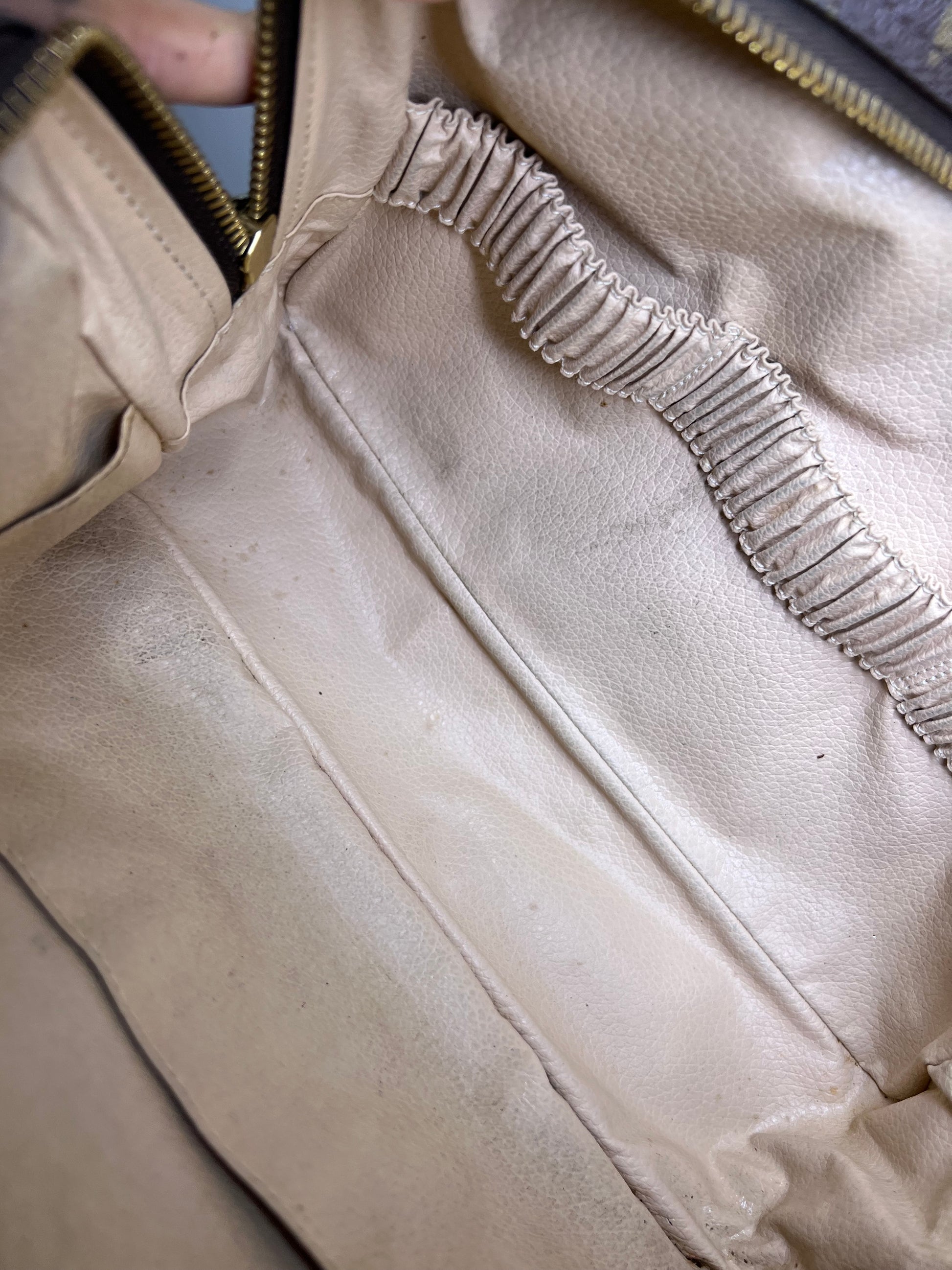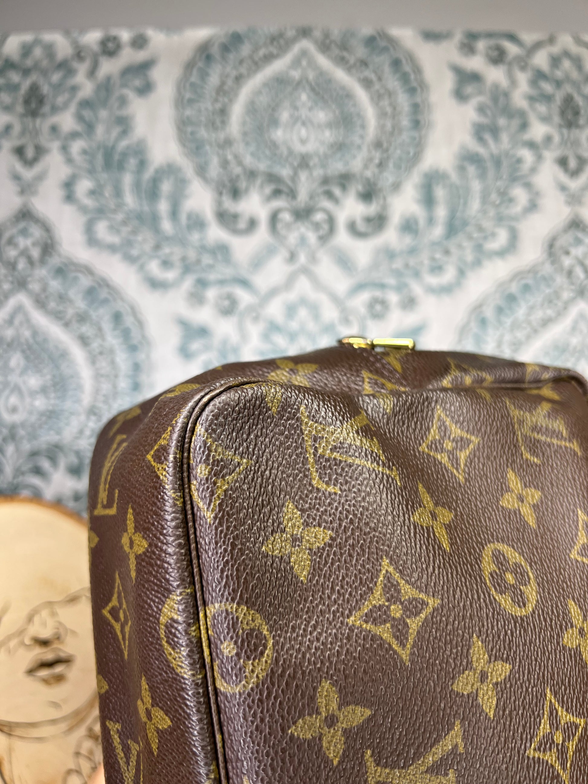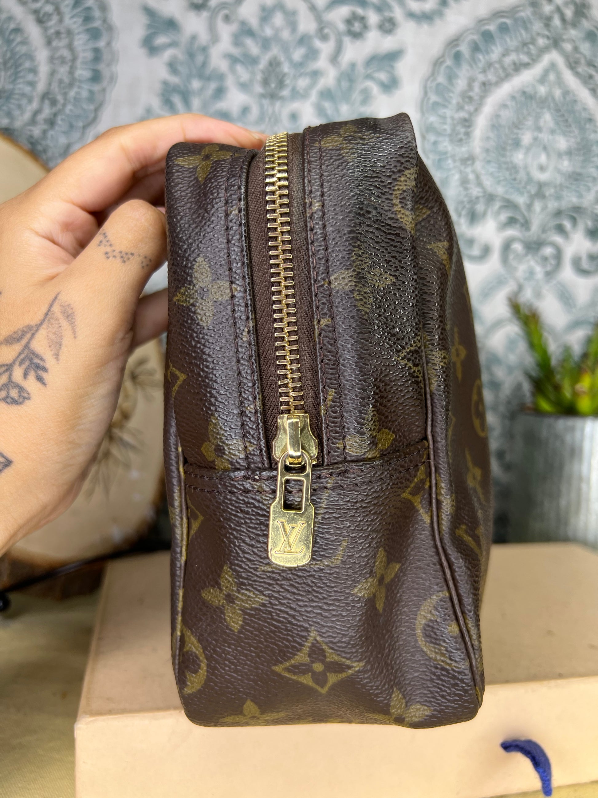 šø Canvas has very minor cracking at top corner of the pouch, shown in photo with green circle. Monogram does have some fading, but is overall clear