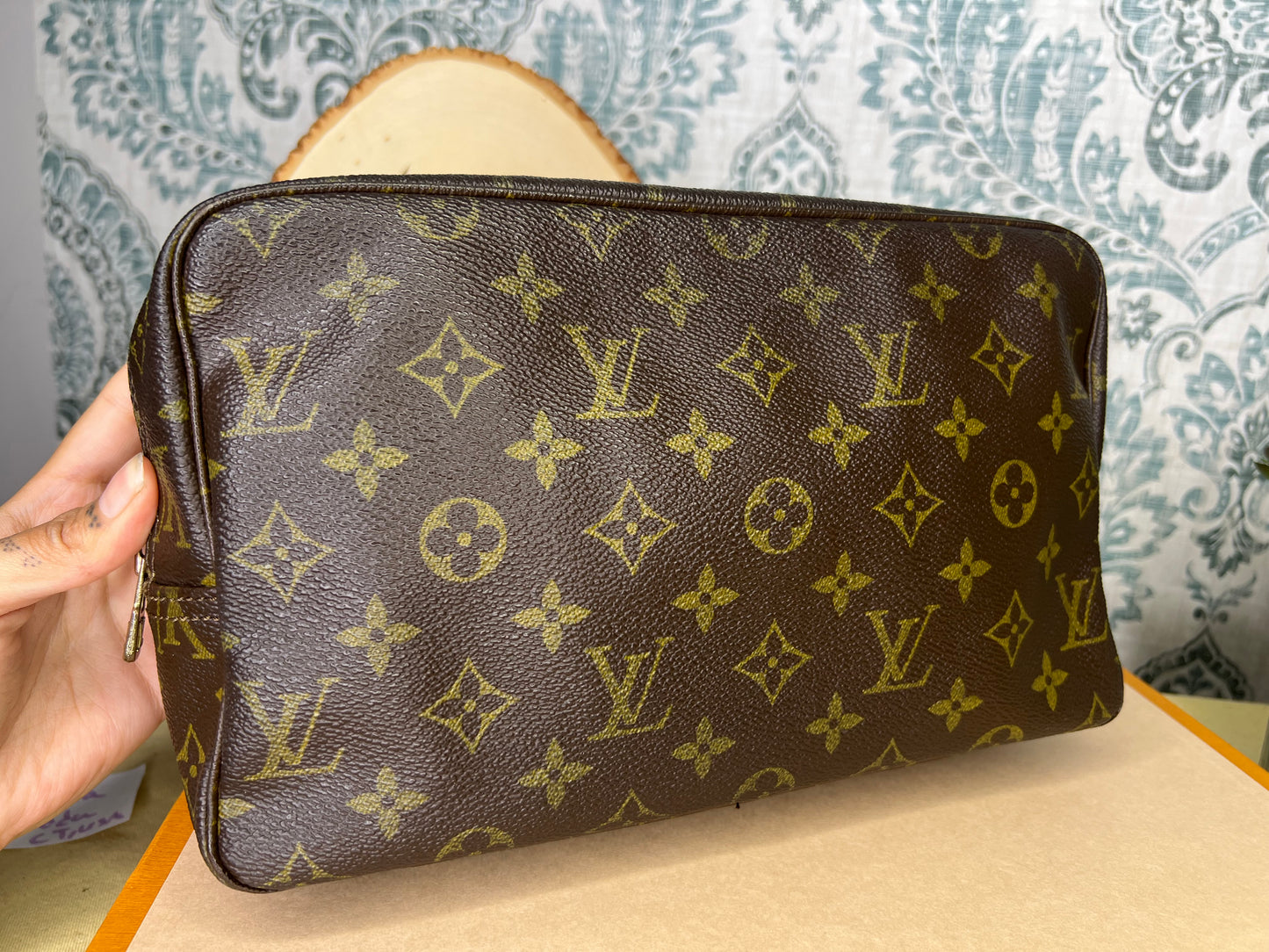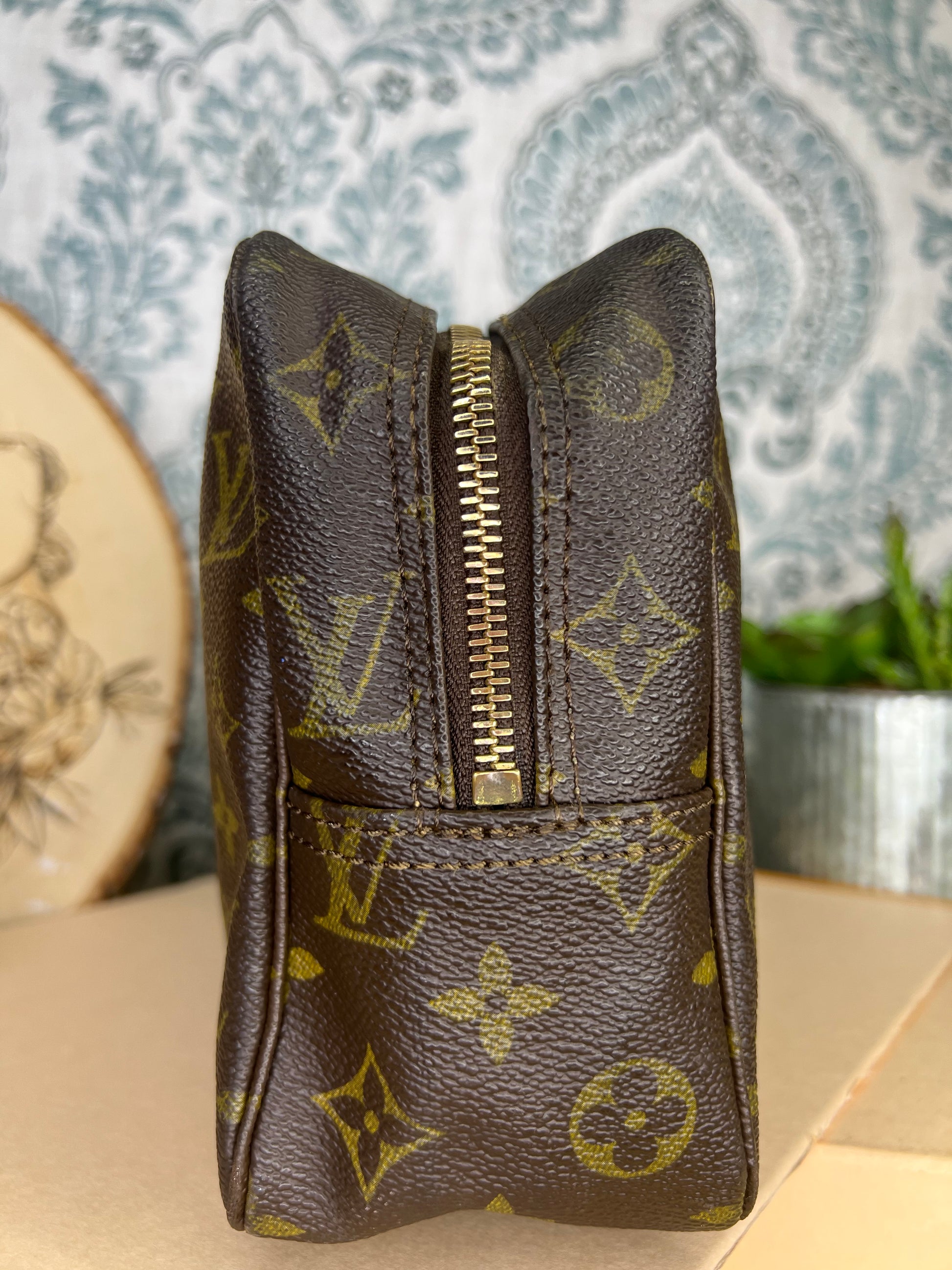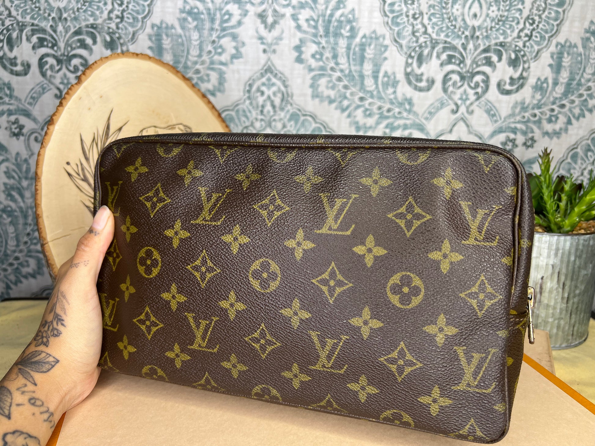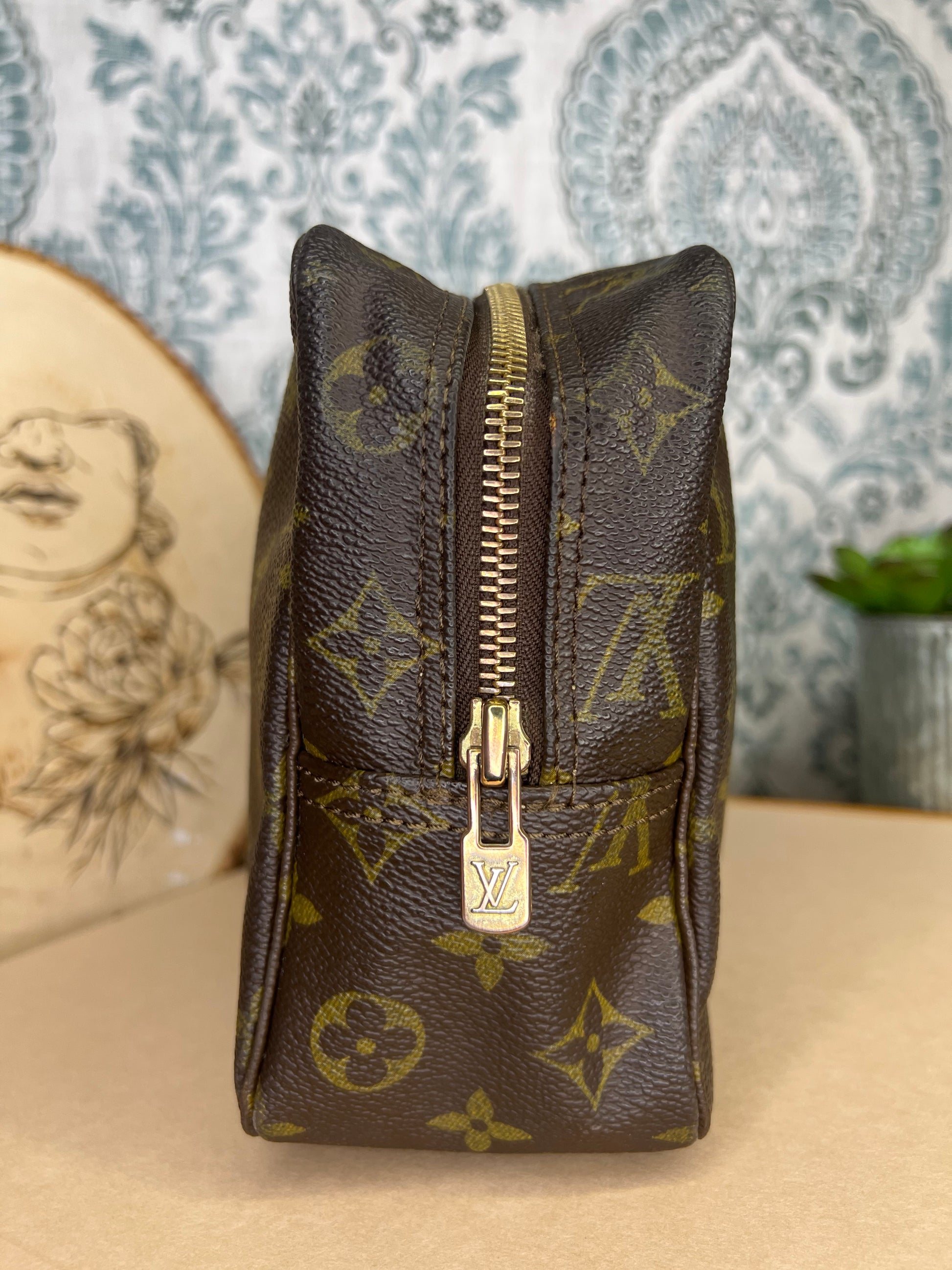 ๐ธ Canvas is intact and has no major damage. There is just minor canvas rubbing at corners of the pouch. Monogram has fading, but overall clear